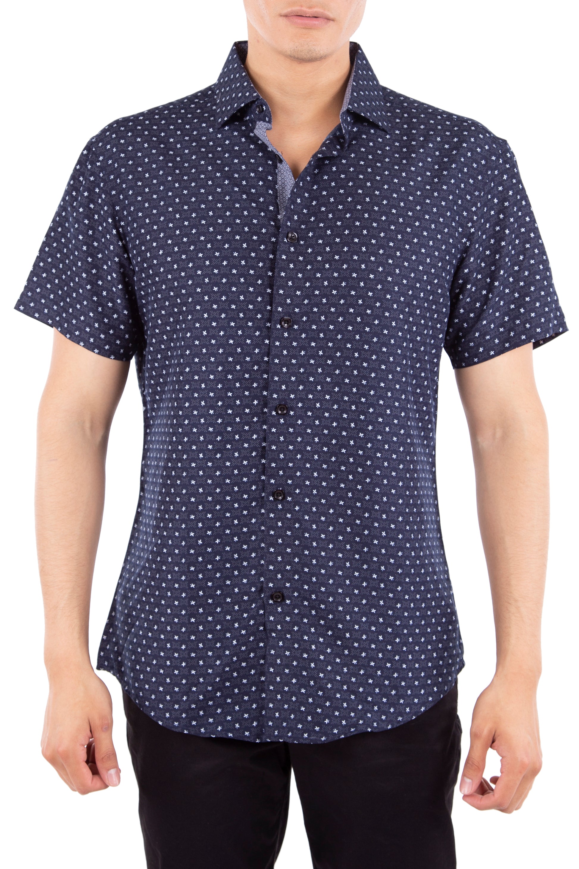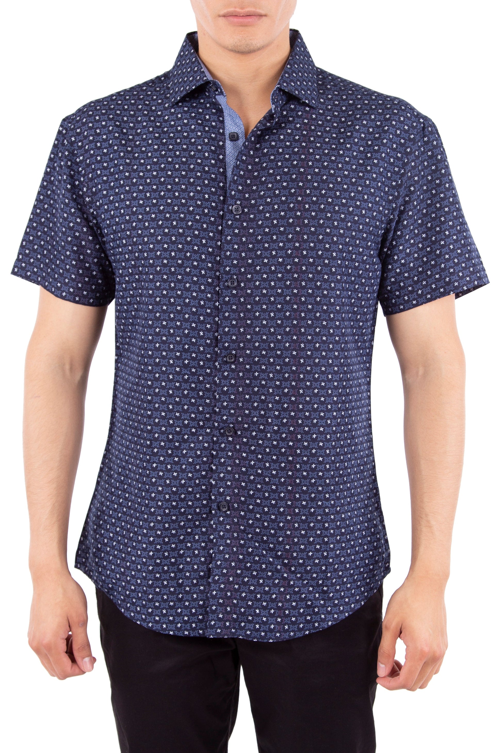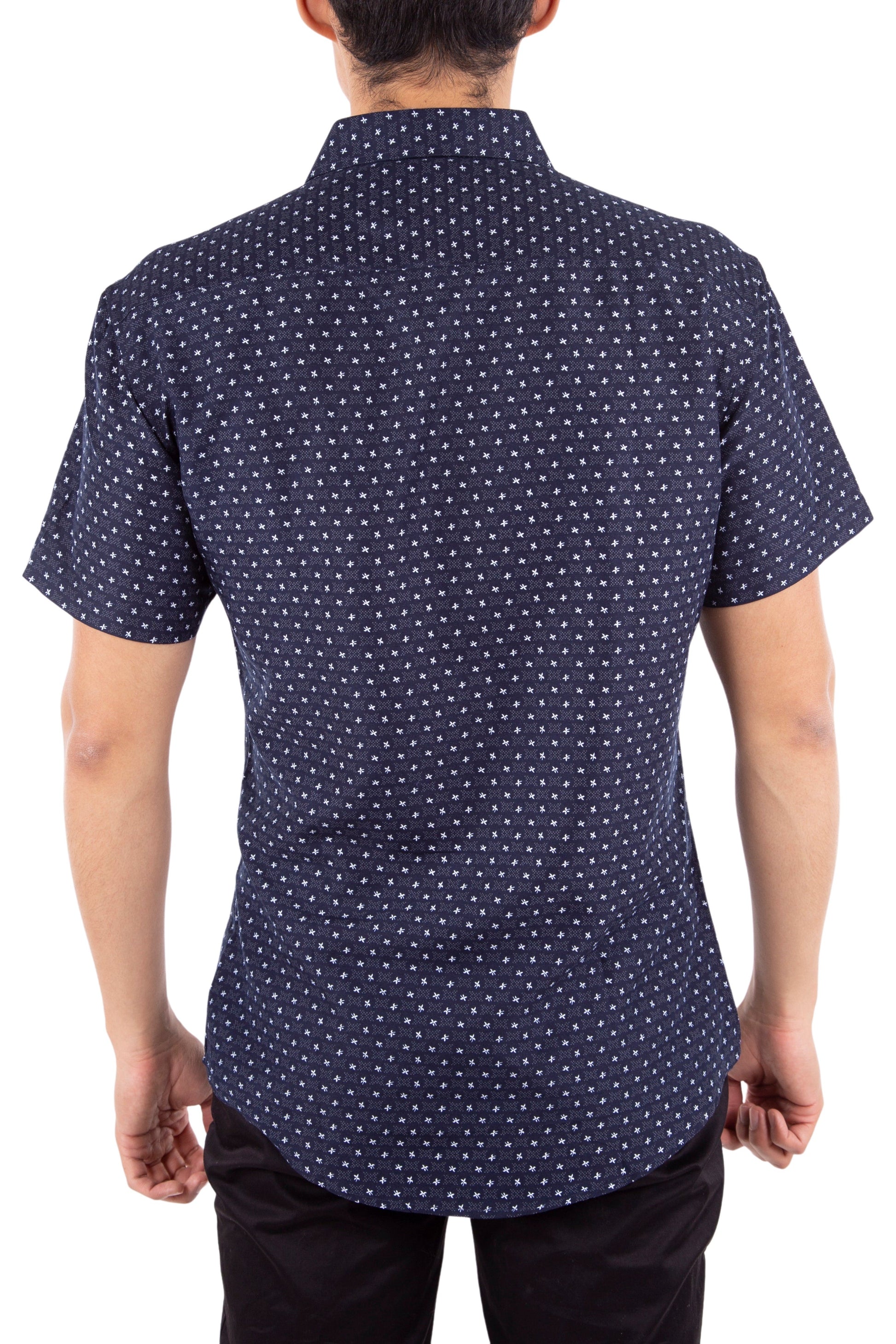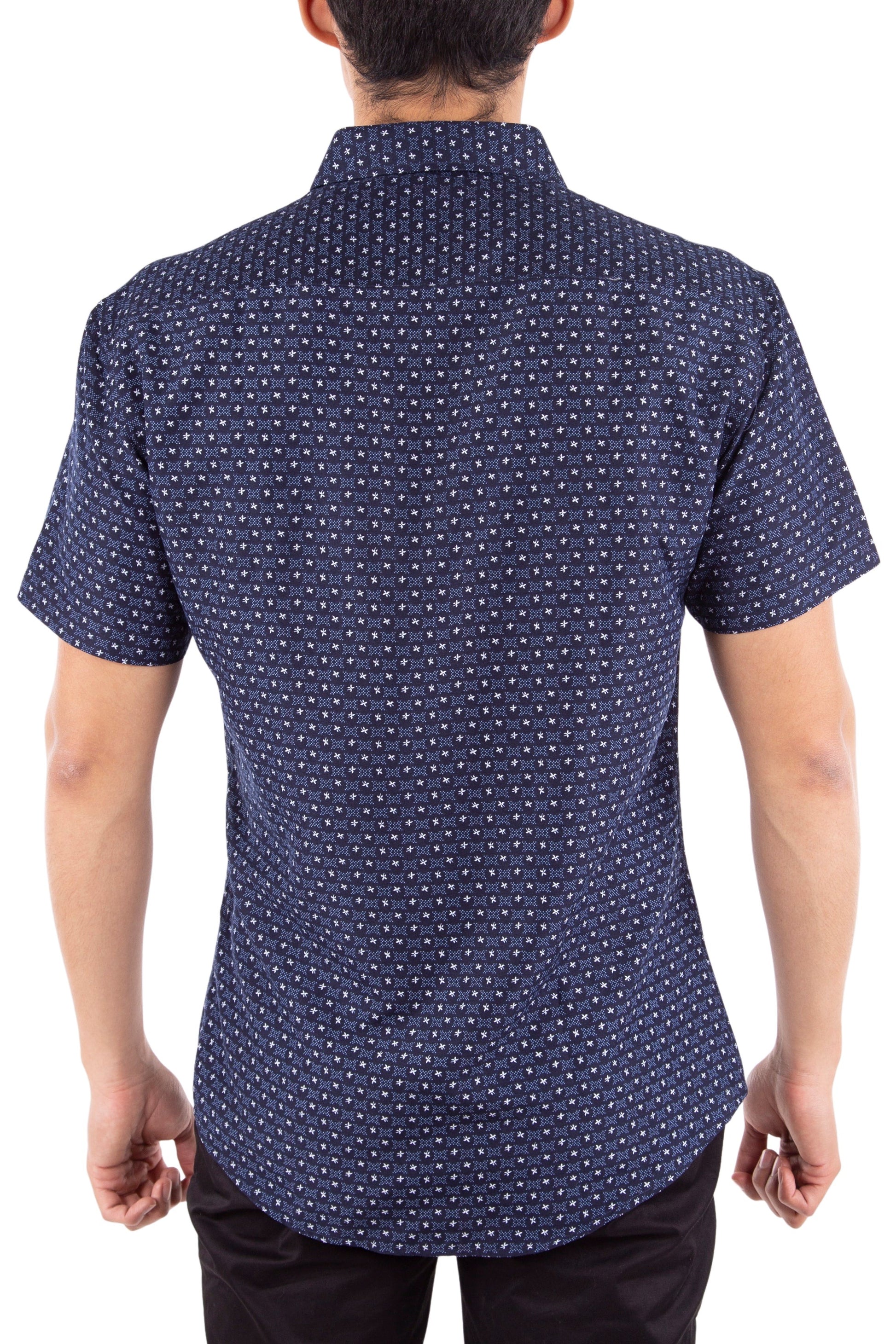 - Plumeria Flower Microprint Short Sleeve Dress Shirt