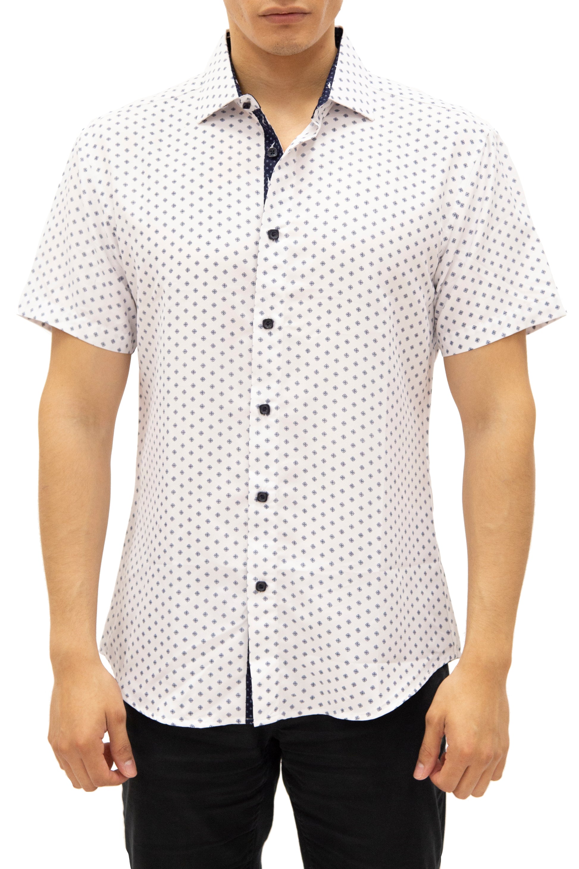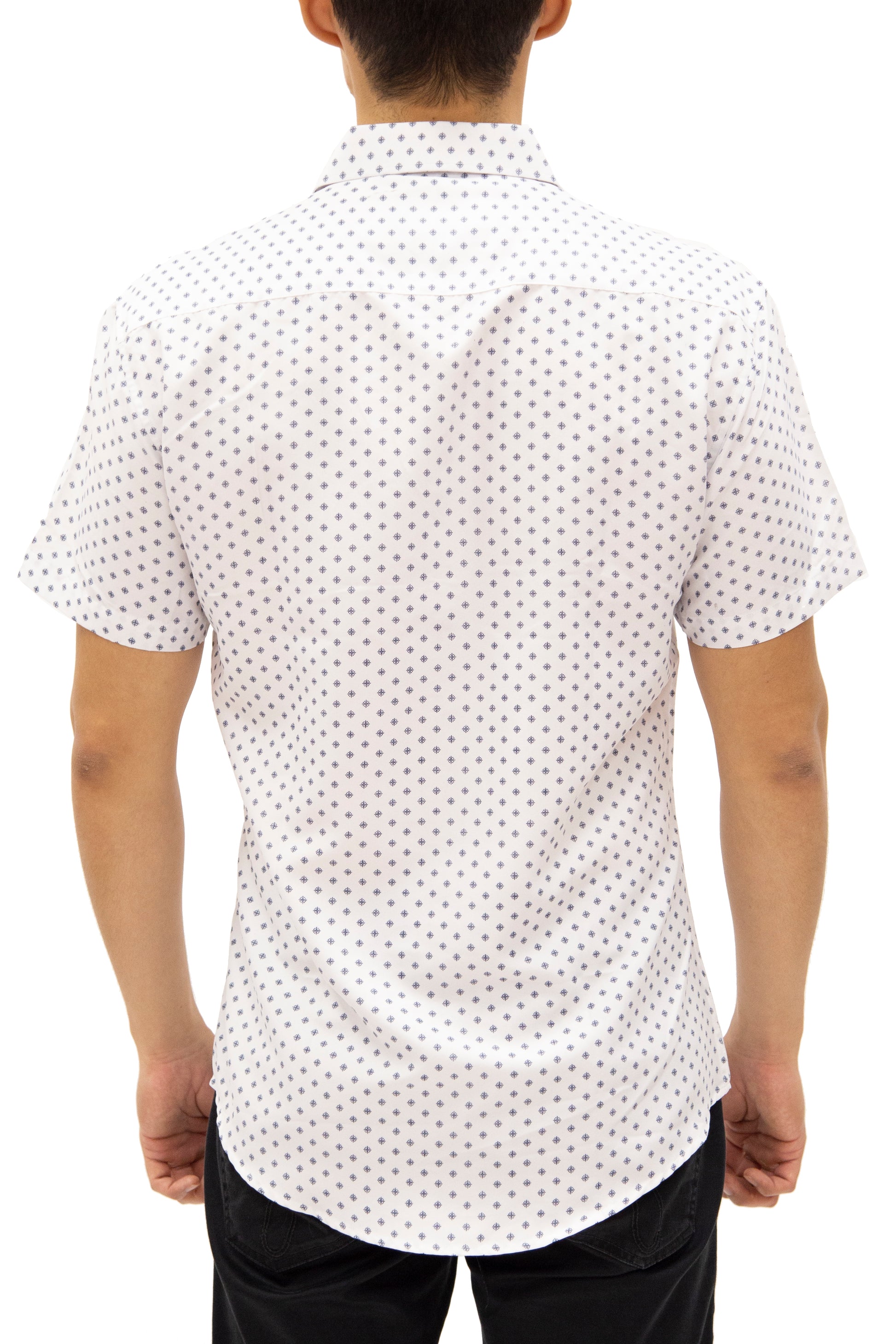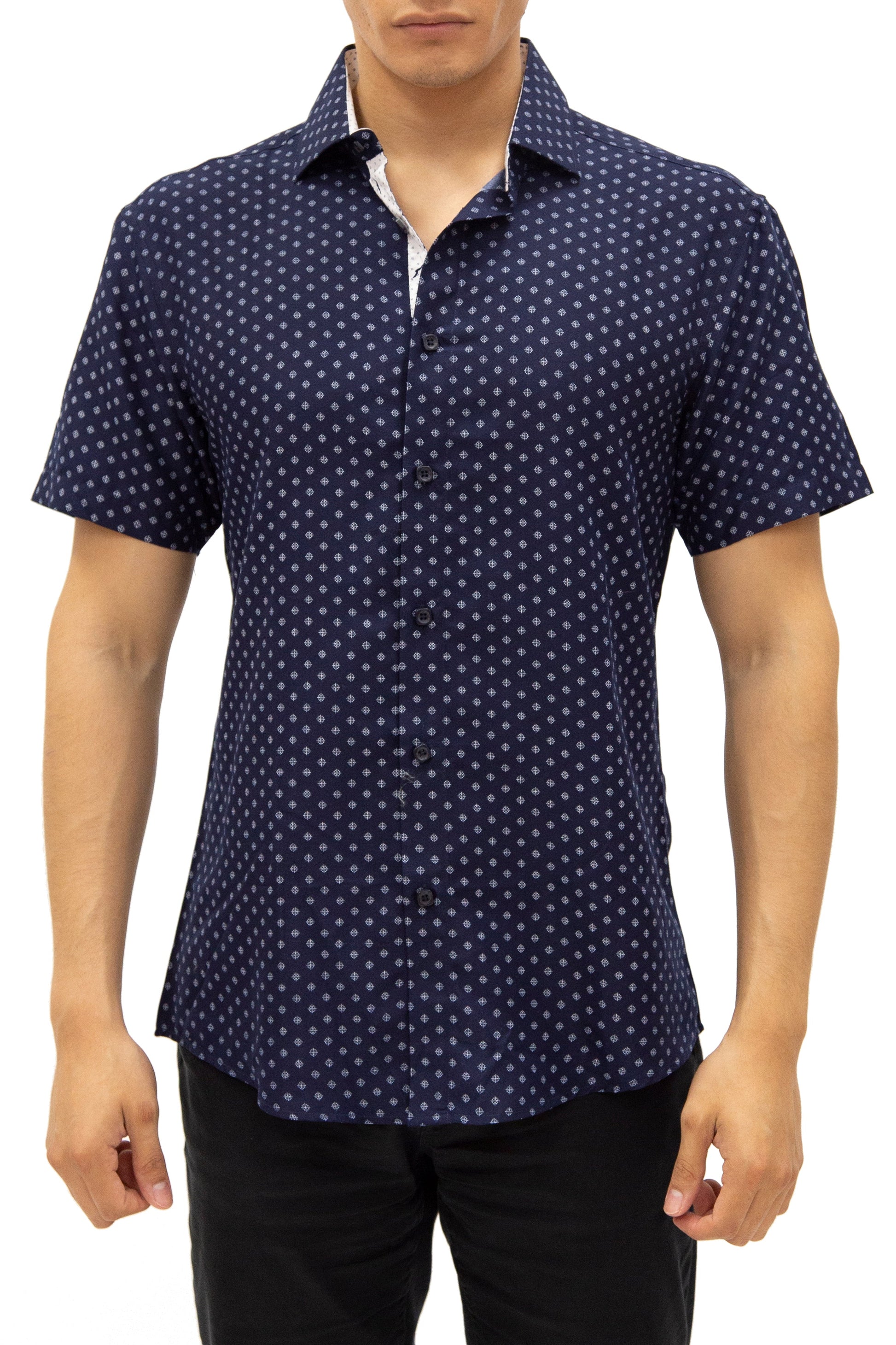 - Compass Motif Geometric Print Short Sleeve Dress Shirt