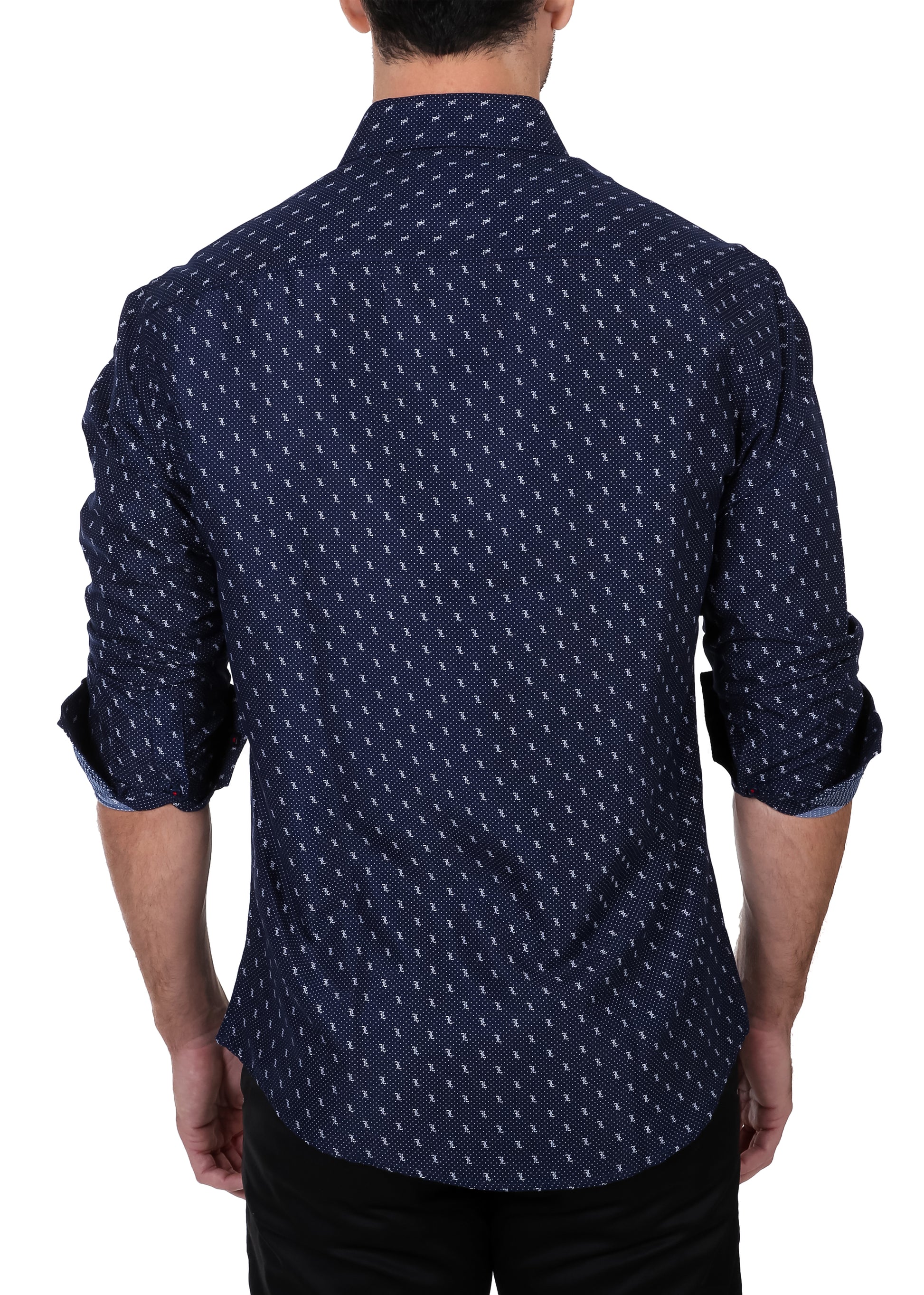 - Blackletter Style Calligraphy Print Long Sleeve Dress Shirt