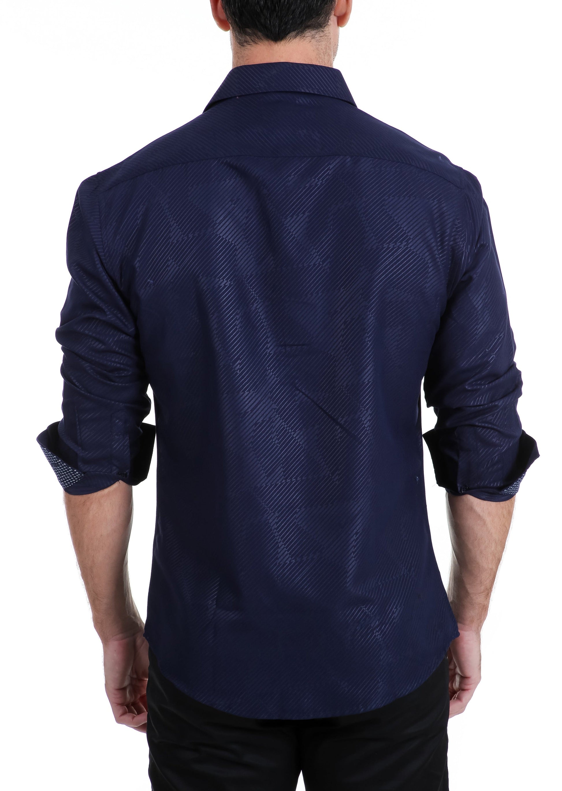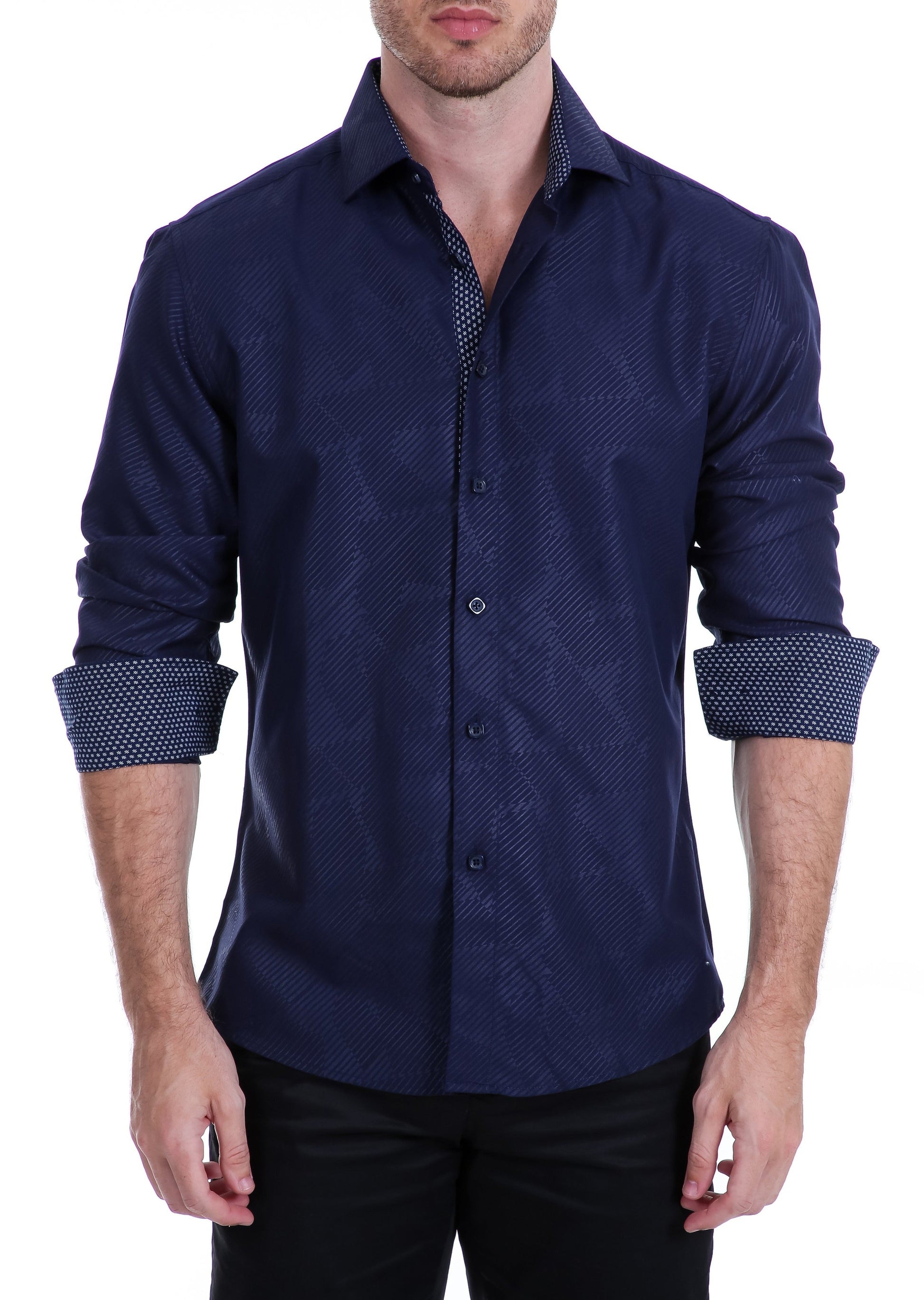 - Solid Color Geometric Texture Button Up Dress Shirt