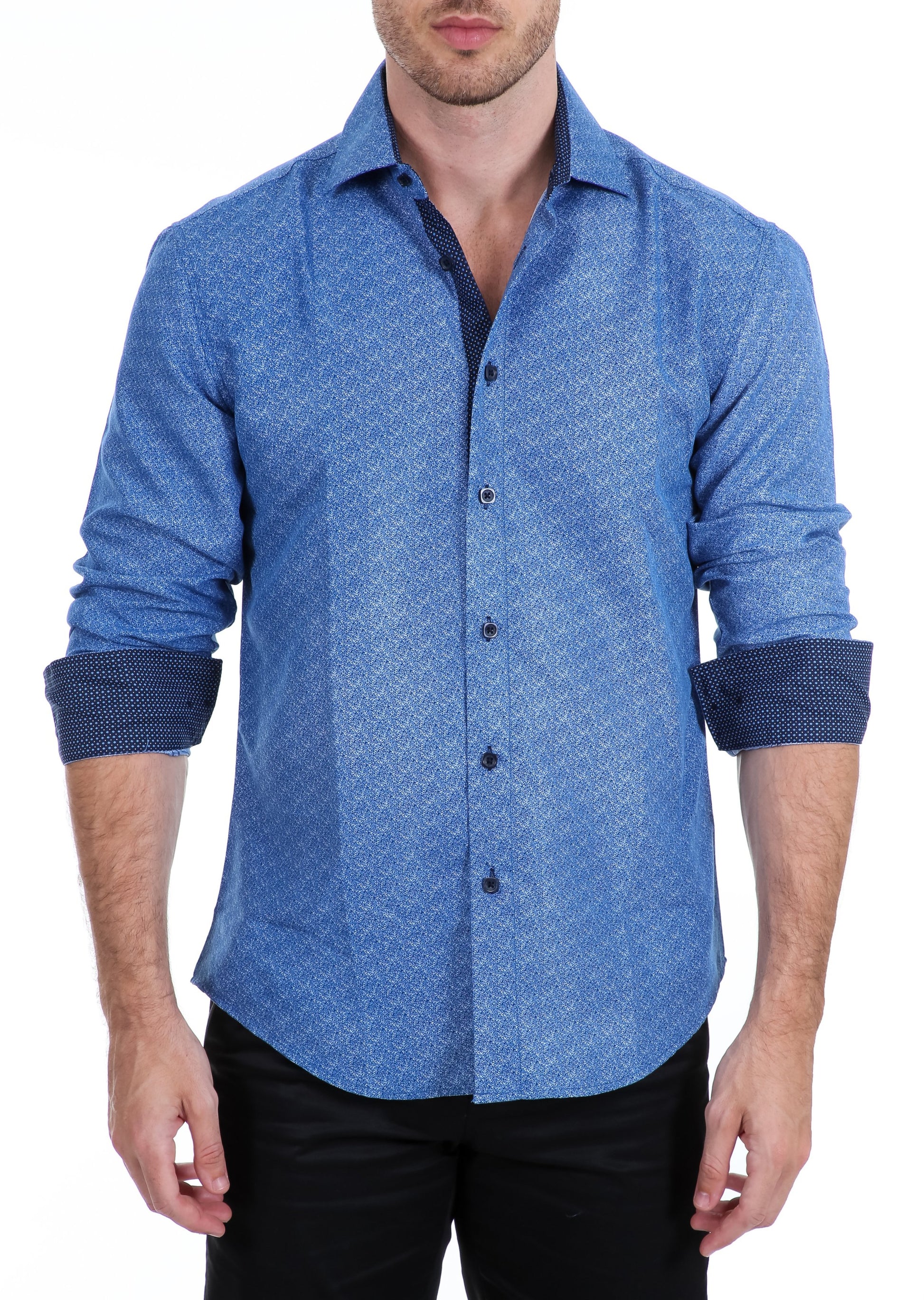 - Abstract Lines Patterned Long Sleeve Dress Shirt