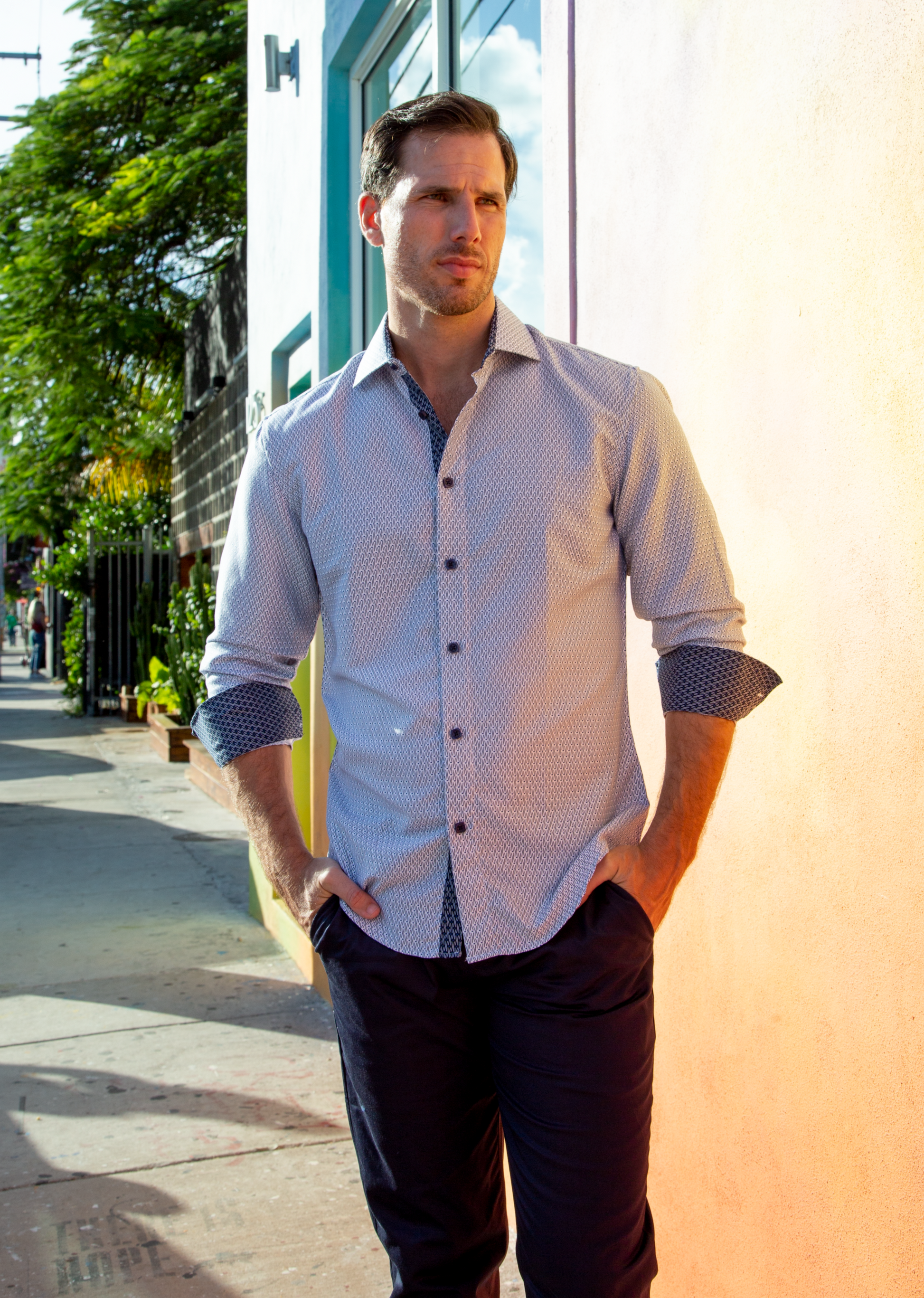 - Contrast Trim on Inner Cuff, Collar & Placket