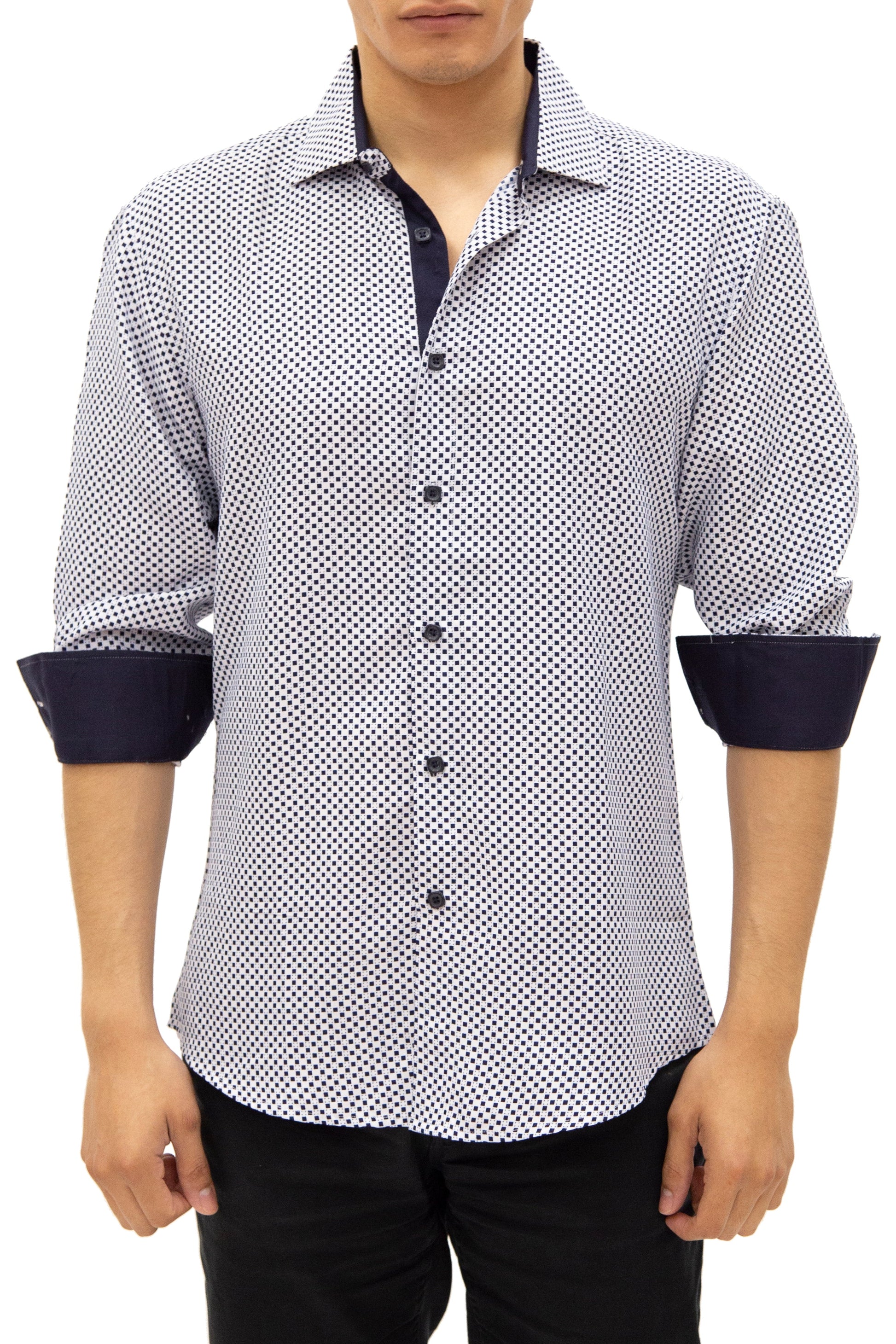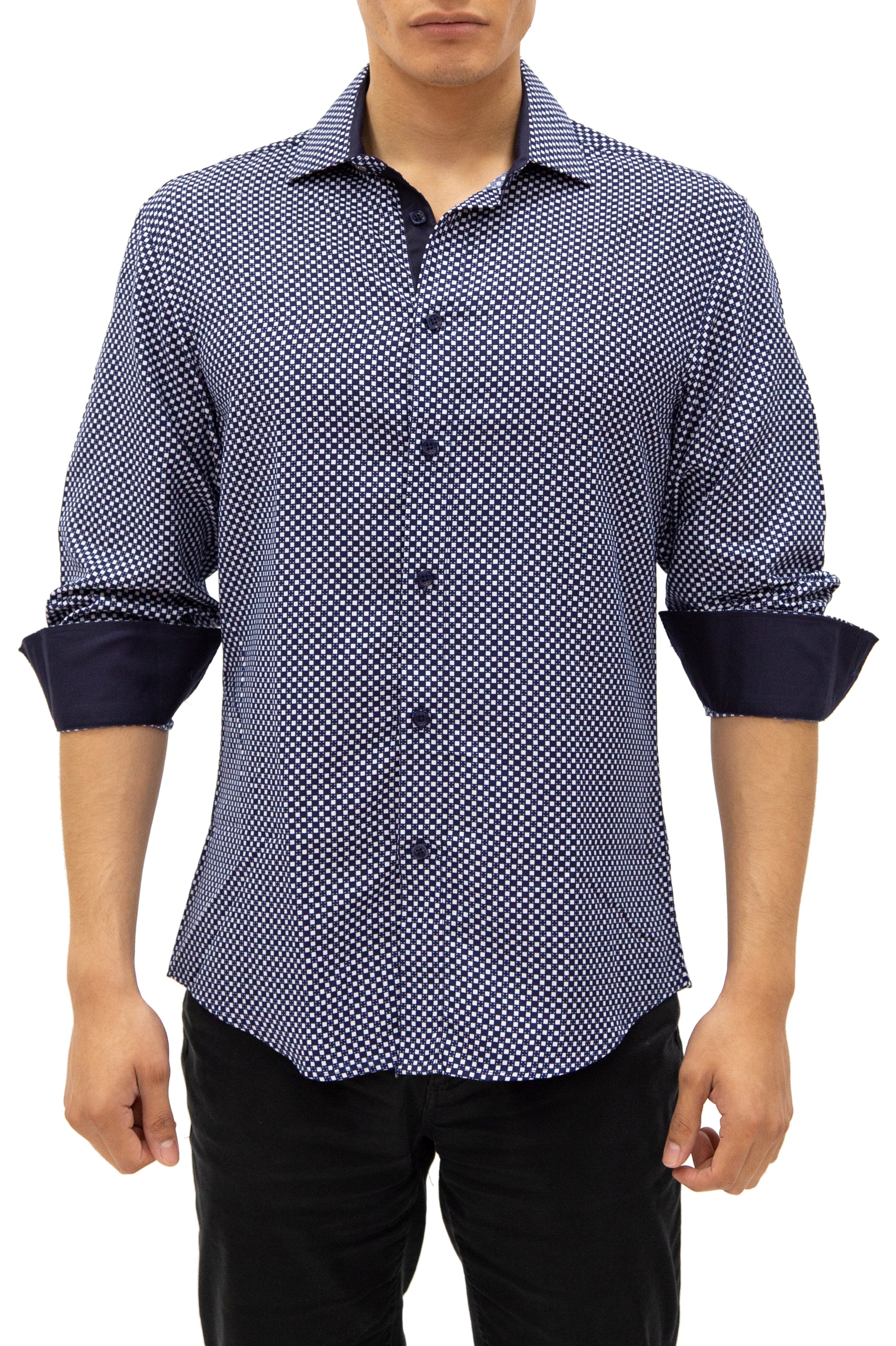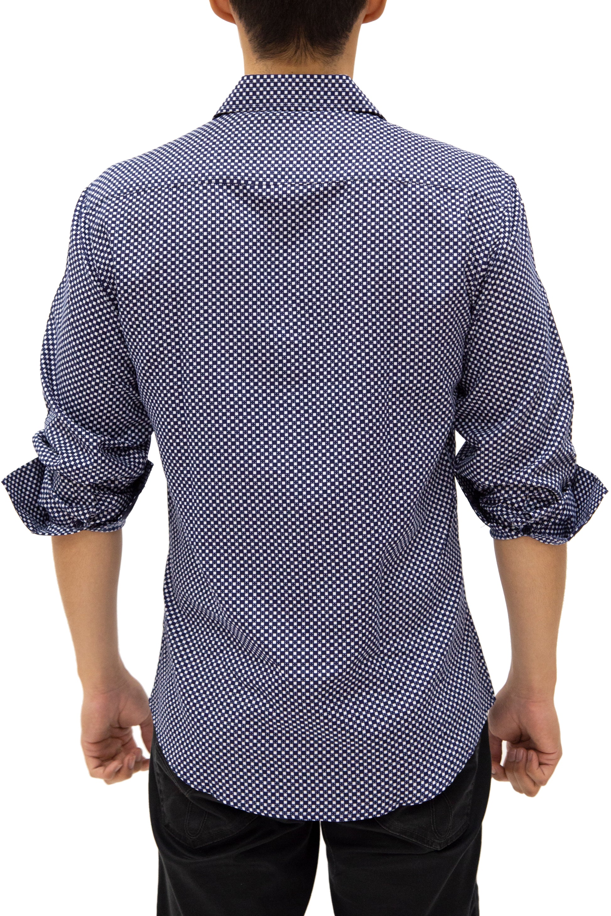 - Checkered Contrast Geometric Print Plaid Dress Shirt