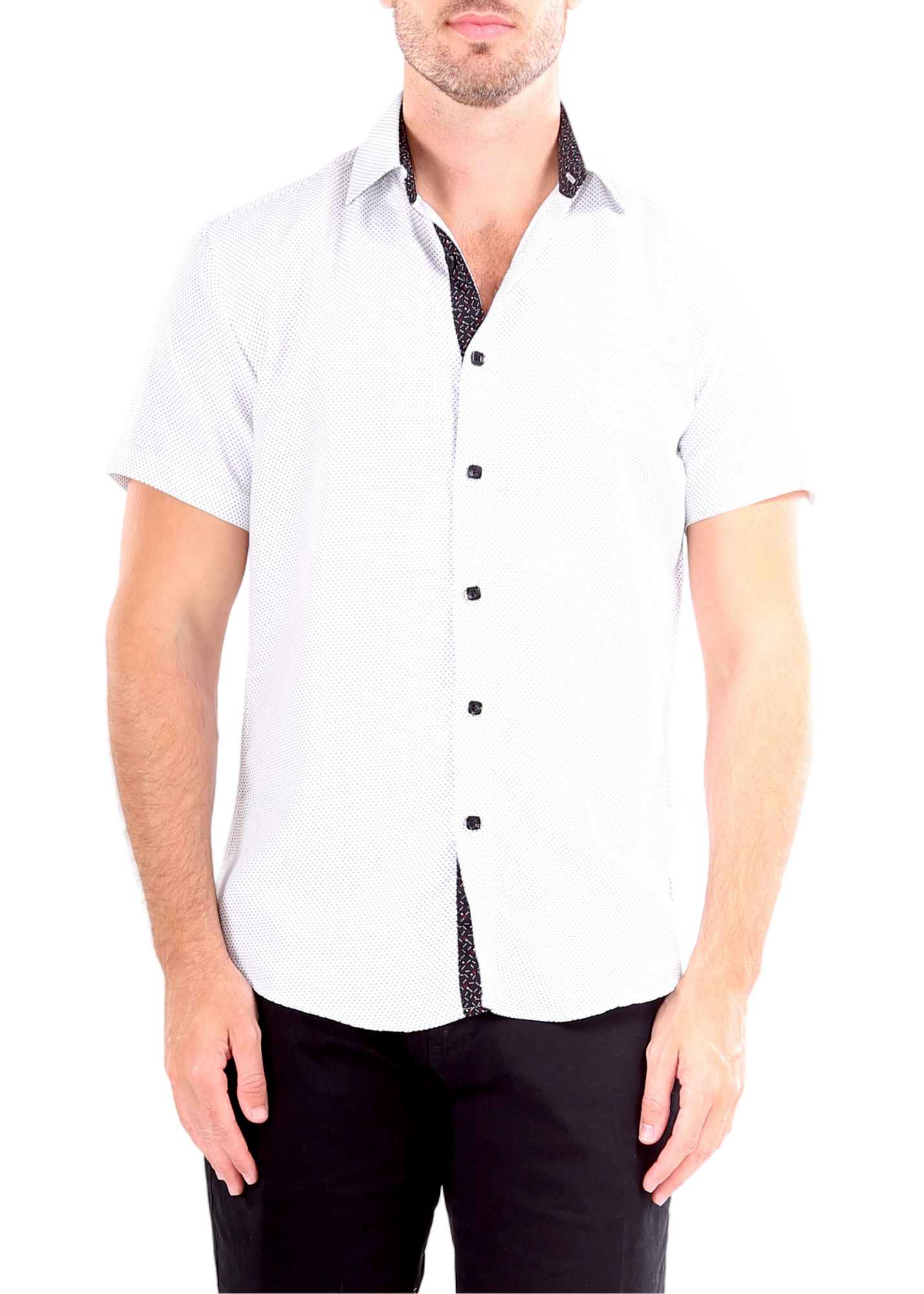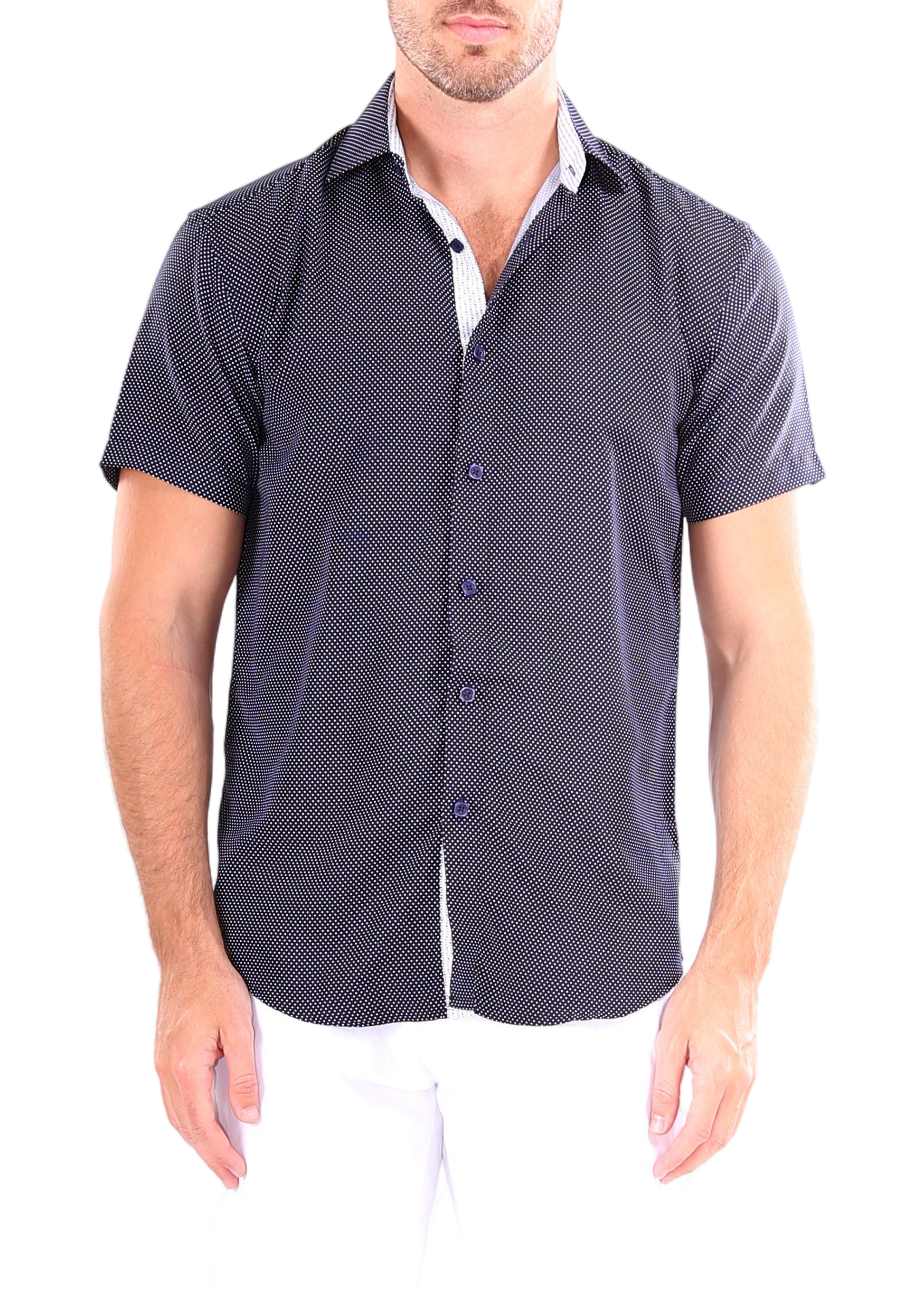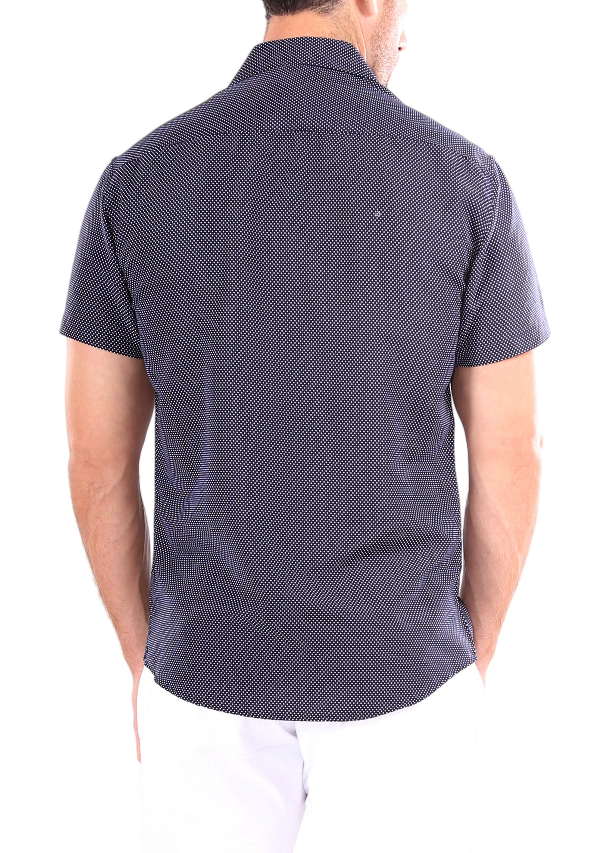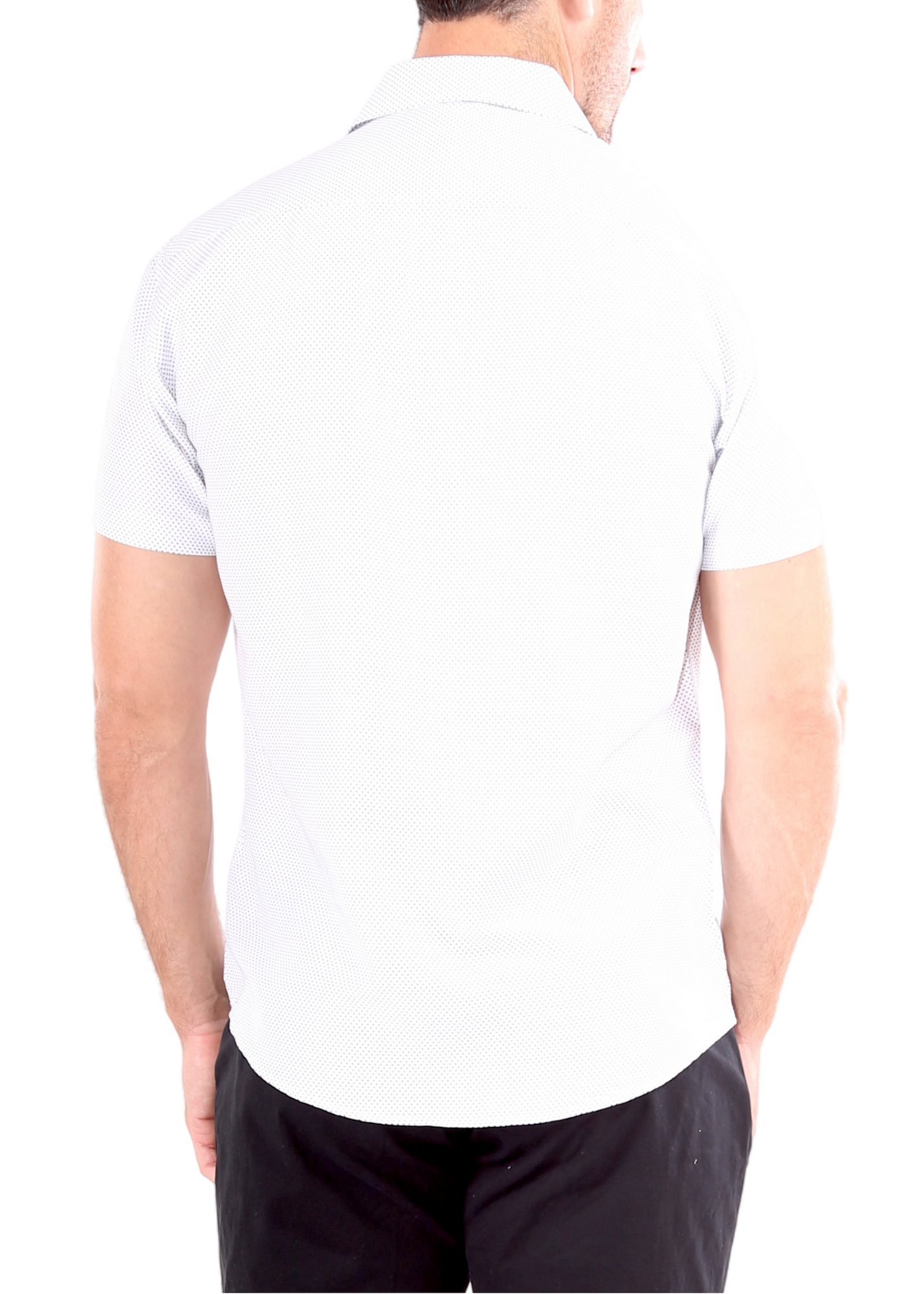 - Microprint Polka Dot Short Sleeve Dress Shirt