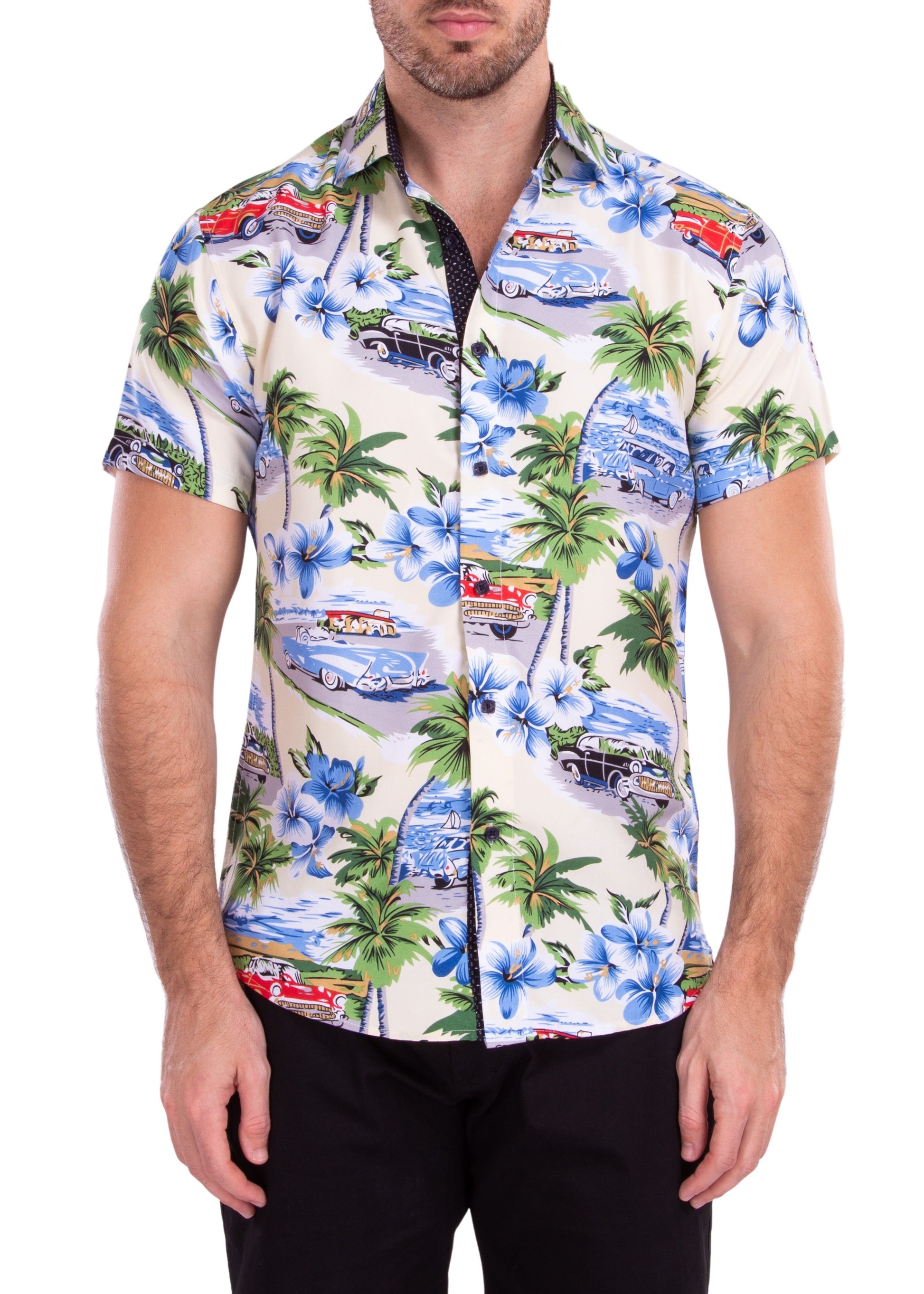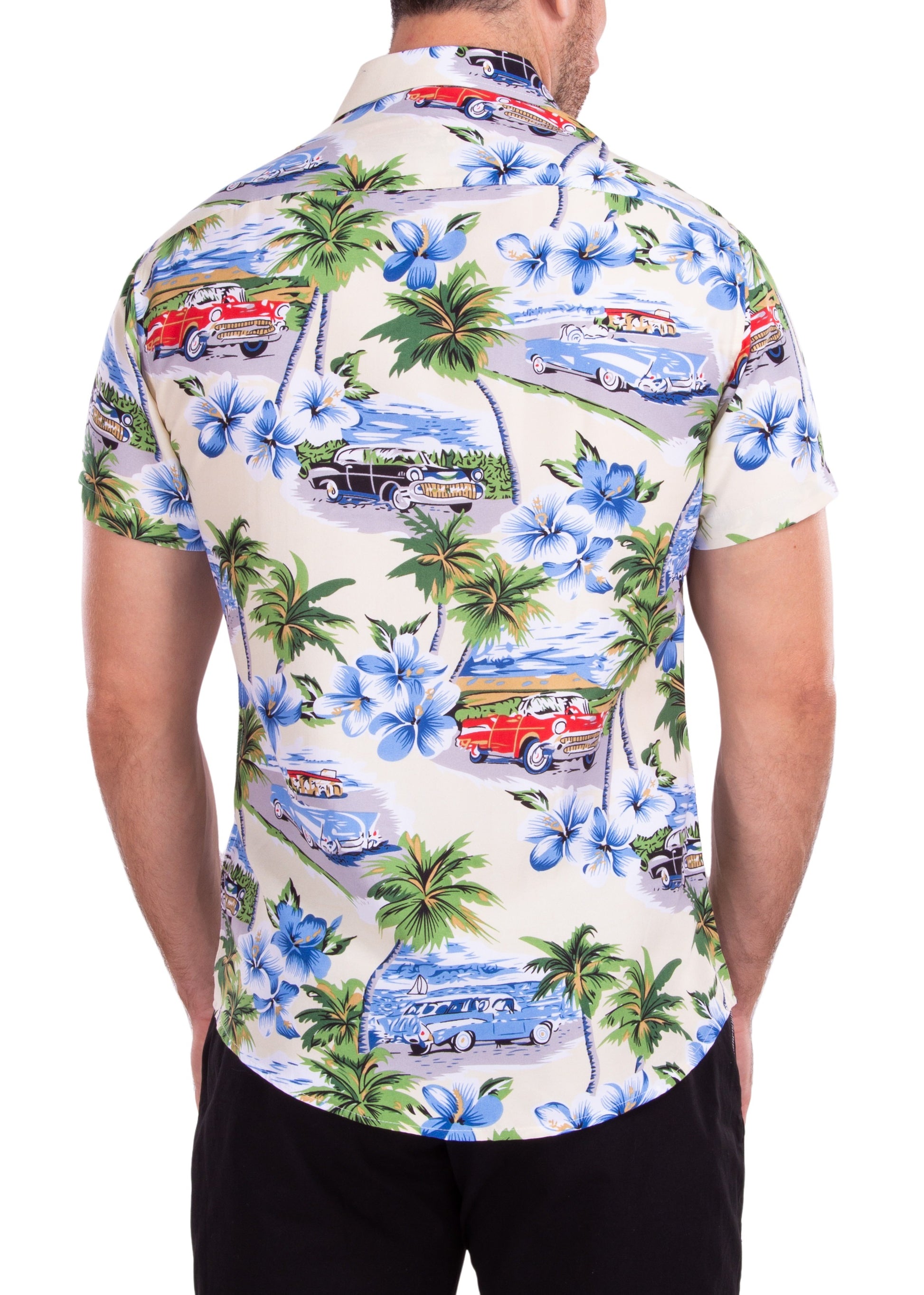 - Old Havana Print Hawaiian Short Sleeve Dress Shirt