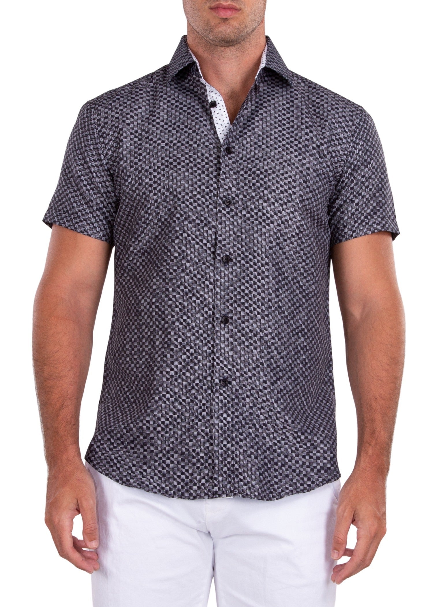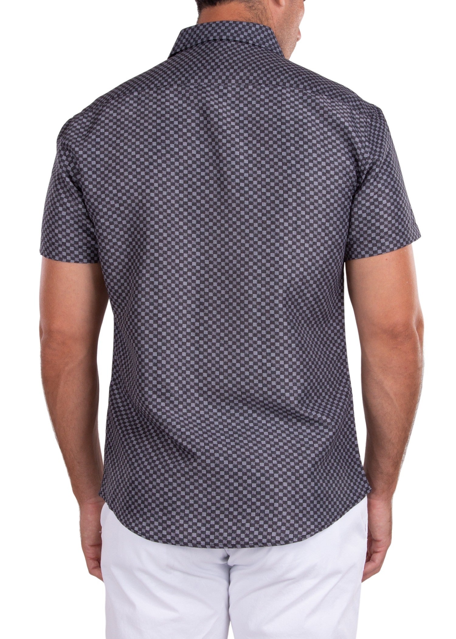 - Checkered Monochrome Microprint Men’s Short Sleeve Button-Up Dress Shirt