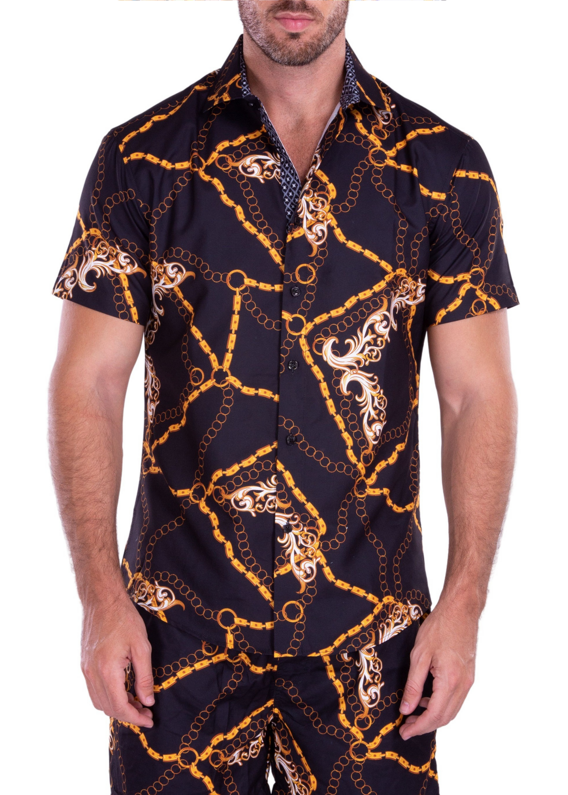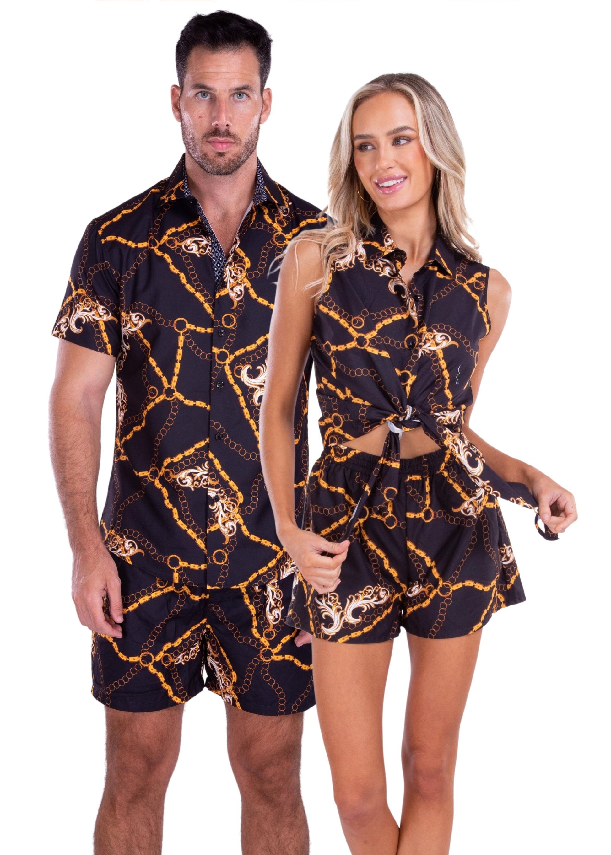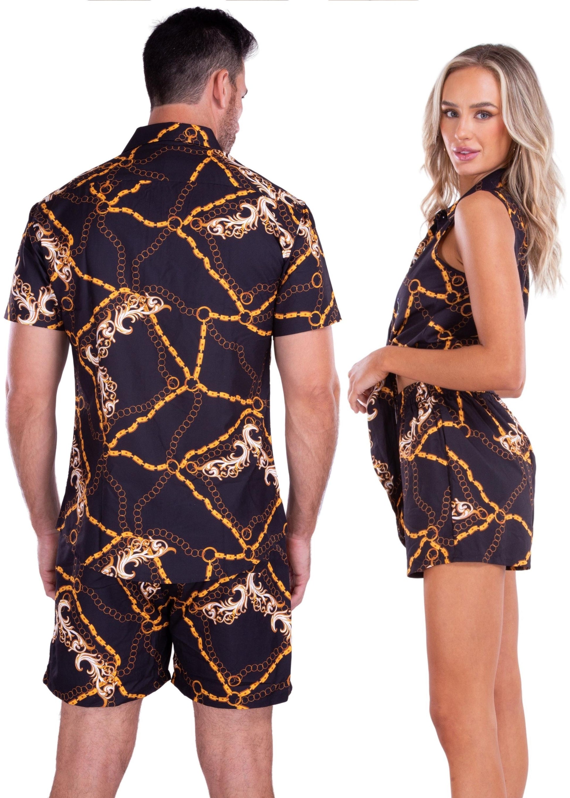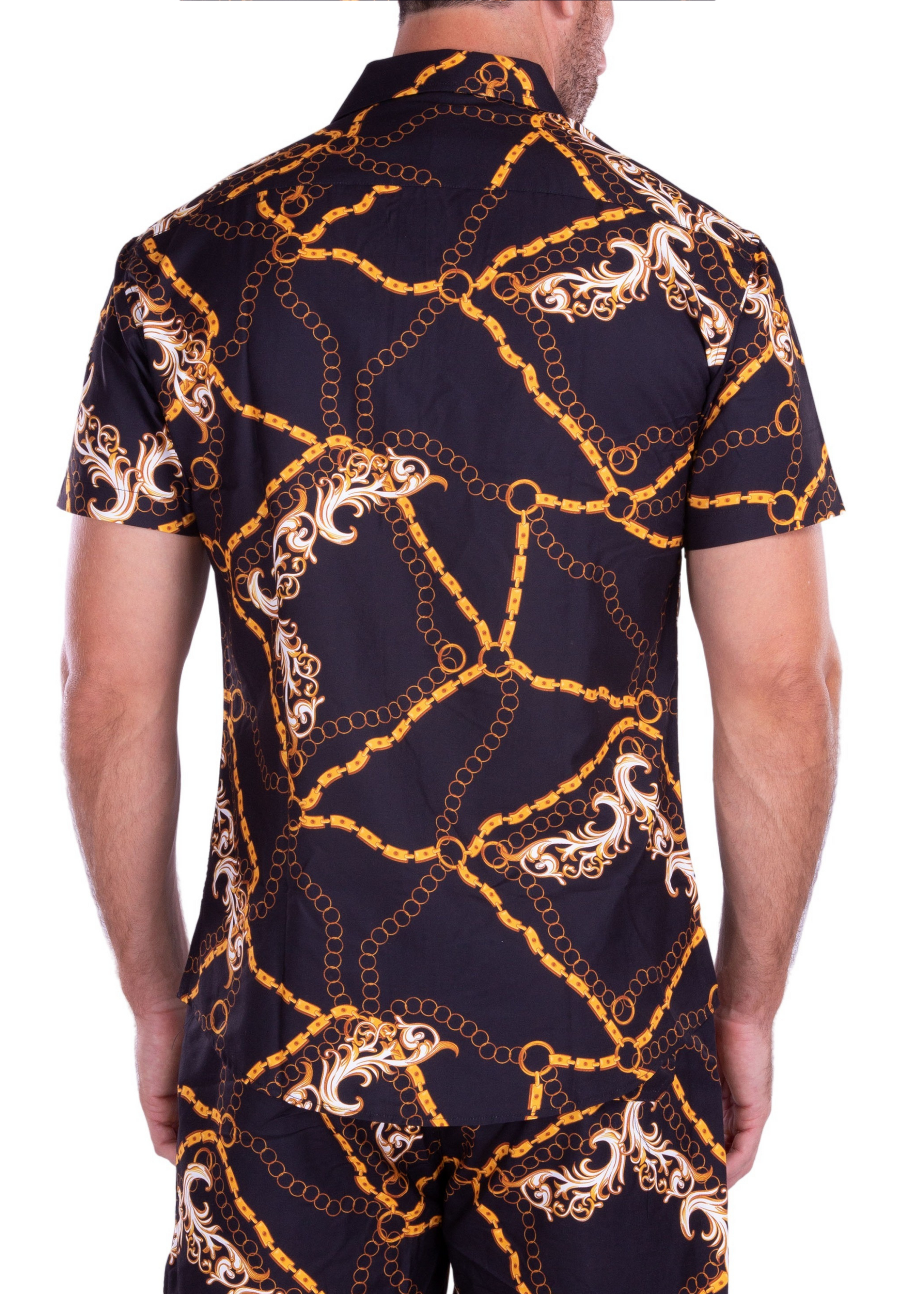 - Gold Chain Baroque Flourish Print Short Sleeve Set