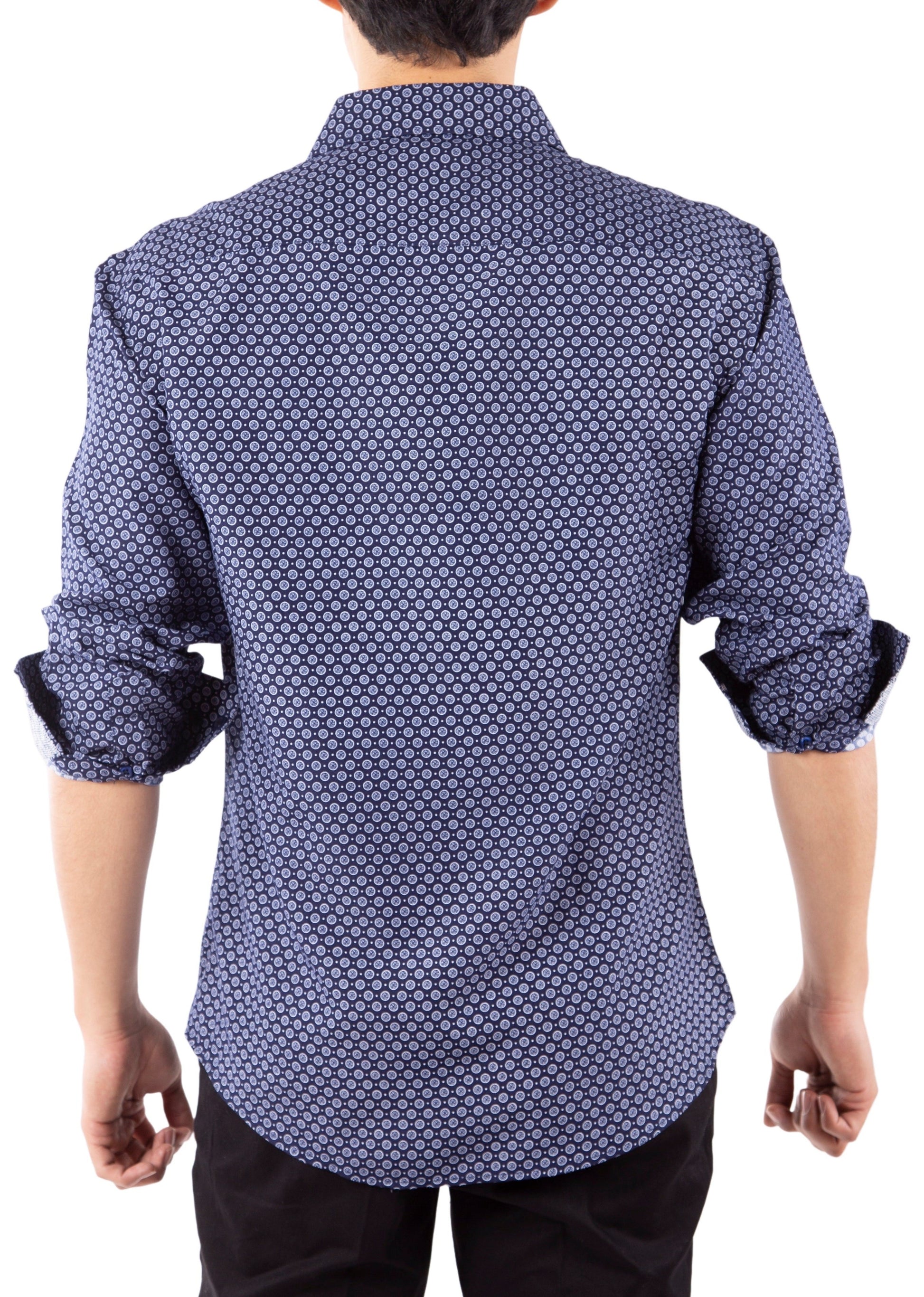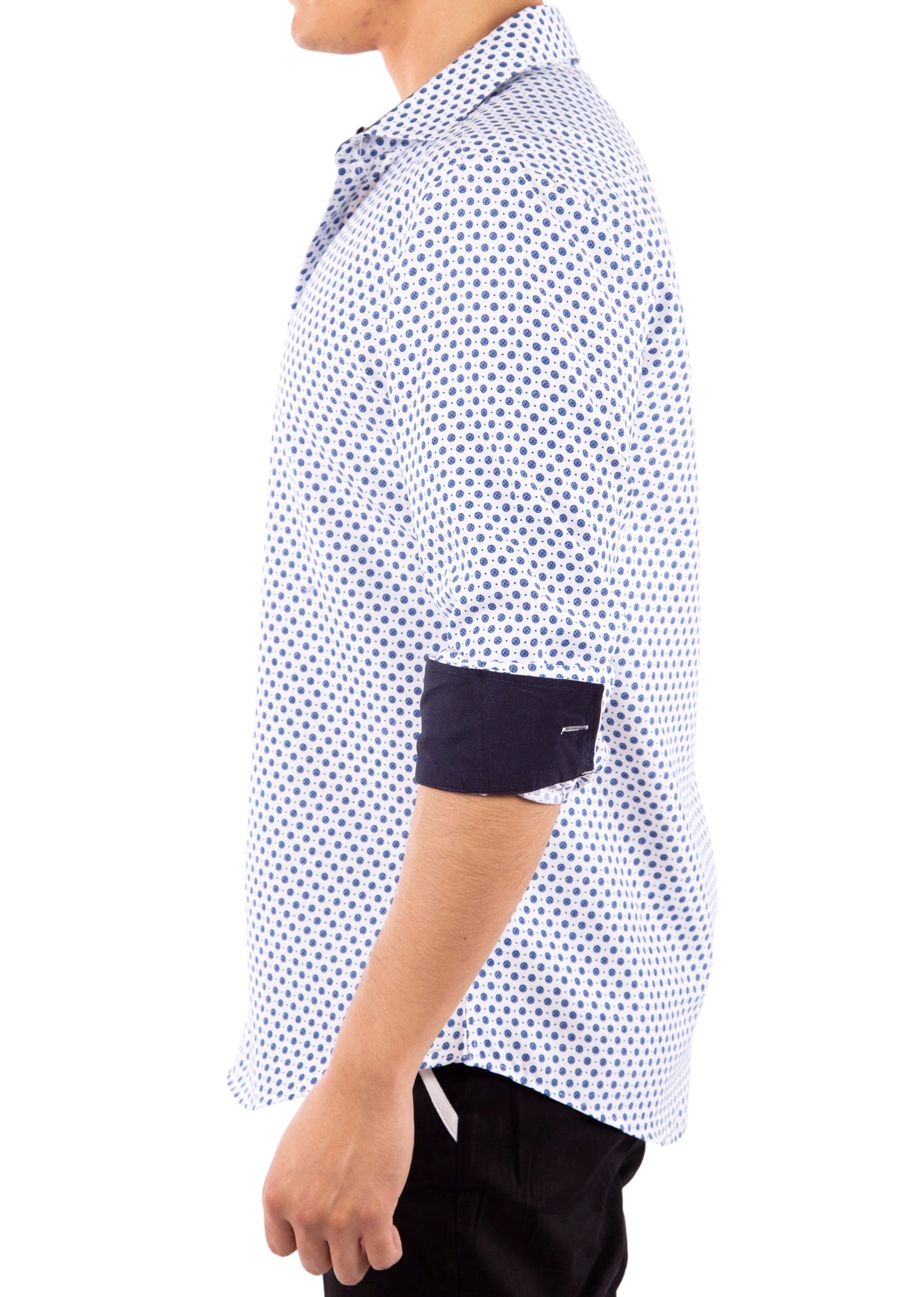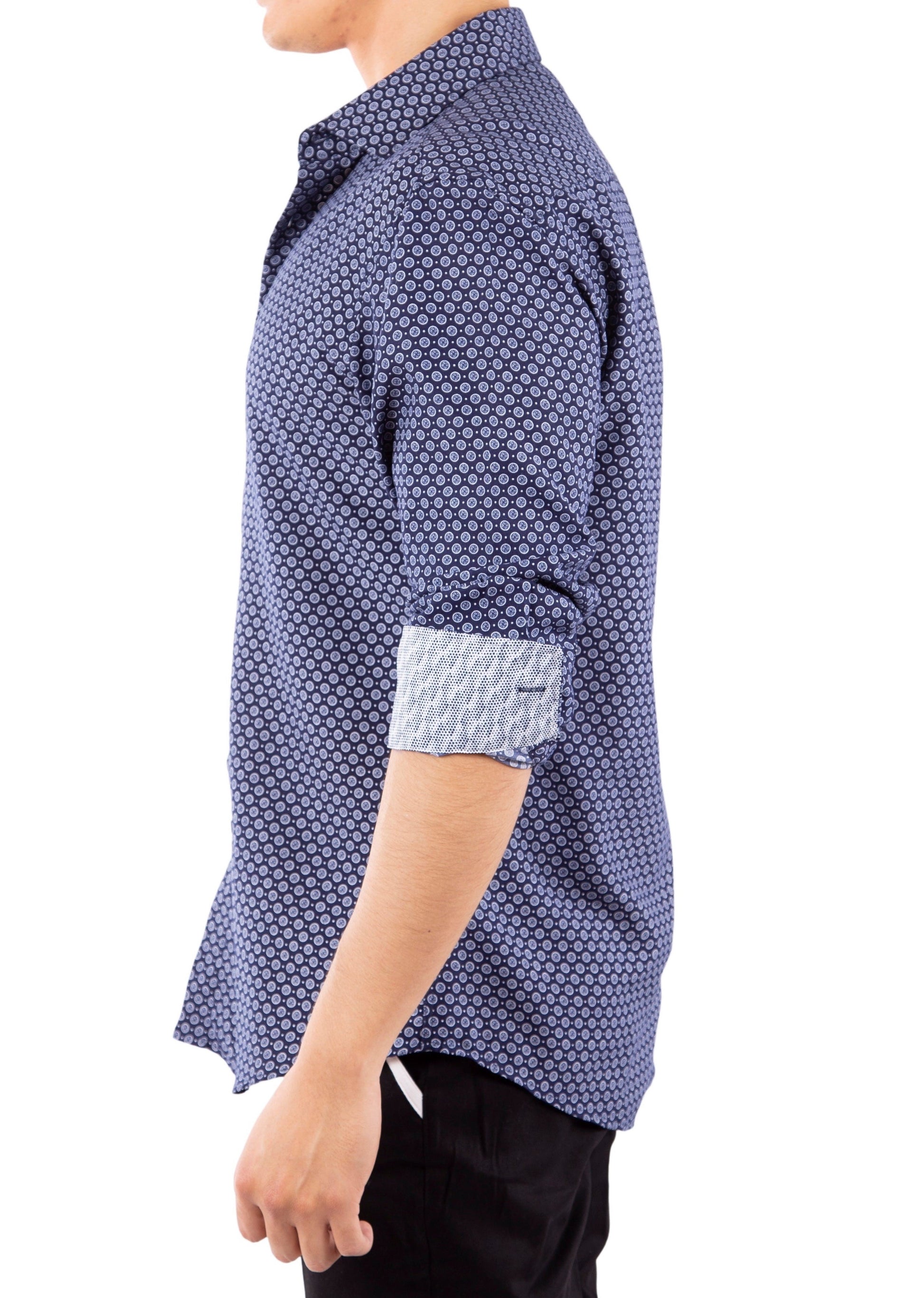 - Medallion Motif Contrast Cuff Printed Long Sleeve Dress Shirt