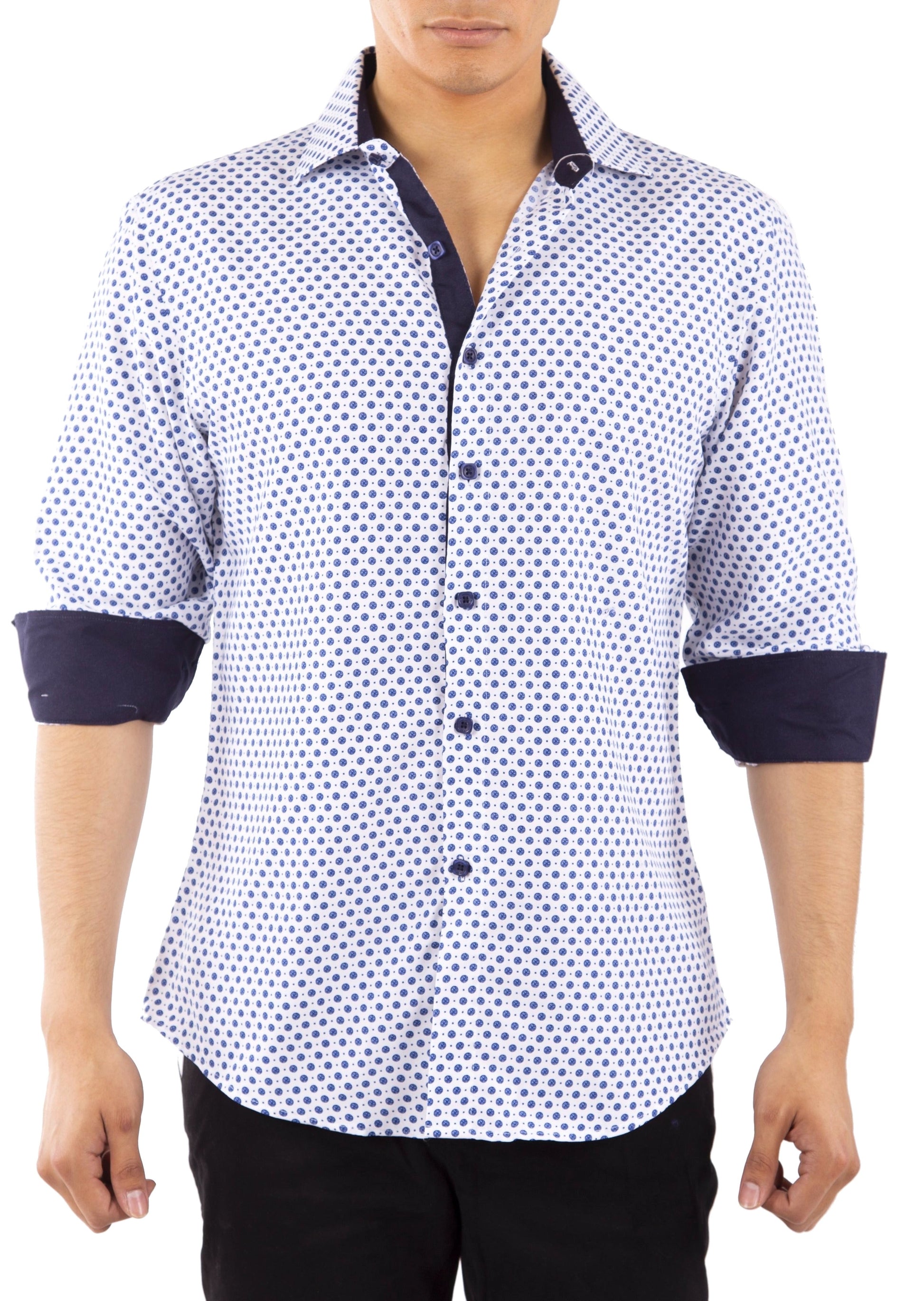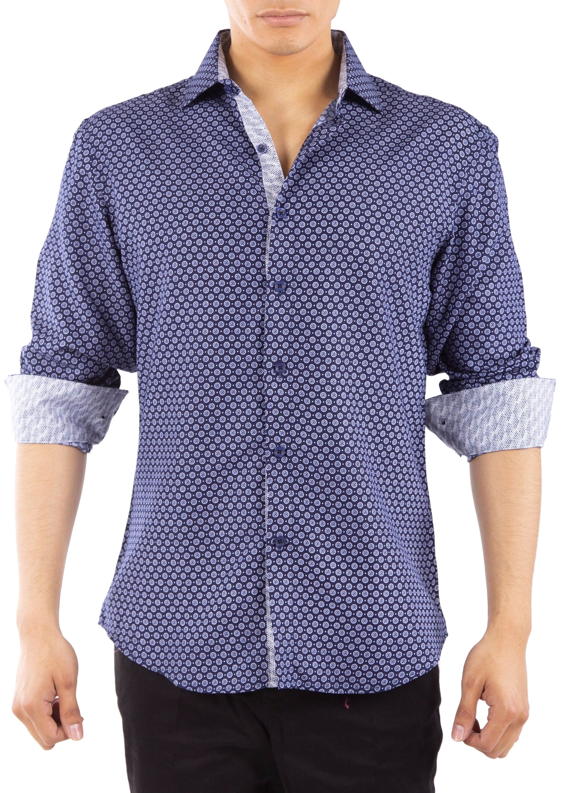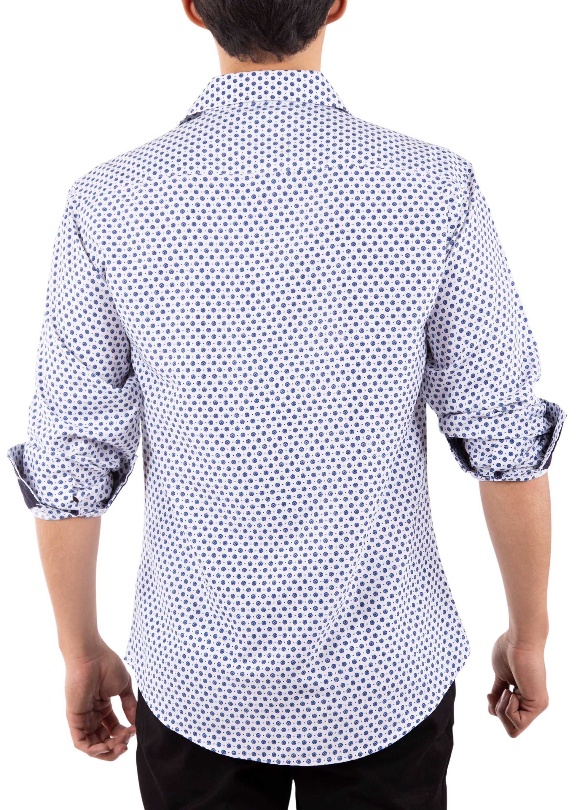 - Medallion Motif Contrast Cuff Printed Long Sleeve Dress Shirt