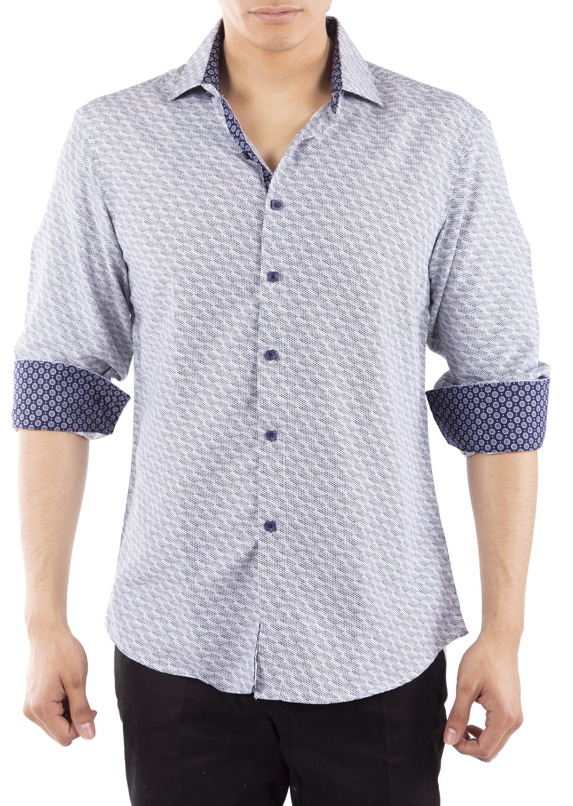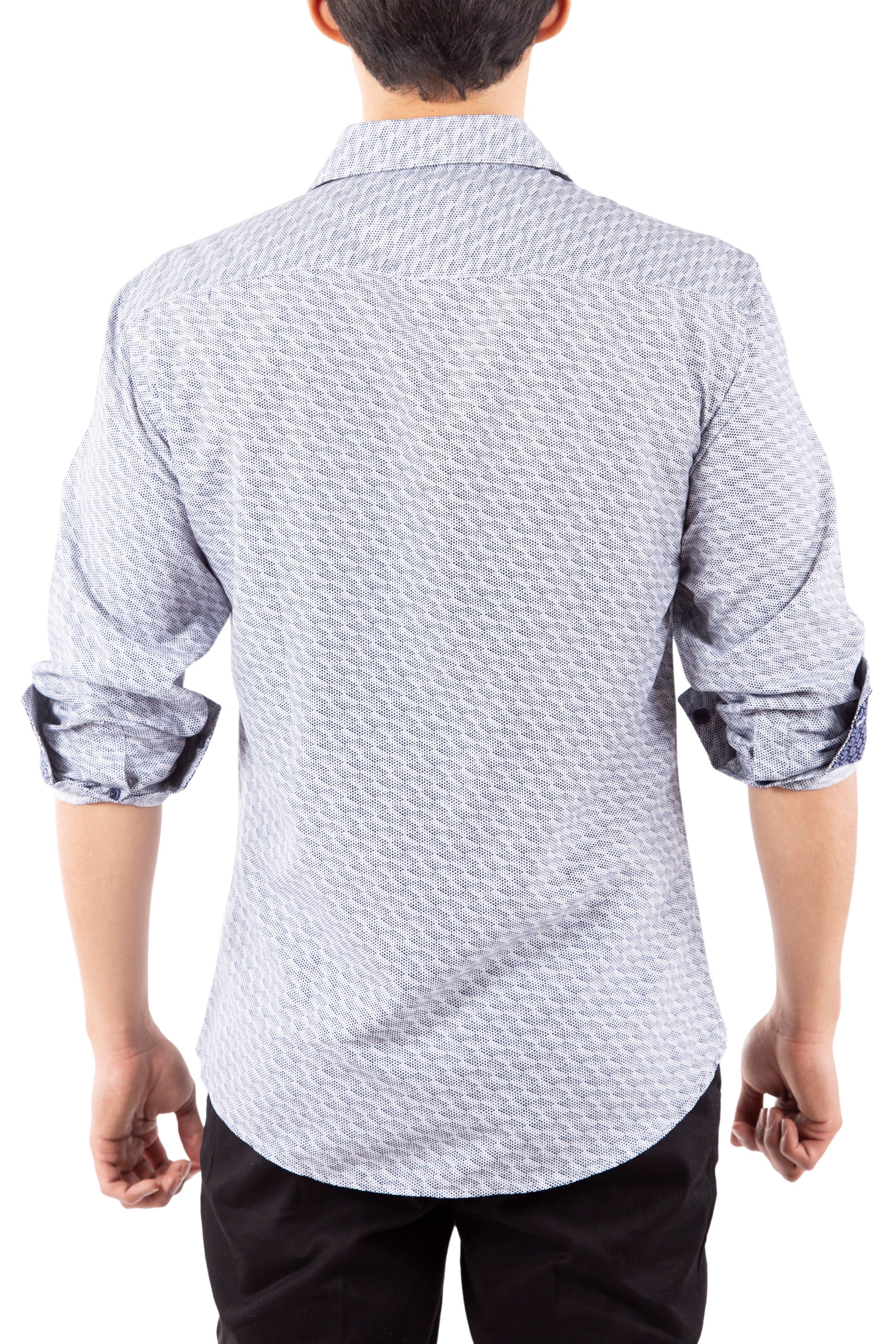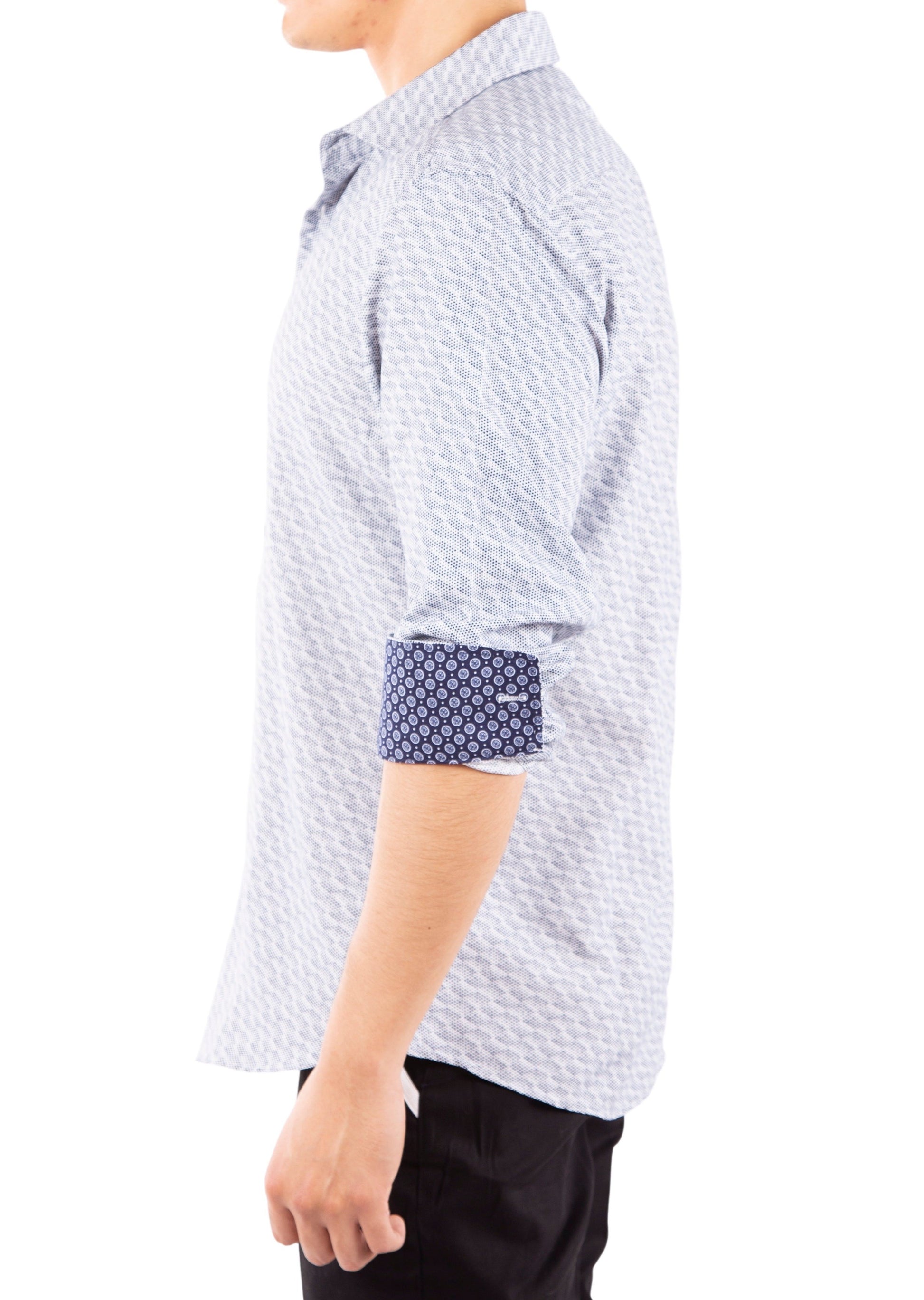 - Dotted Gradient Print Contrast Cuff Long Sleeve Dress Shirt