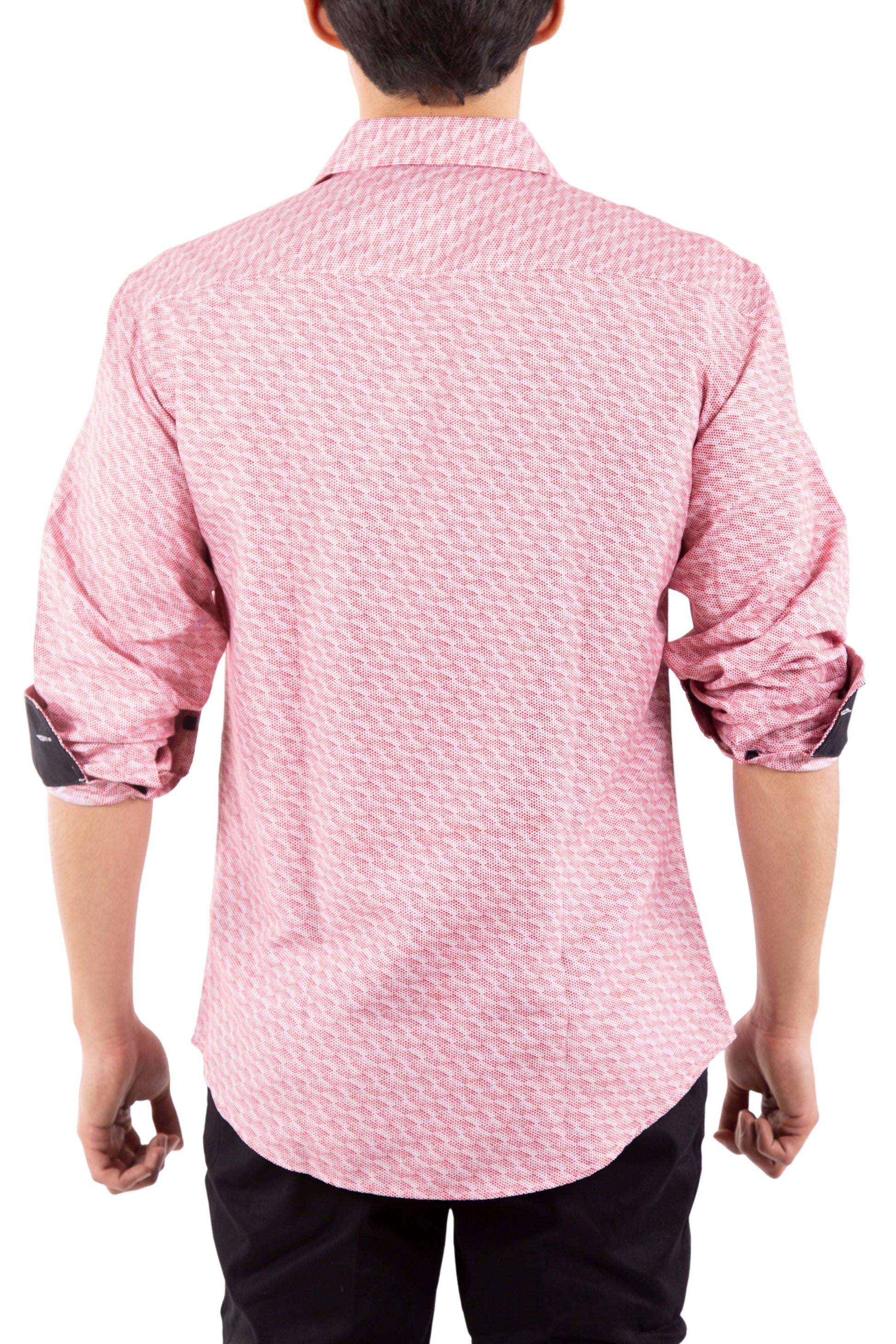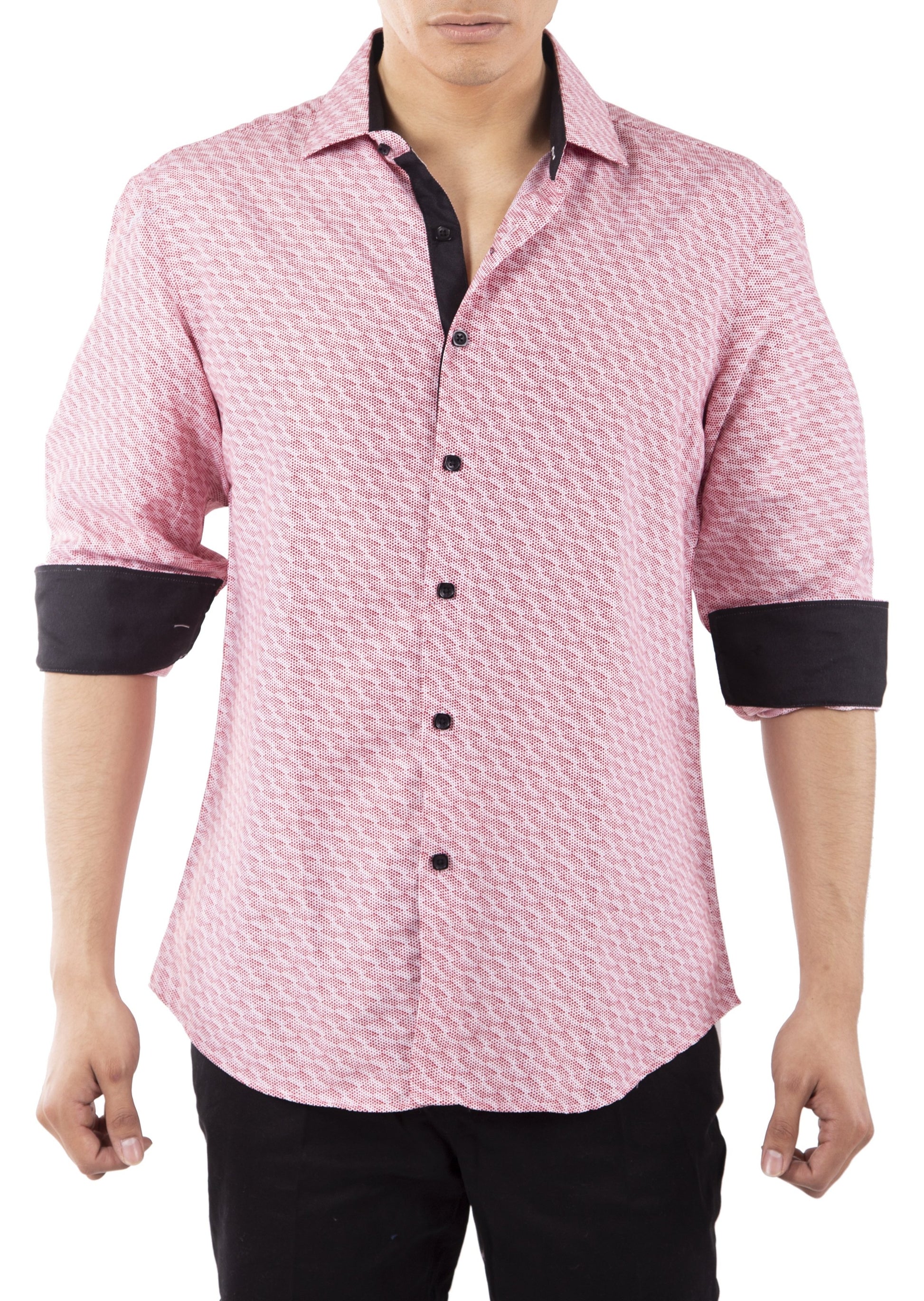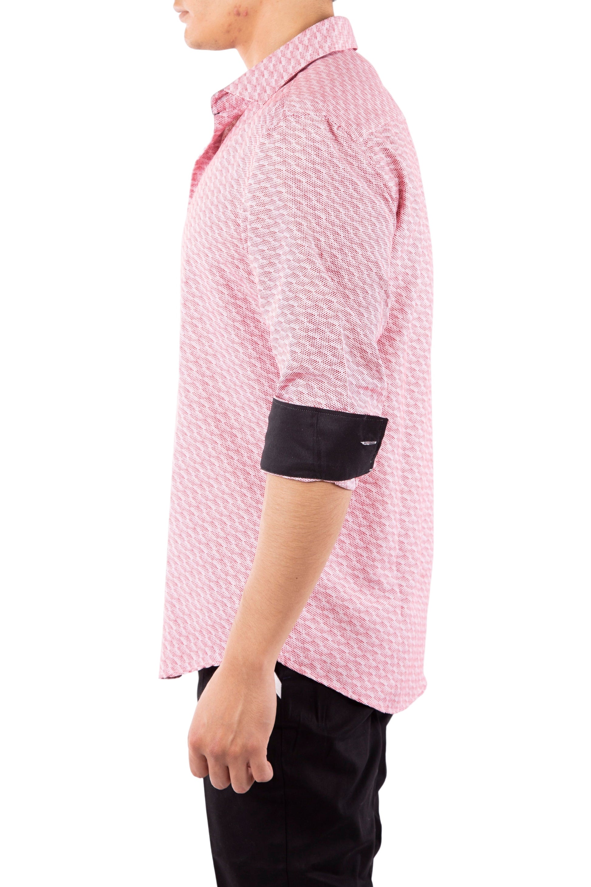 - Dotted Gradient Print Contrast Cuff Long Sleeve Dress Shirt