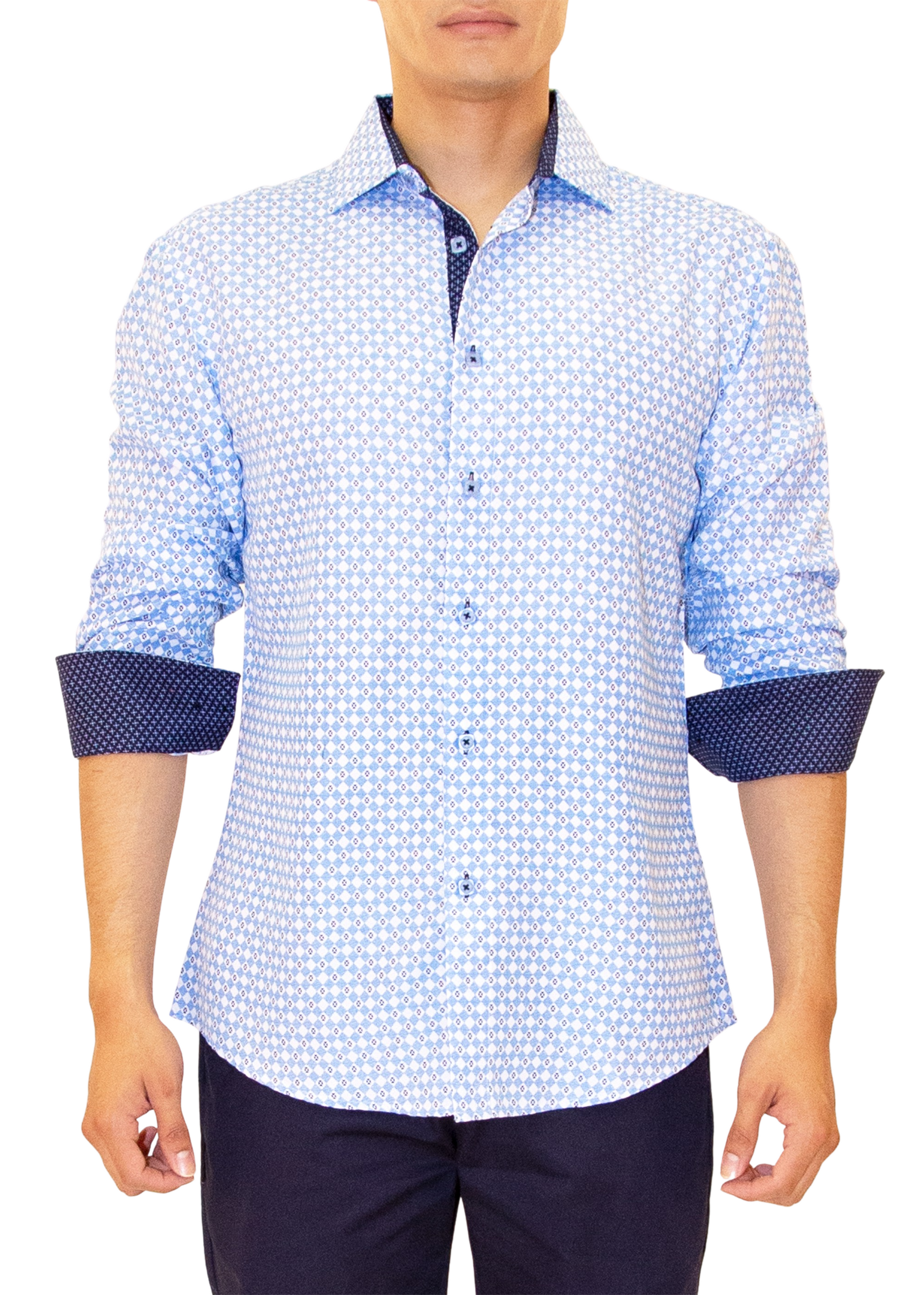 - Contrast Trim on Inner Cuff, Collar & Placket