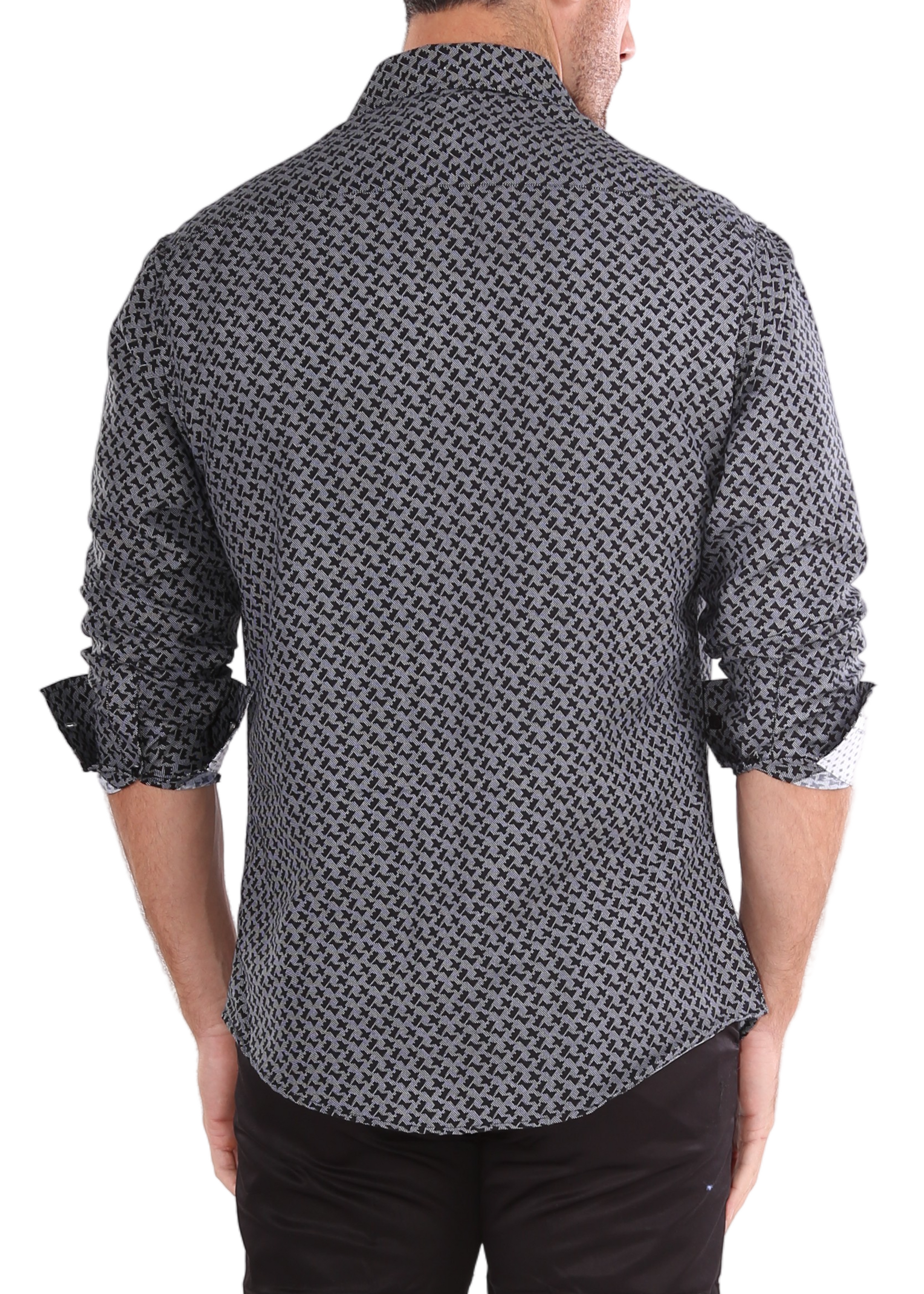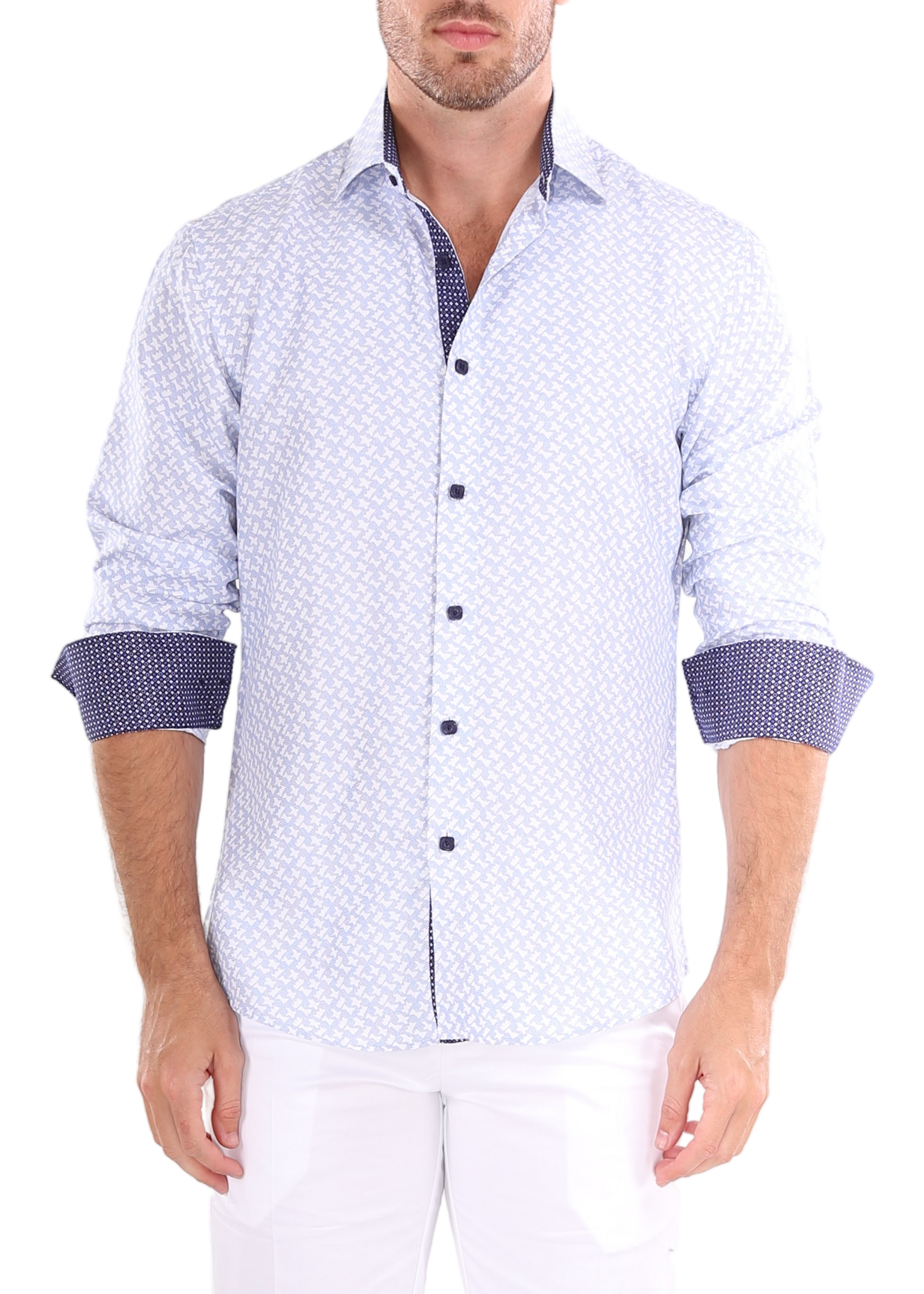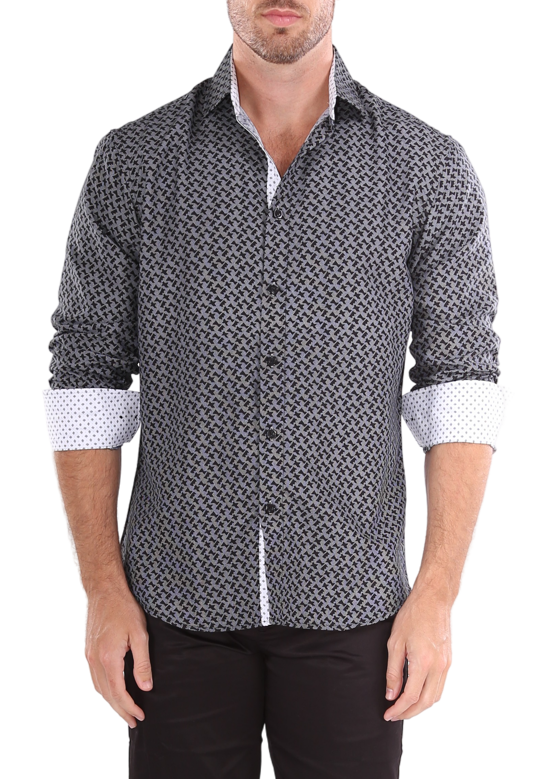 - Abstract Geometric Dot Print Long Sleeve Dress Shirt