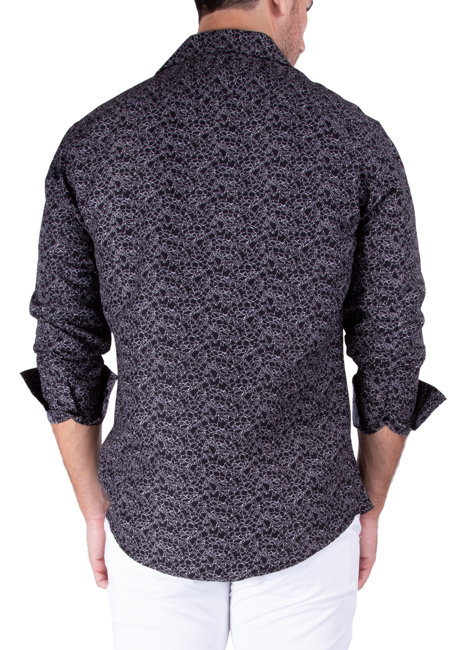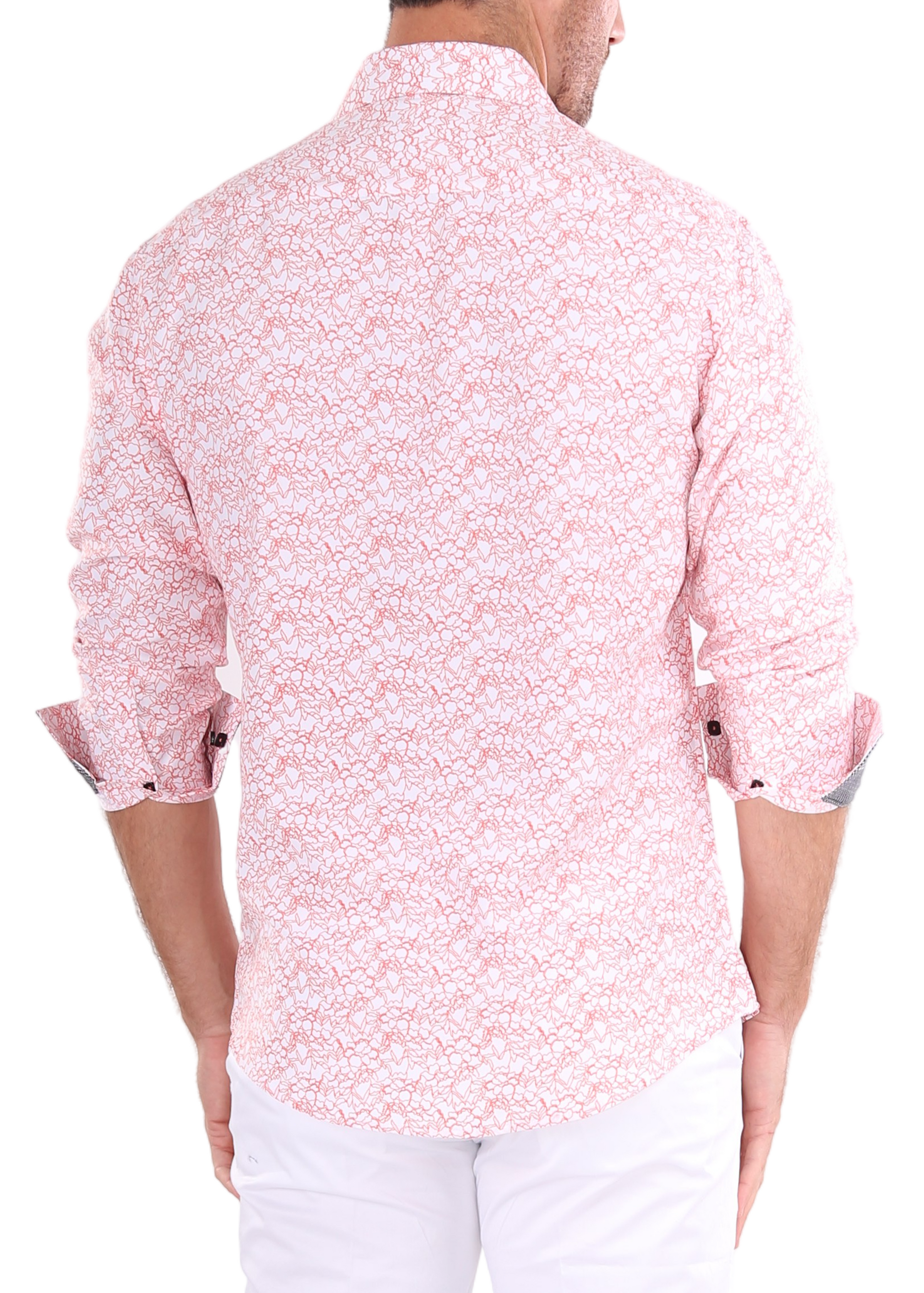 - Abstract Linear Floral Print Long Sleeve Dress Shirt