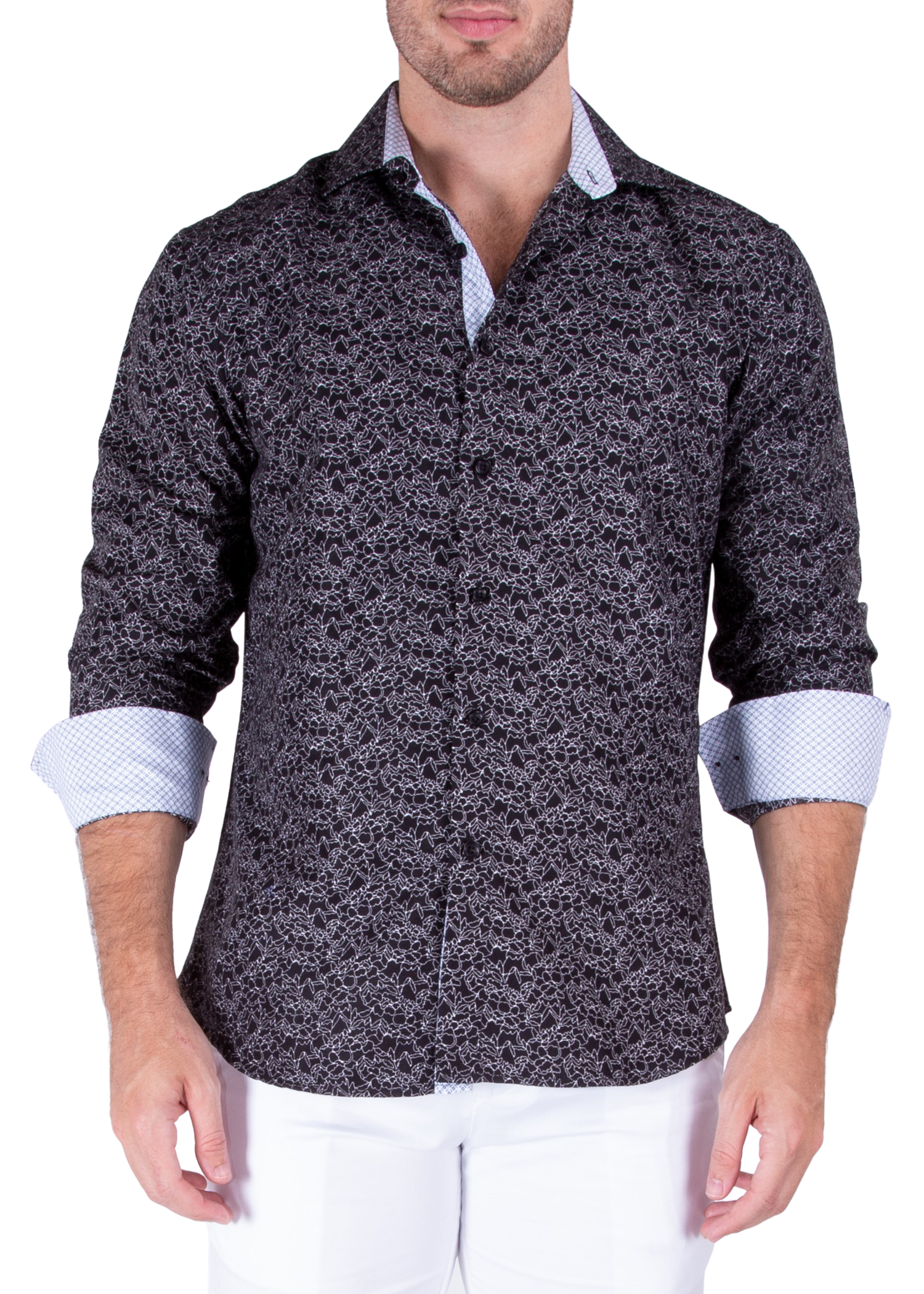 - Contrast Trim on Inner Cuff, Collar & Placket