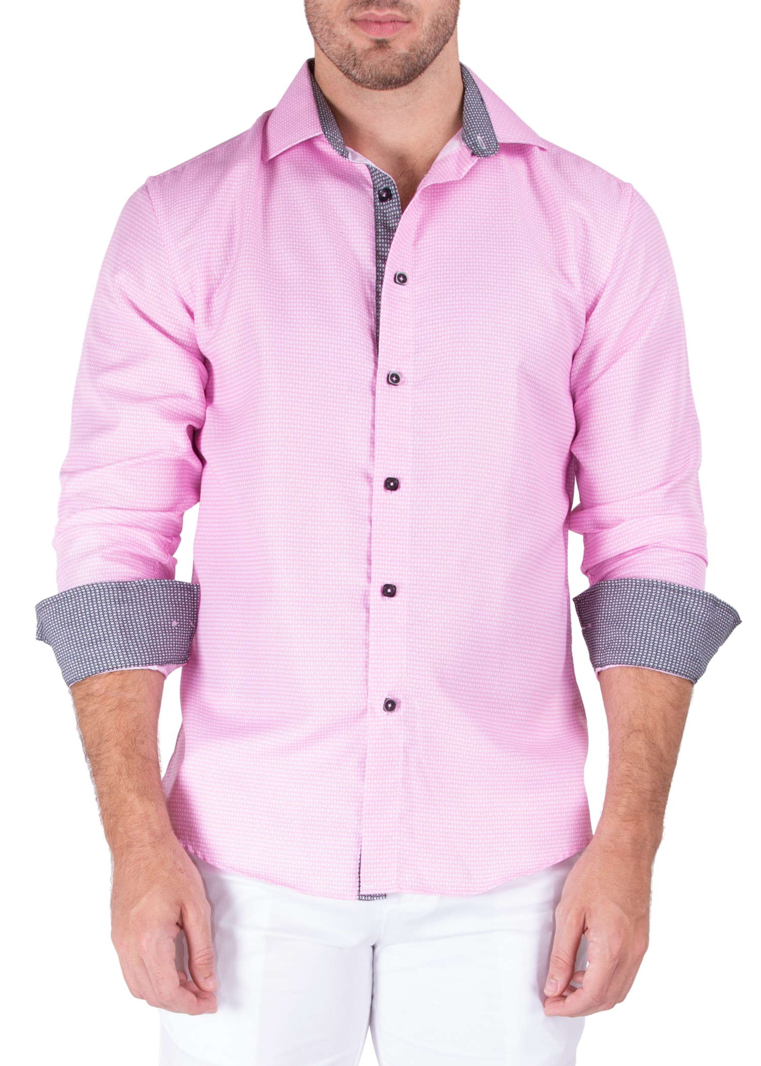 - Contrast Trim on Inner Cuff, Collar & Placket