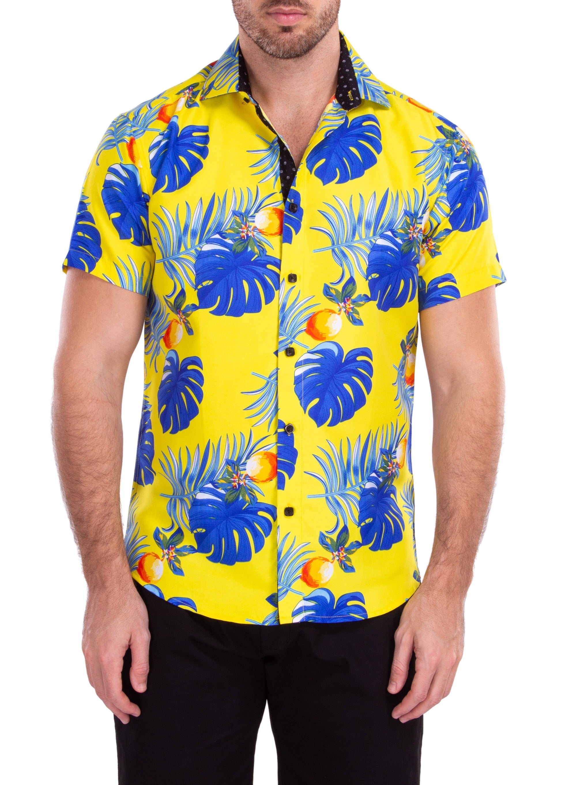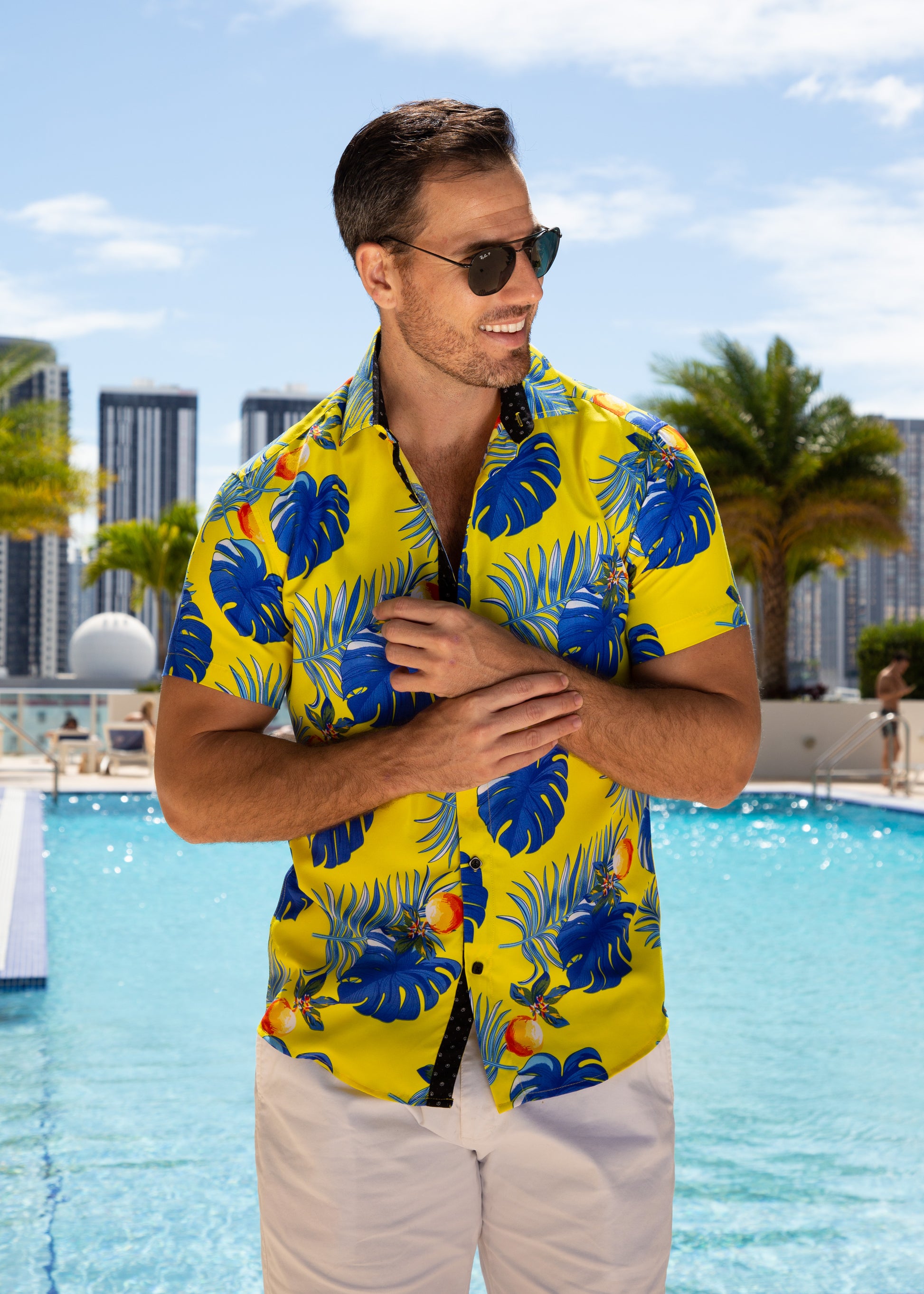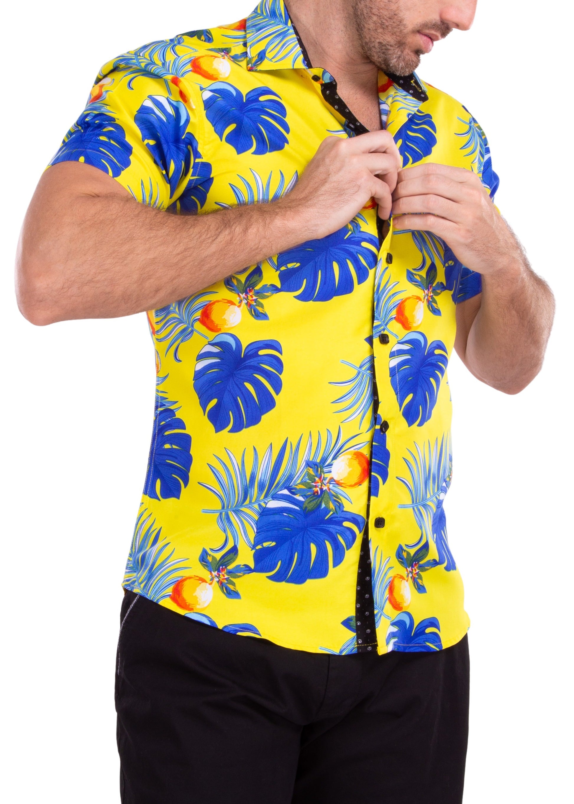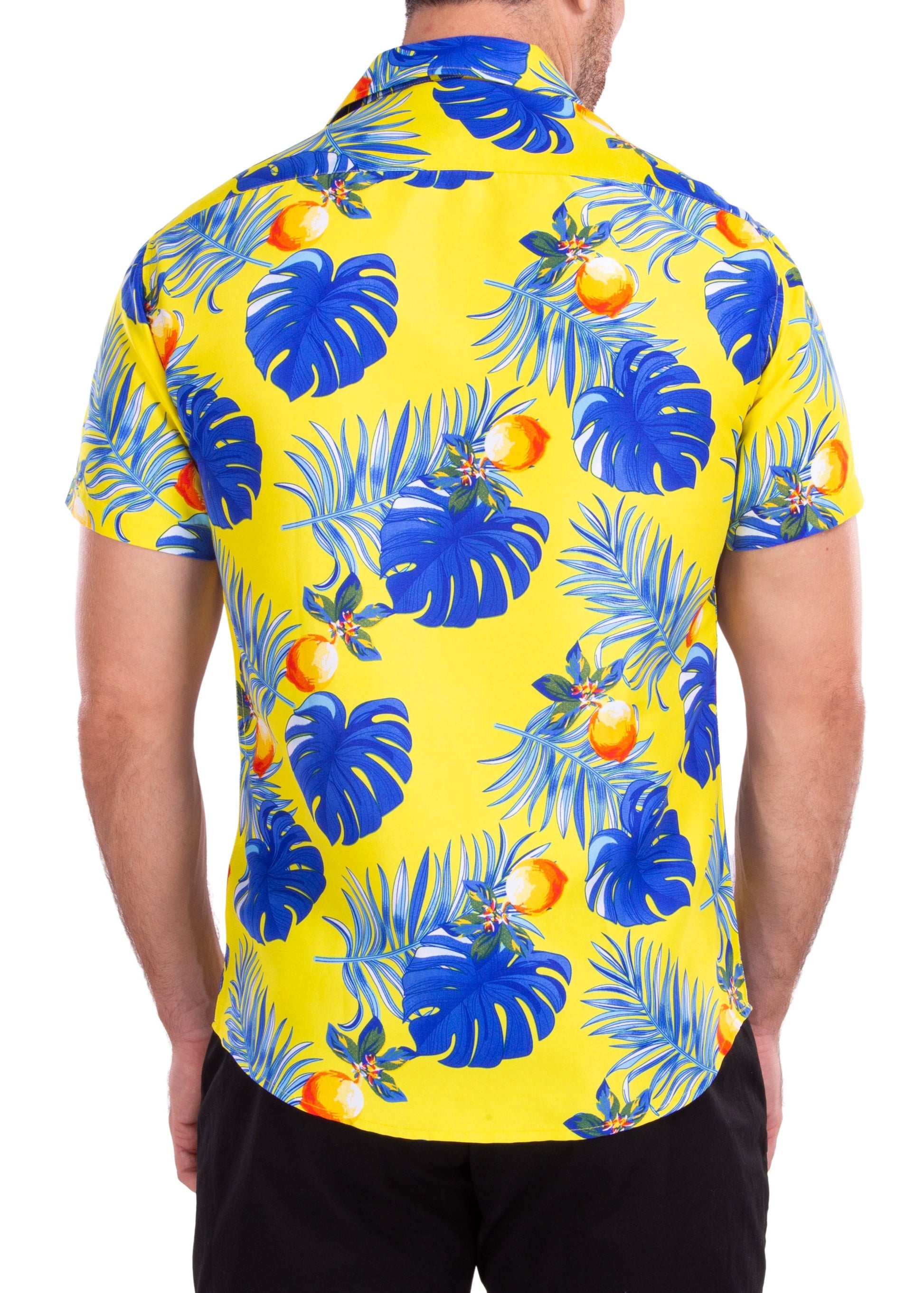 - Tropical Leaves And Citrus Fruit Hawaiian Print