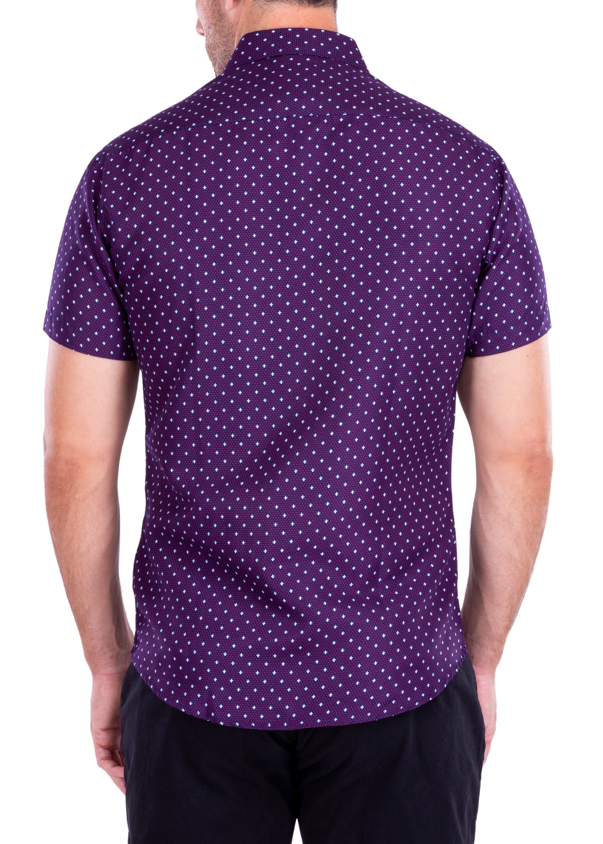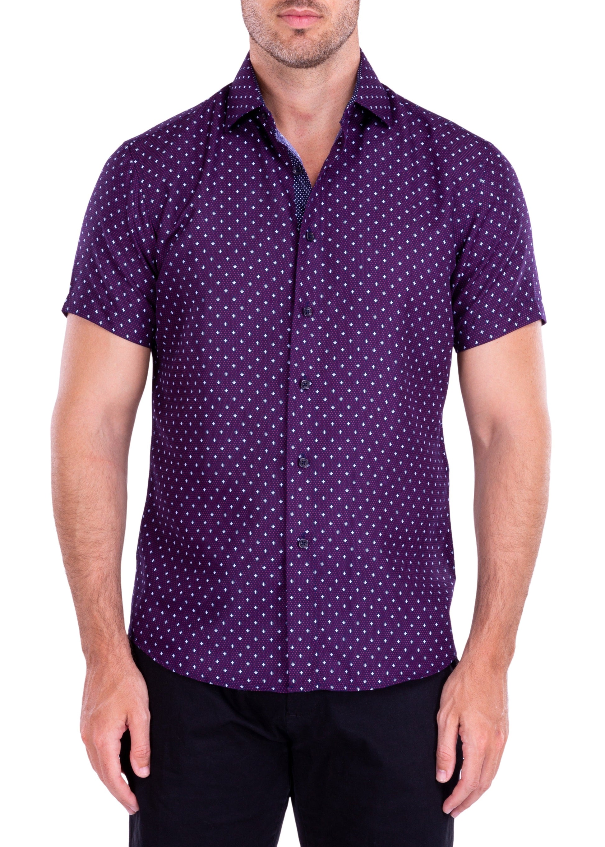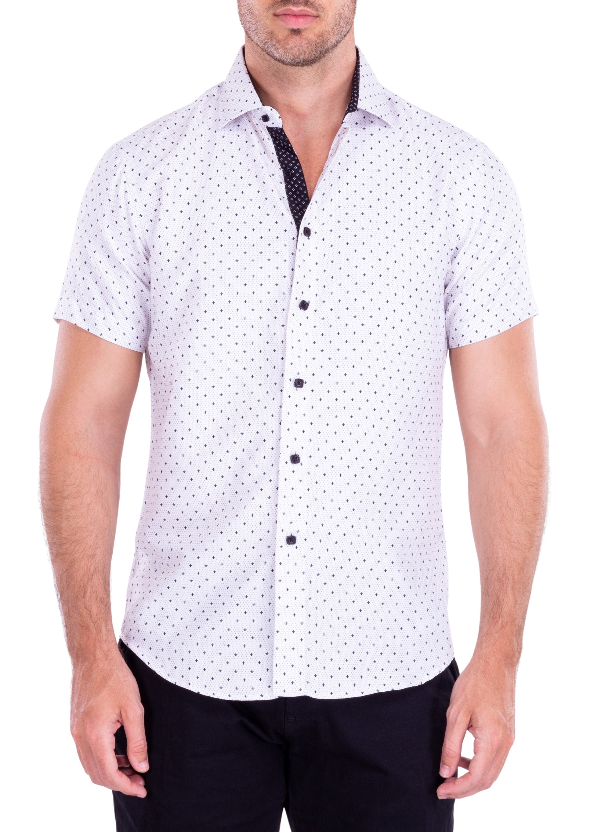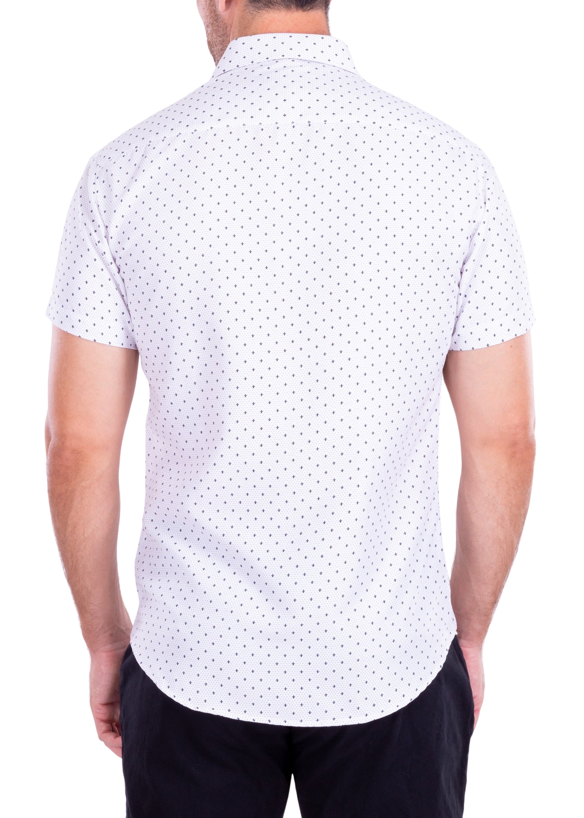 - Dotted fleur-de-lis microprint short sleeve button-up dress shirt