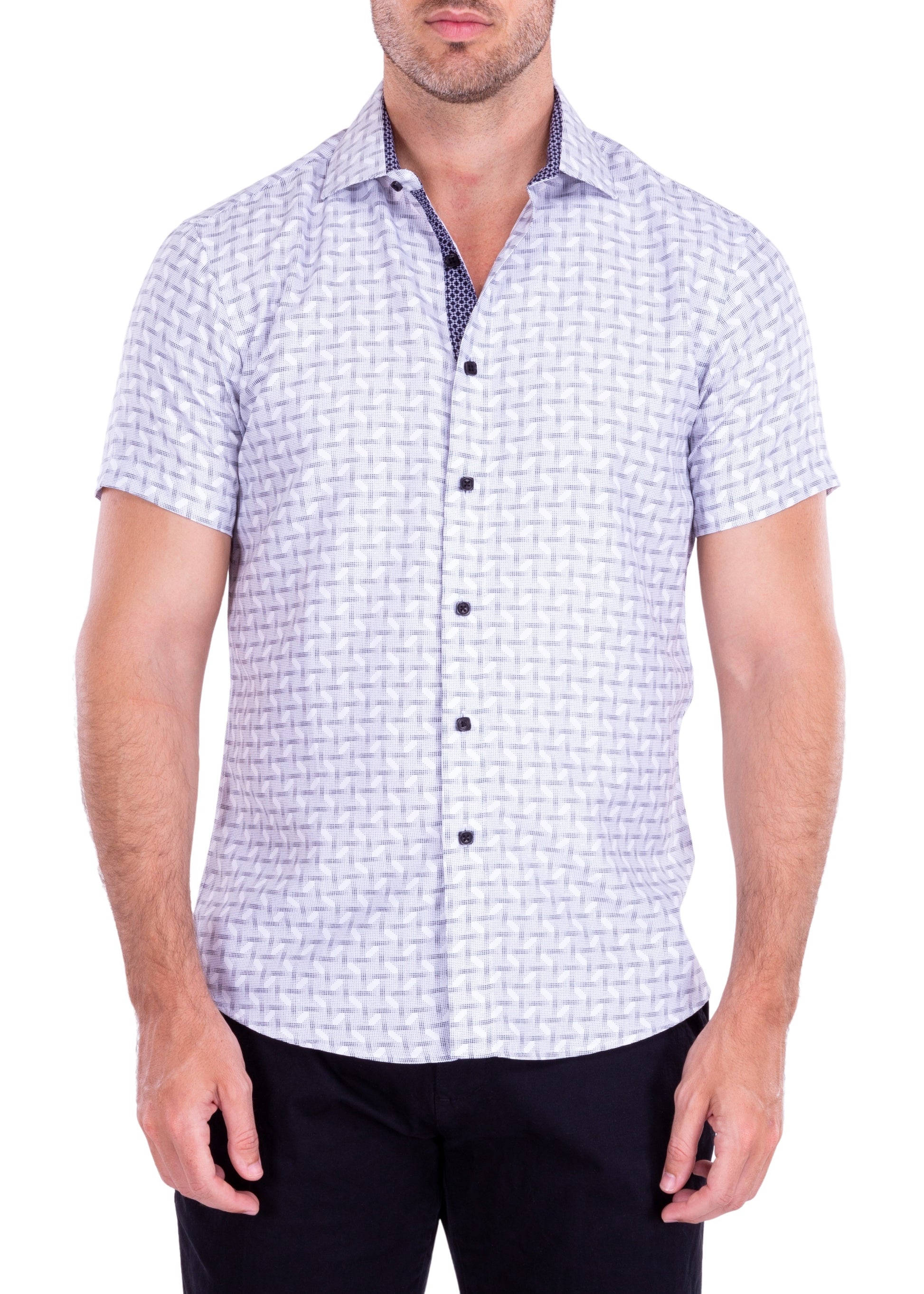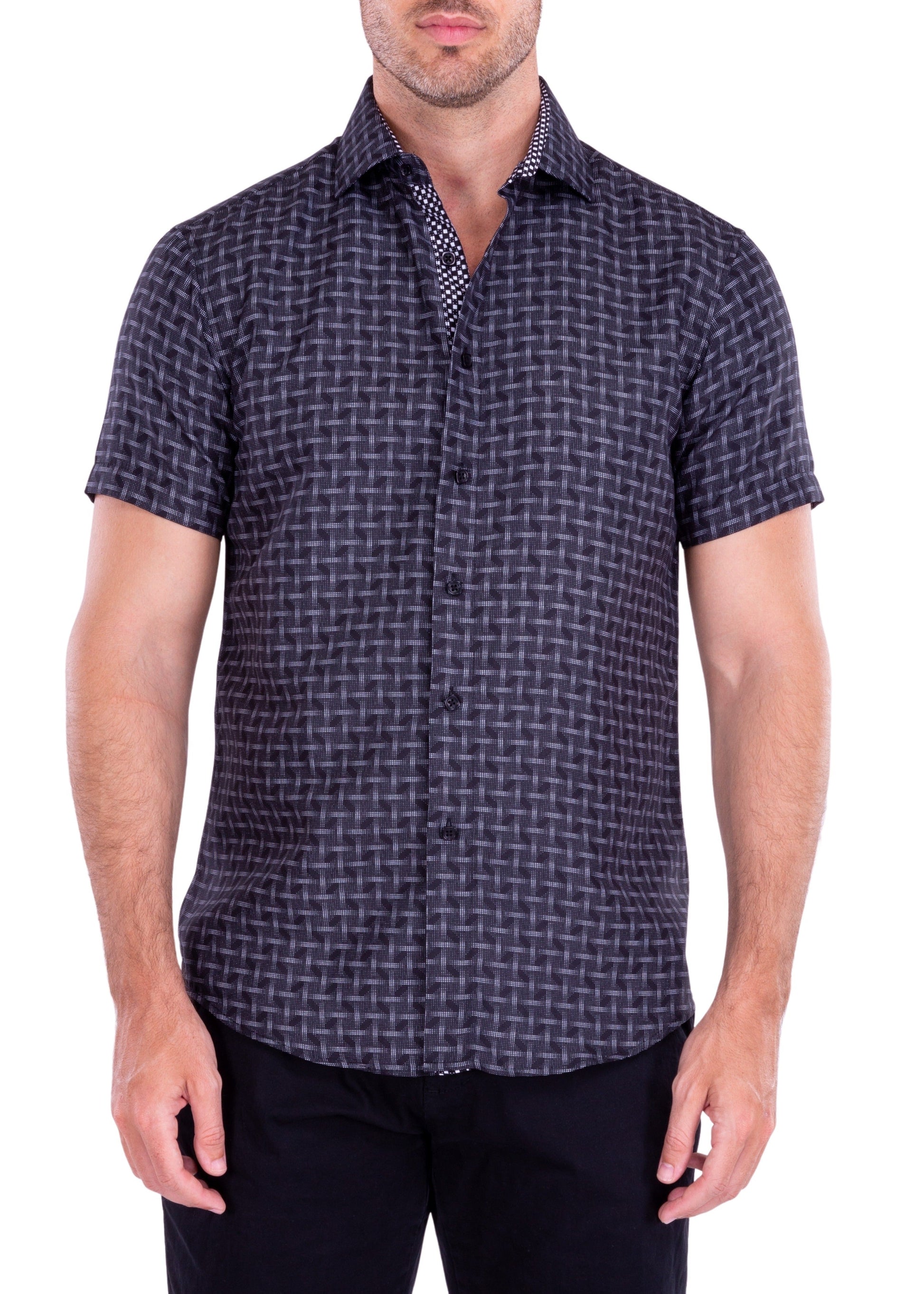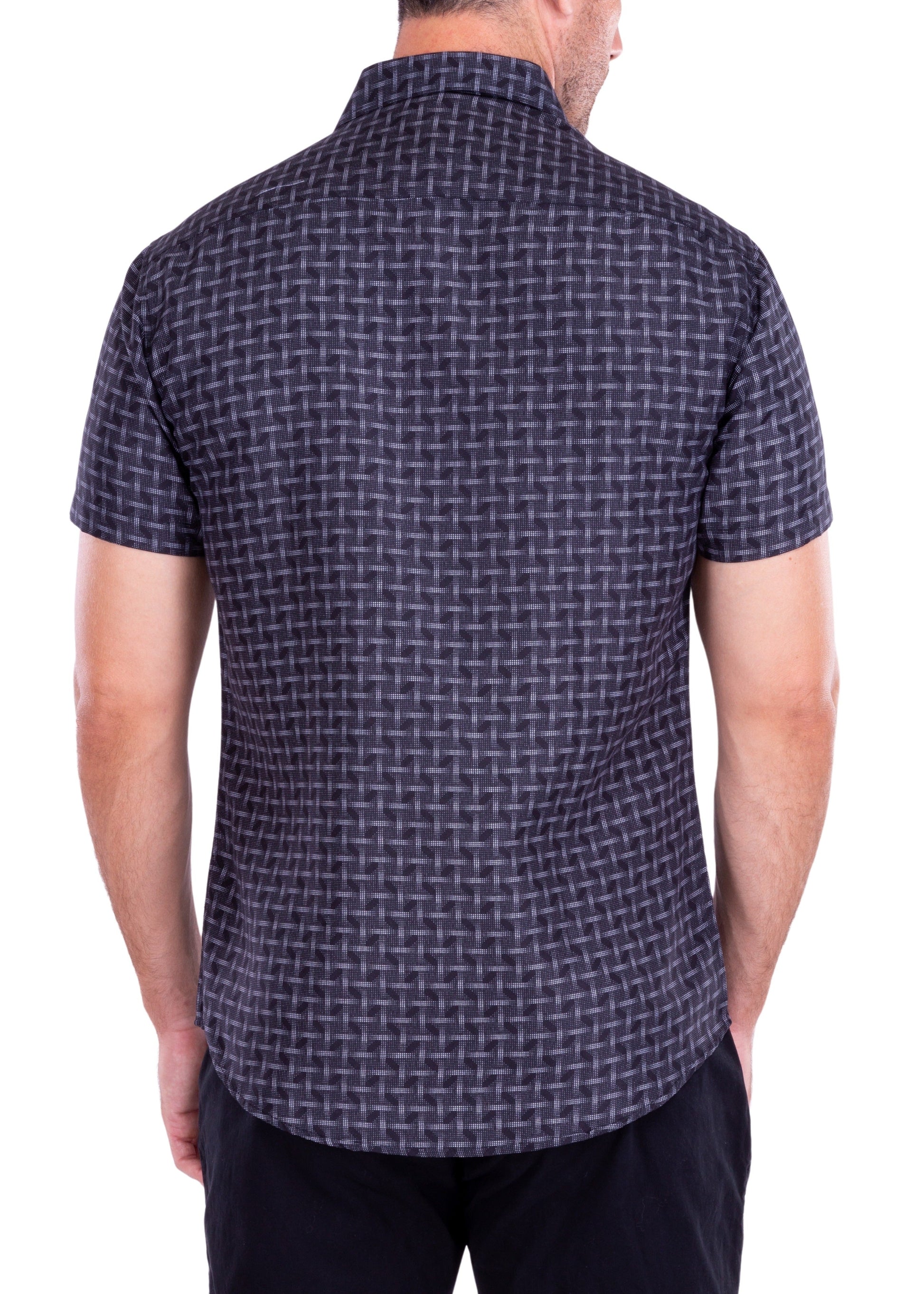 - Diamond Plate Tire Tread Pattern Short Sleeve Dress Shirt For Work & Play