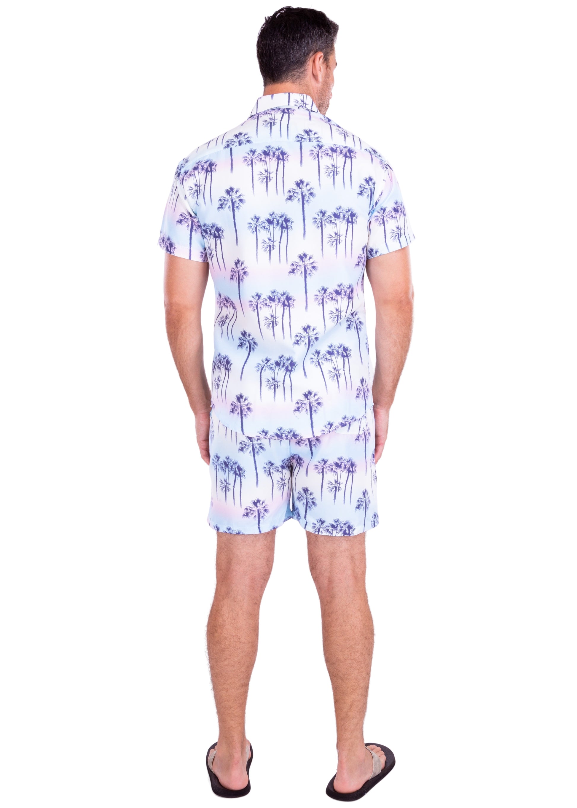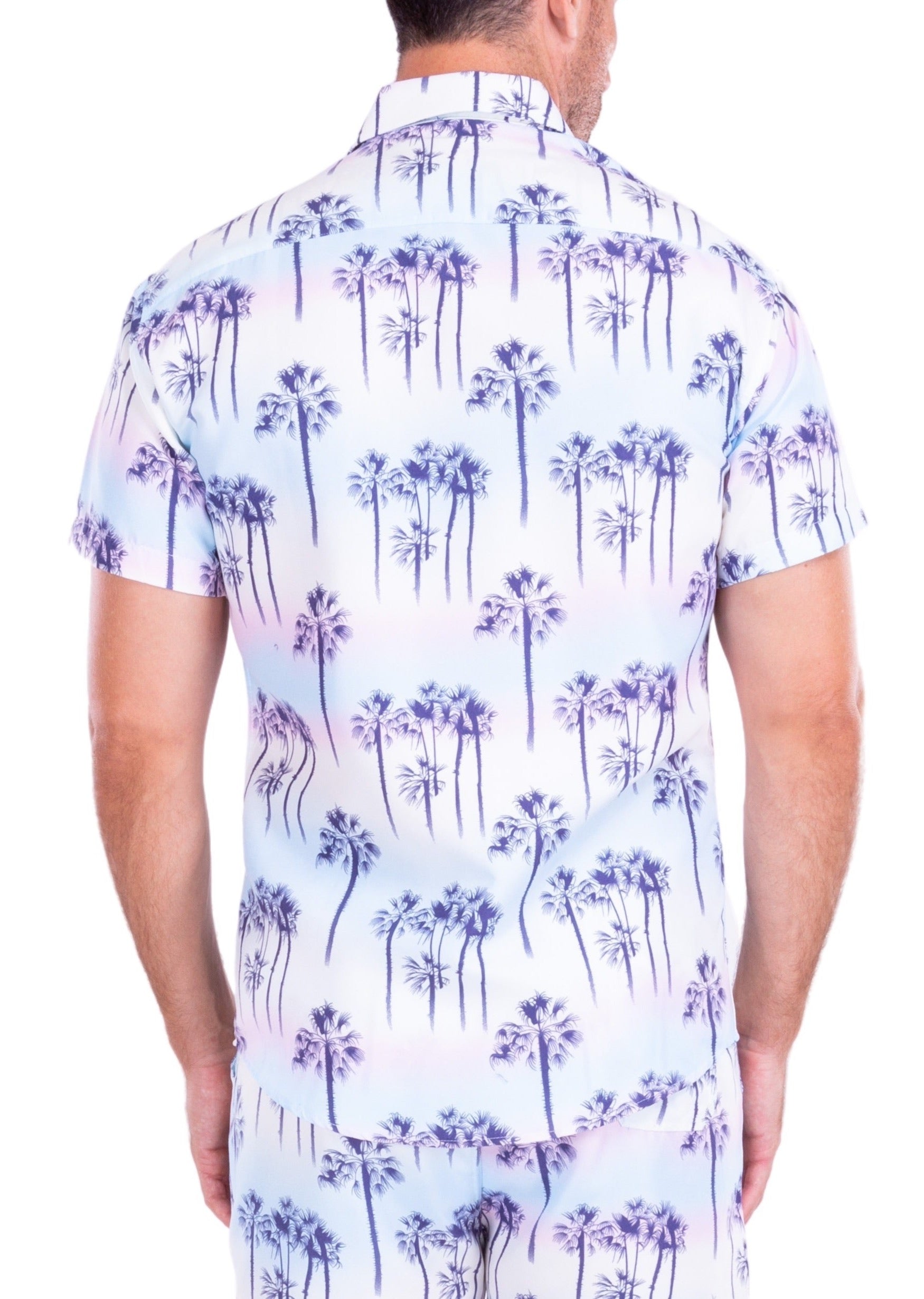 - Palm Tree Print Soft Pastel Gradient Button-Up Short Sleeve Shirt