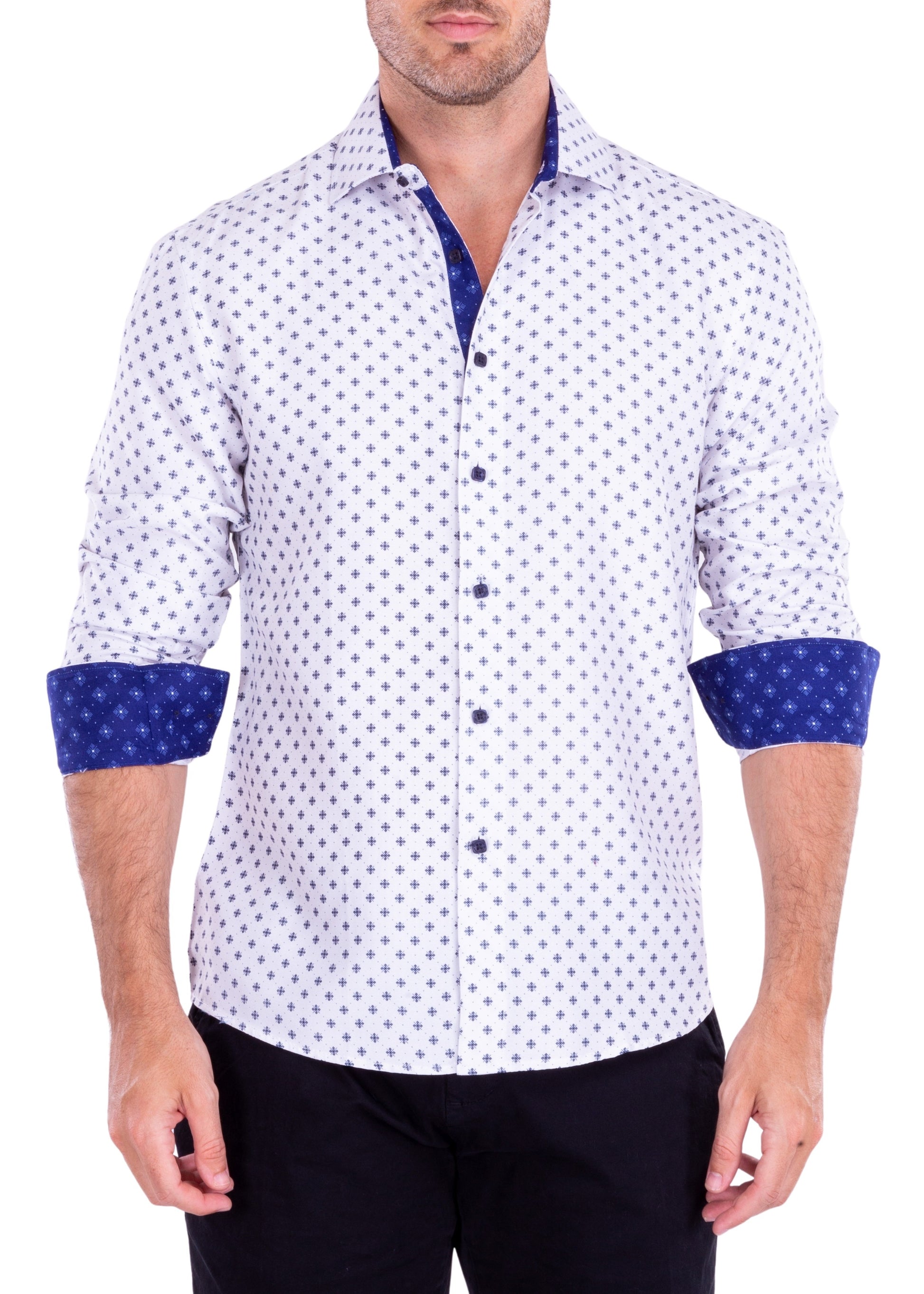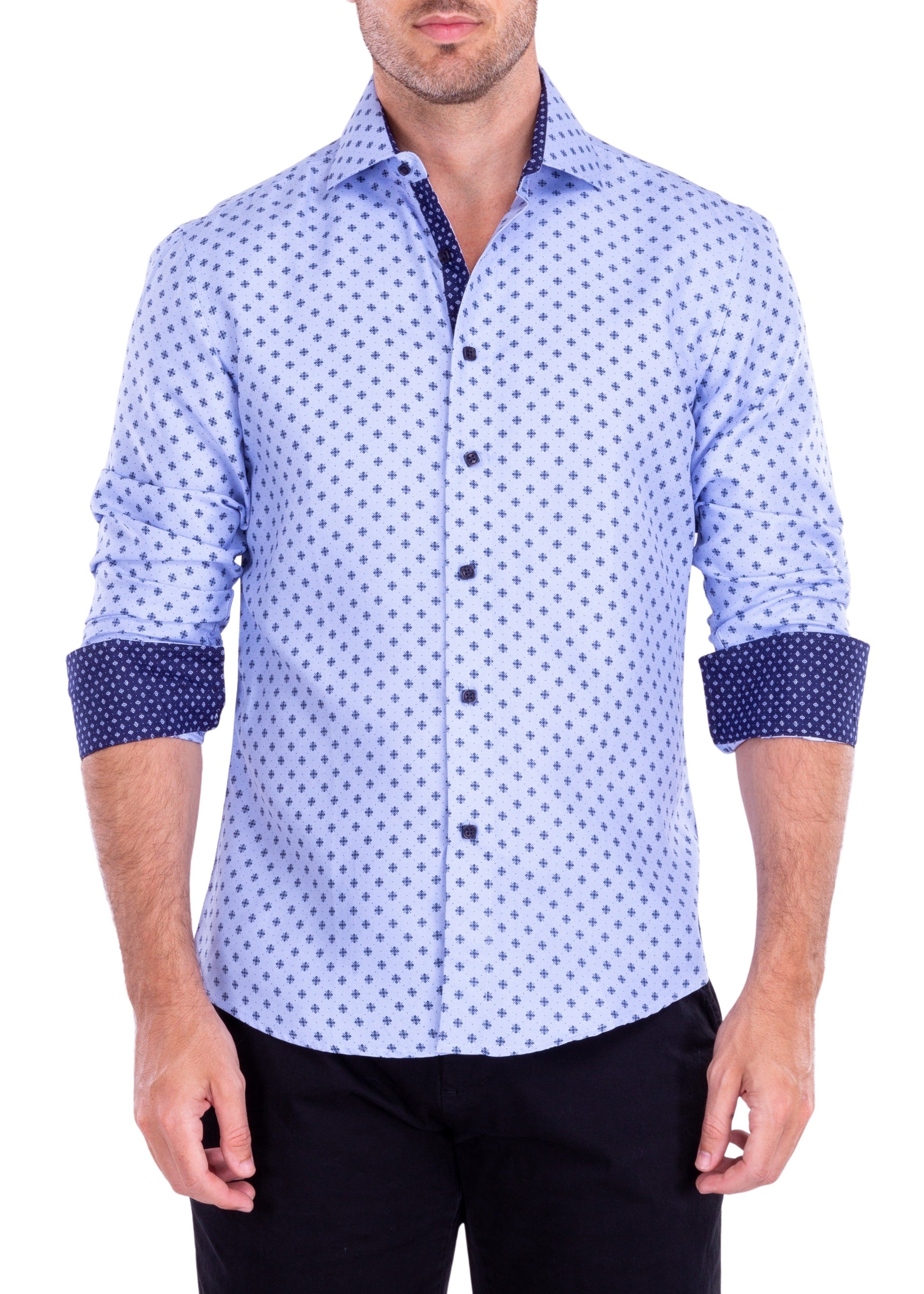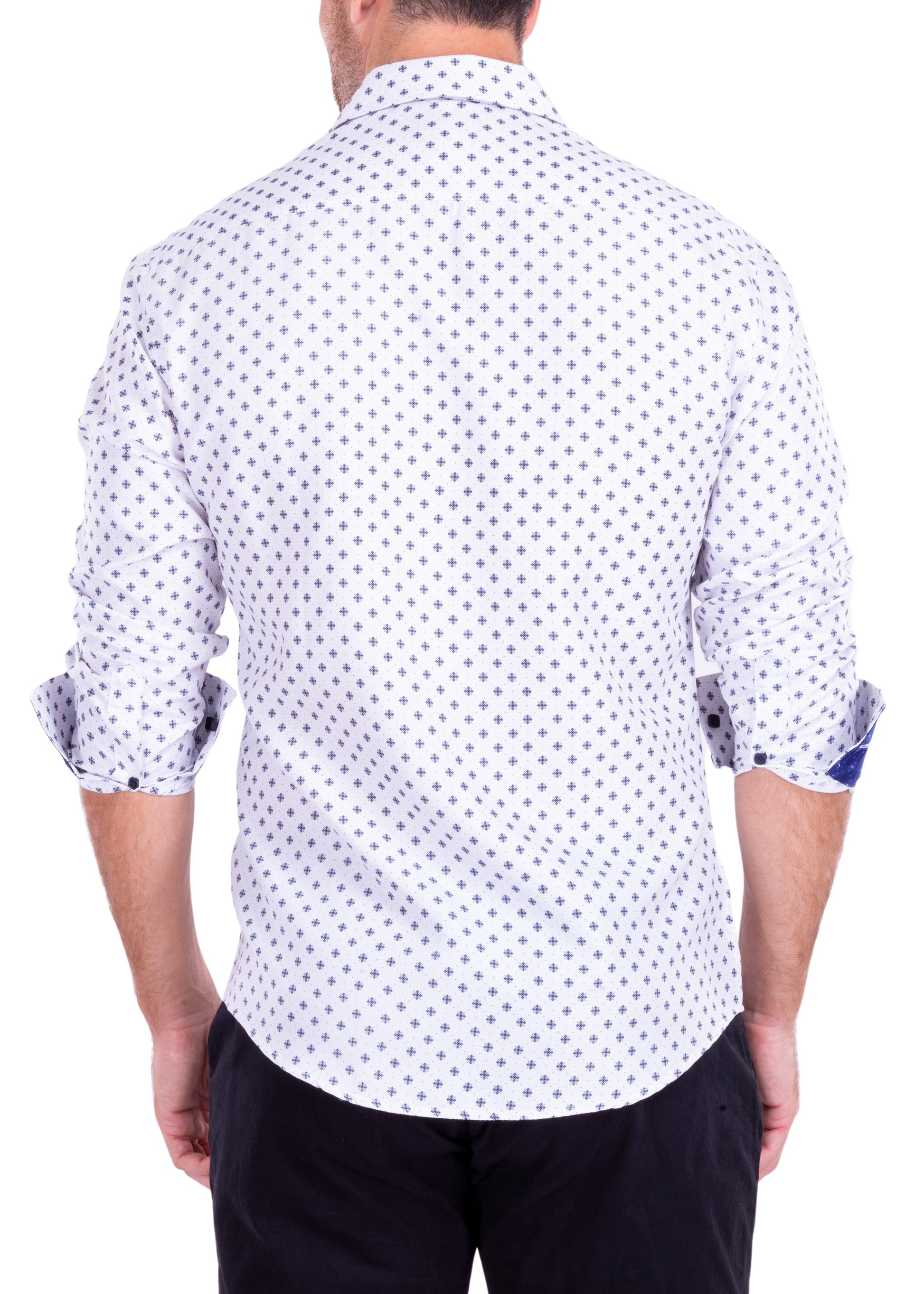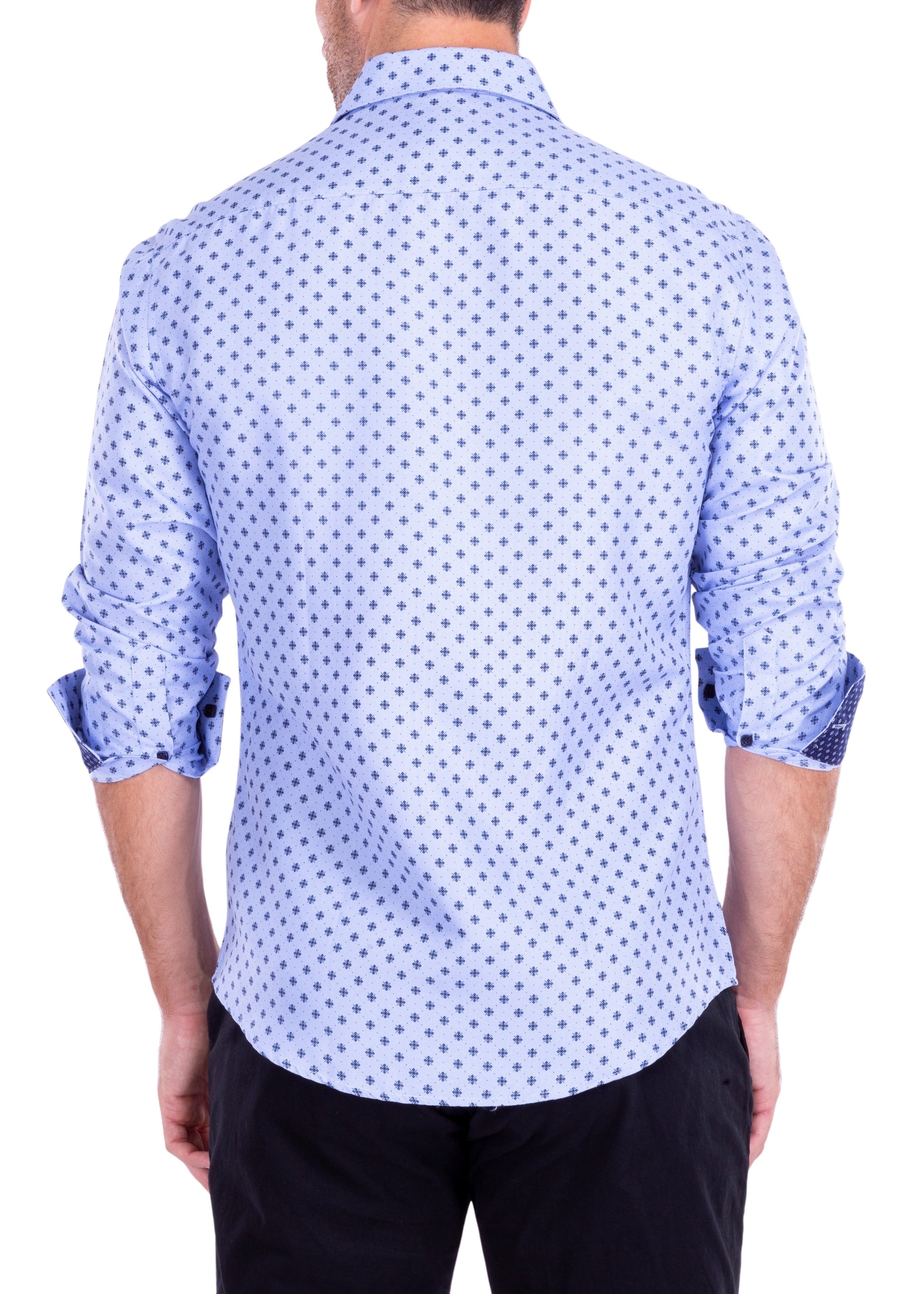 Geometric Flower Compass Micro-Pattern Long Sleeve Dress Shirt