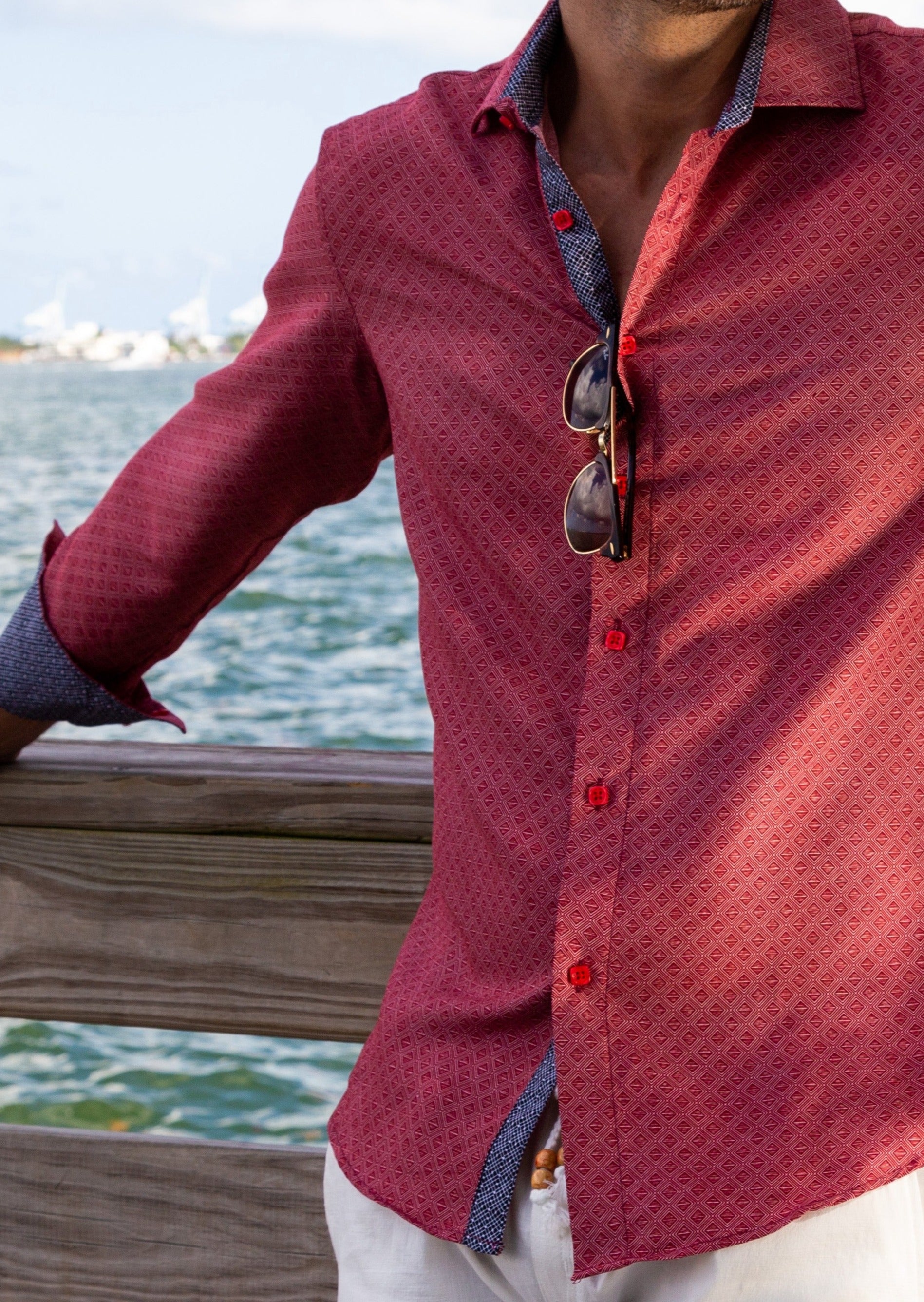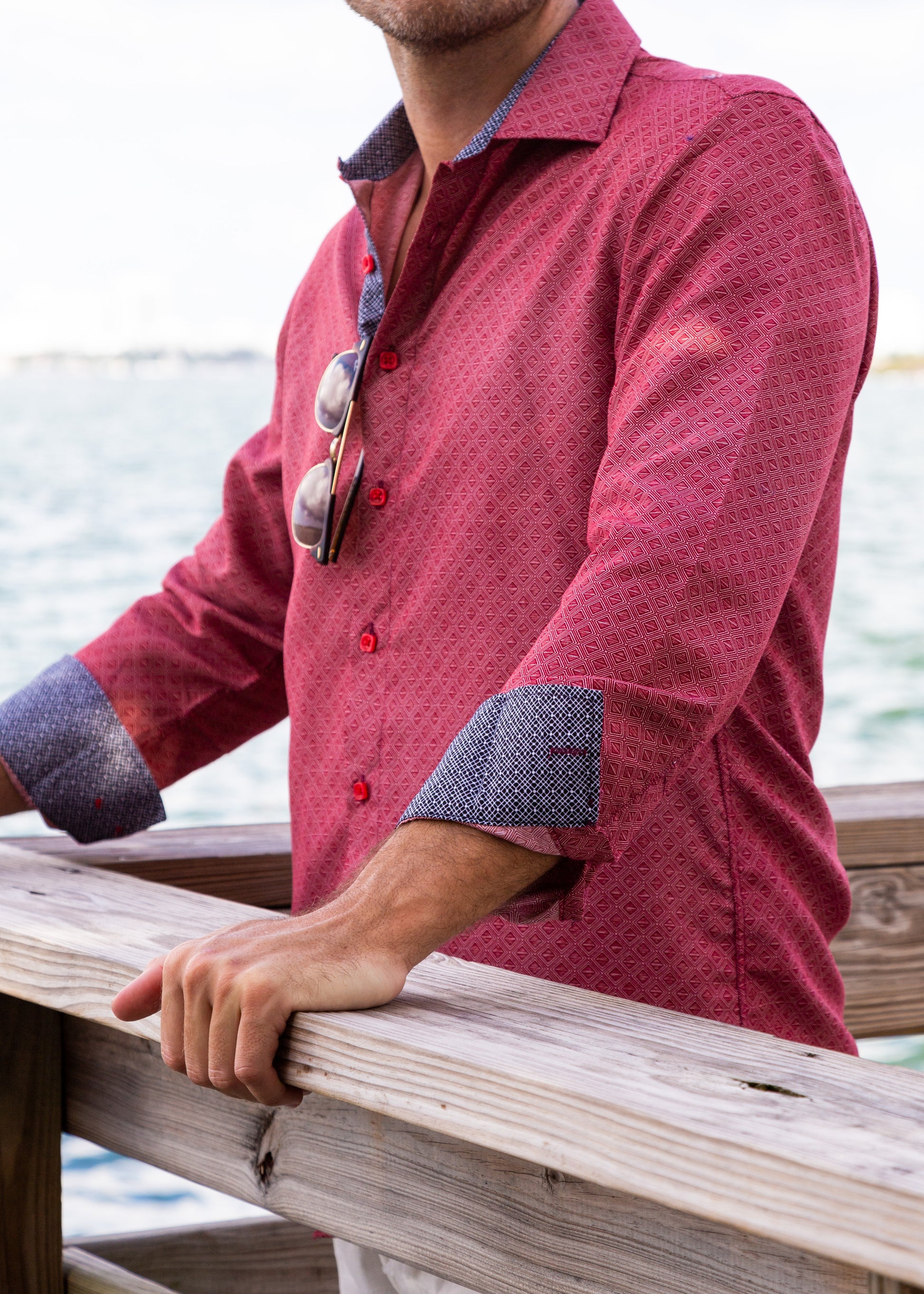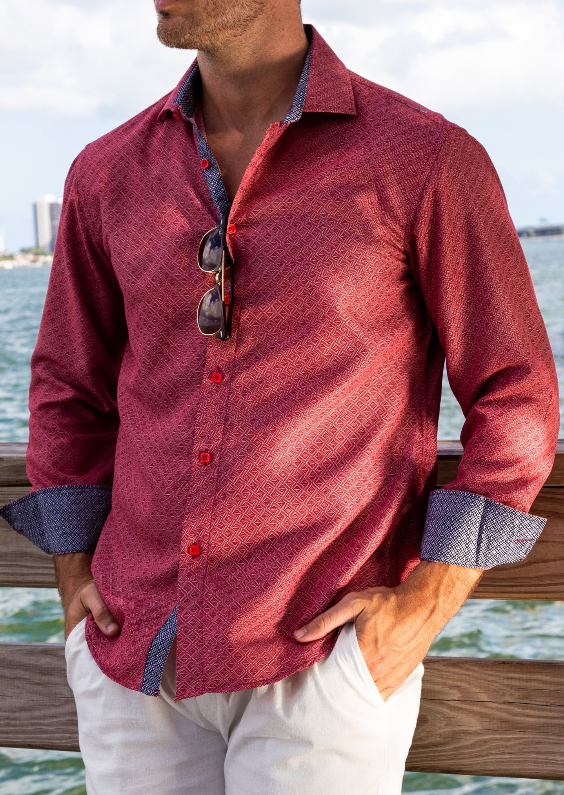 - Contrast Trim on Inner Cuff, Collar & Placket