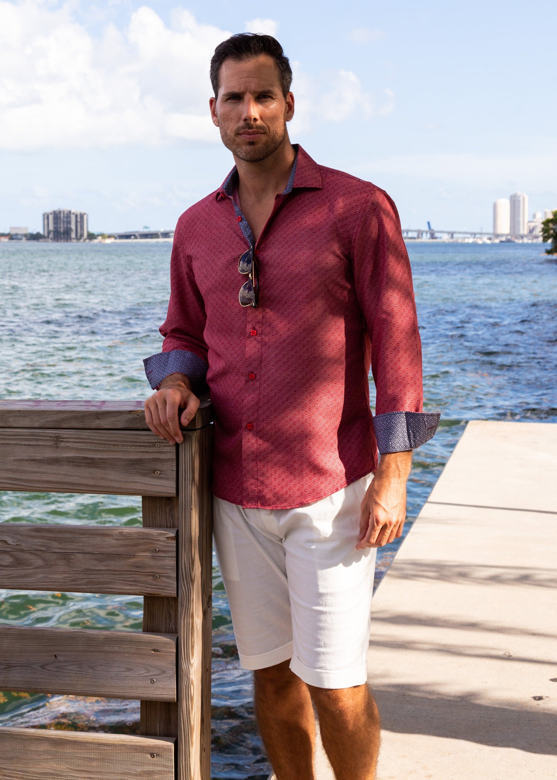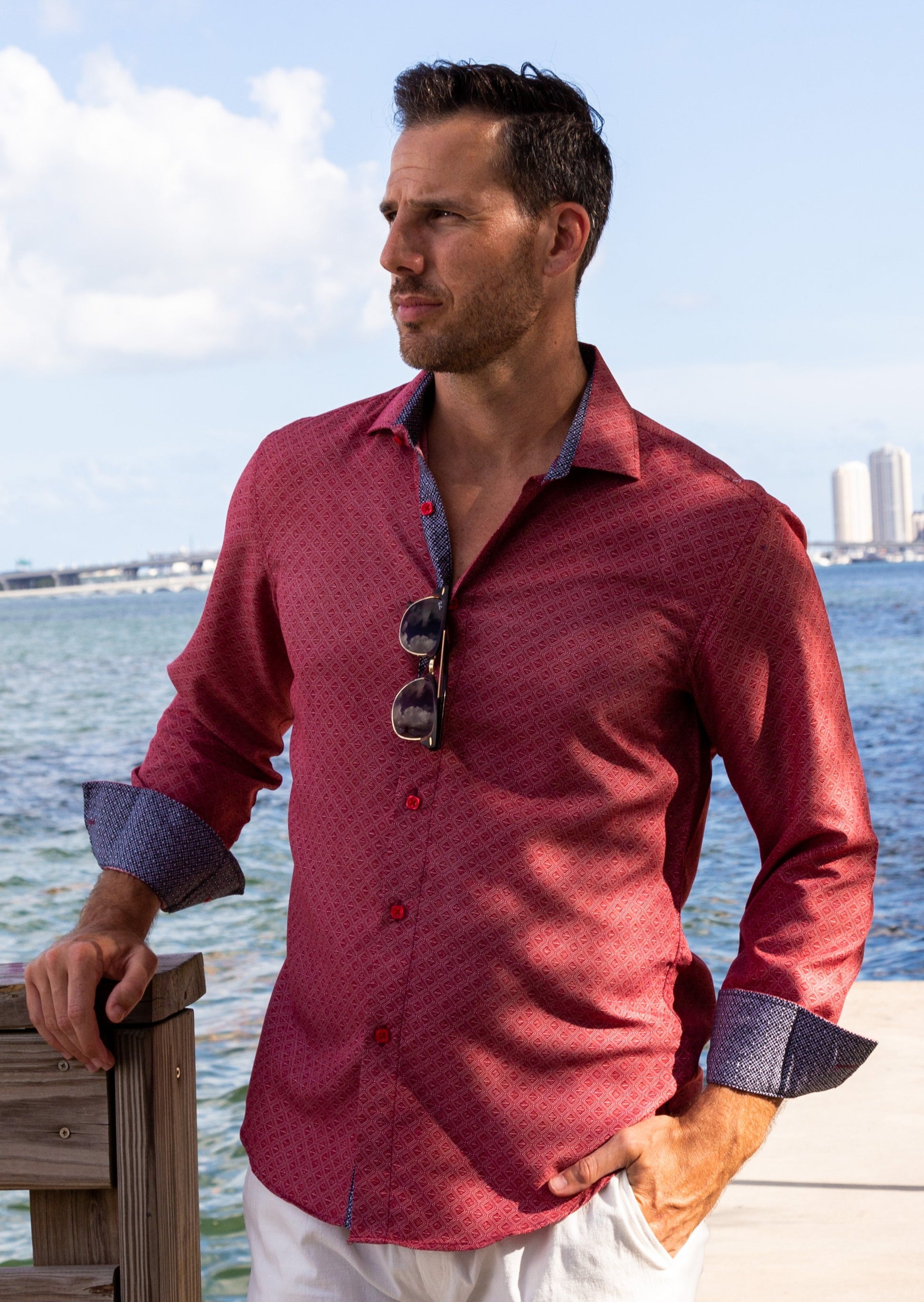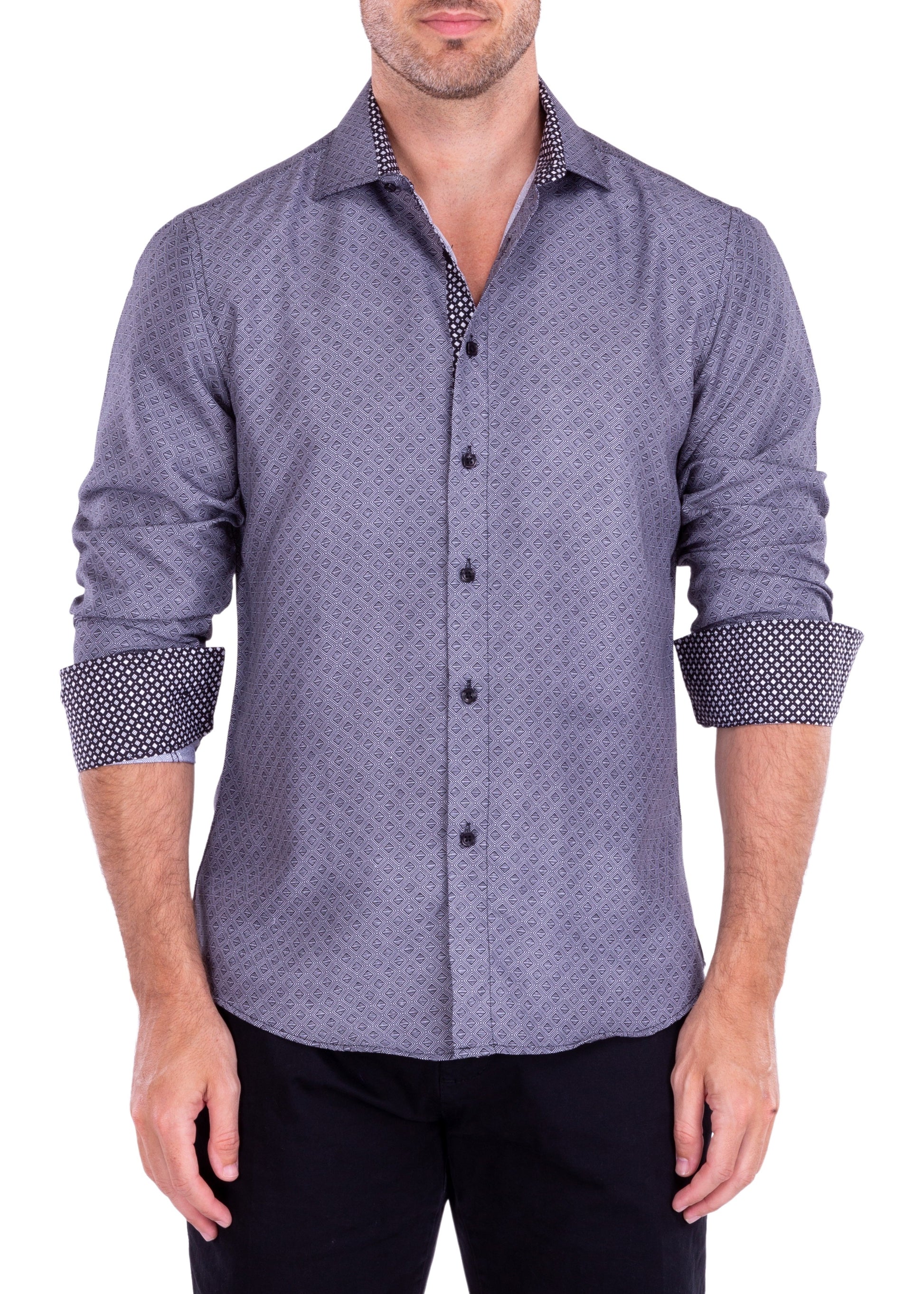 - Contrast Trim on Inner Cuff, Collar & Placket