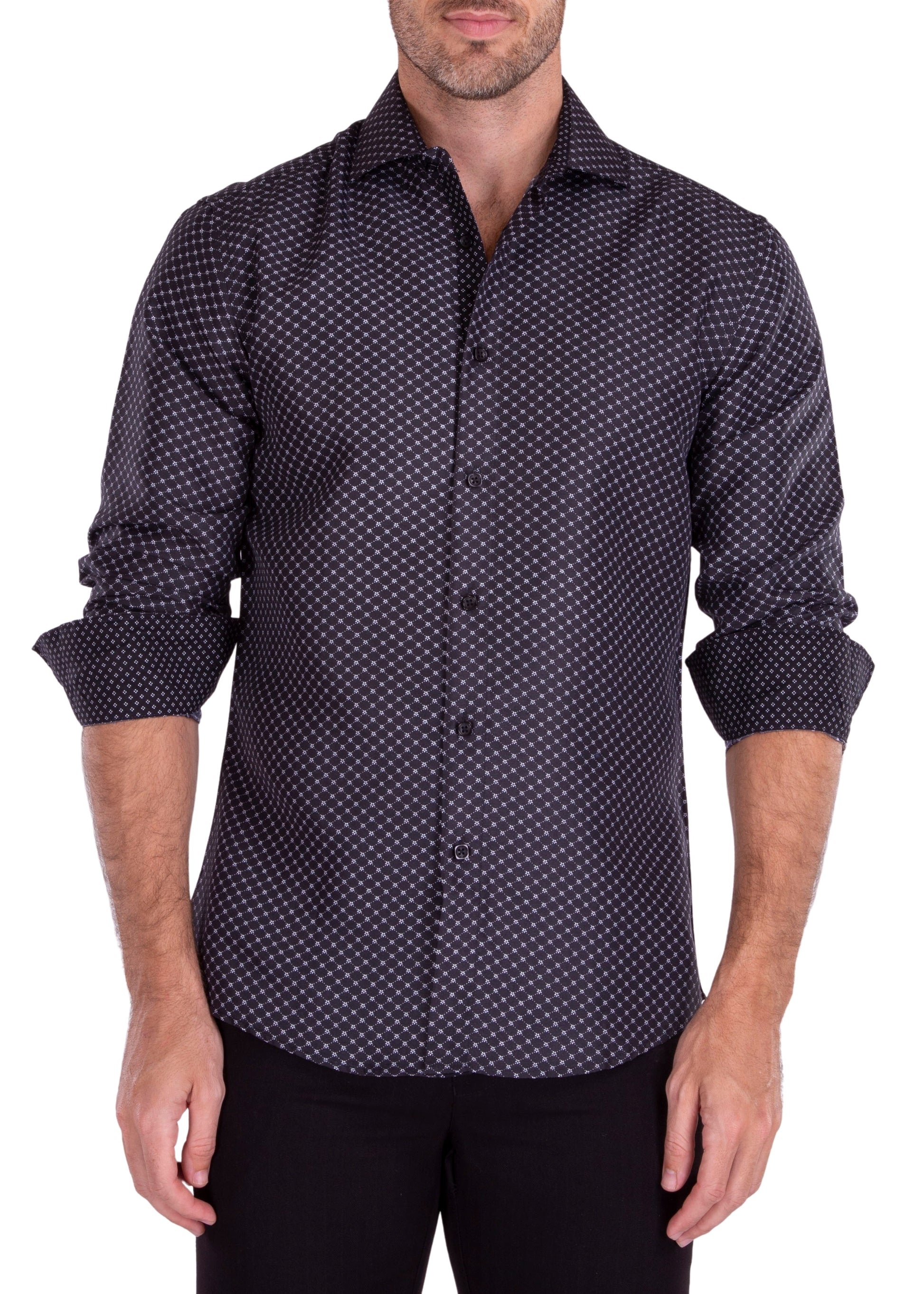 Flower Diamond Micro-Pattern Long Sleeve Dress Shirt