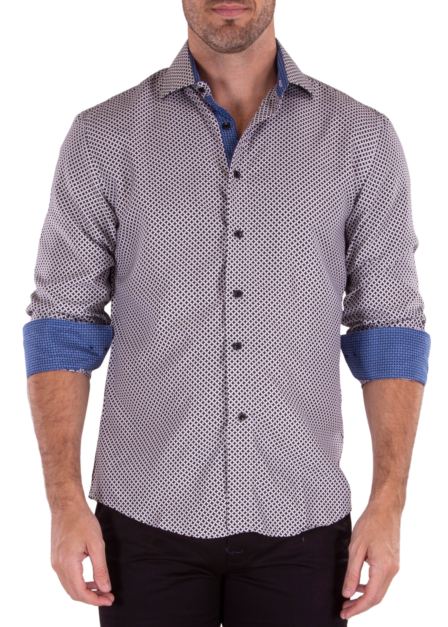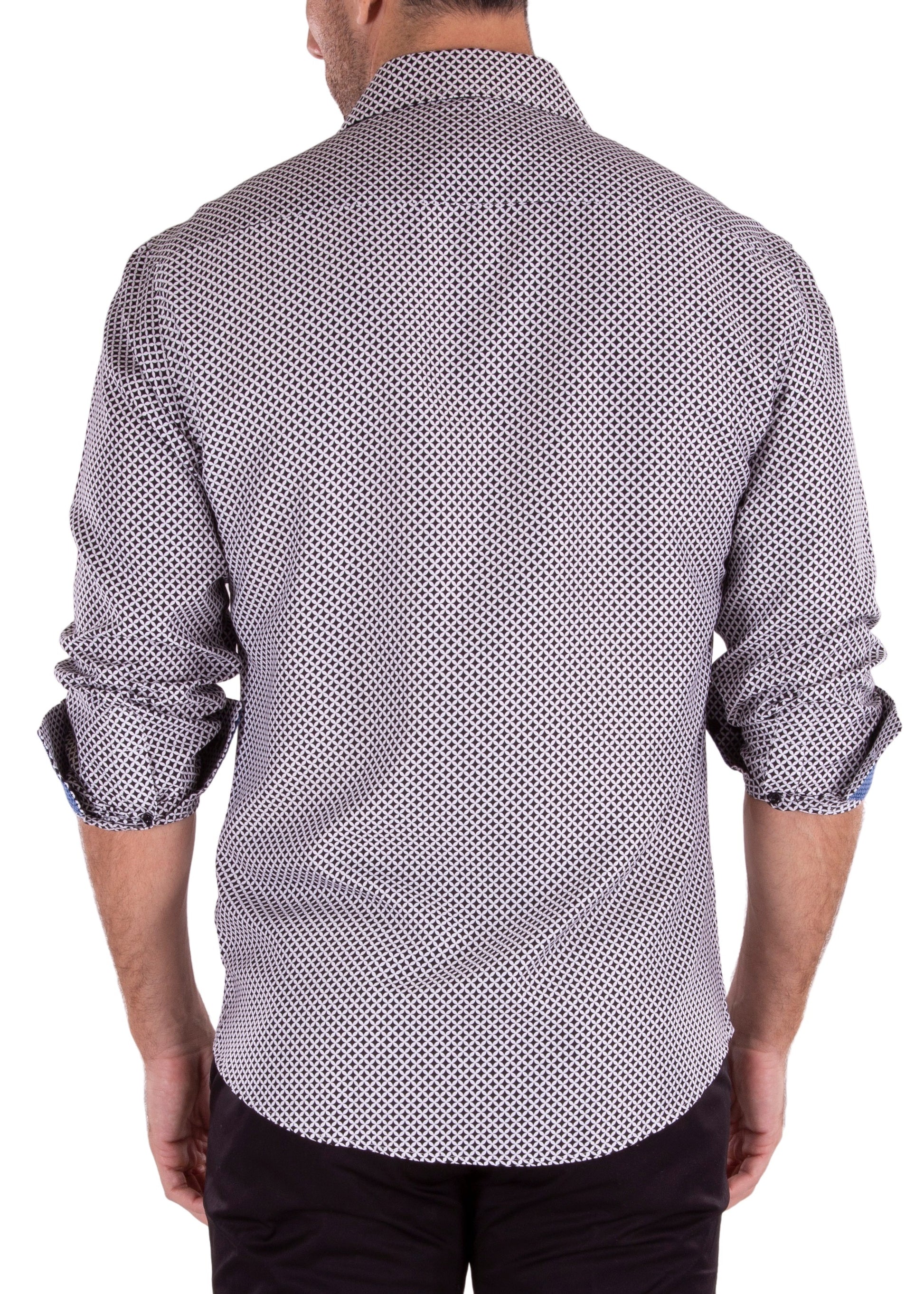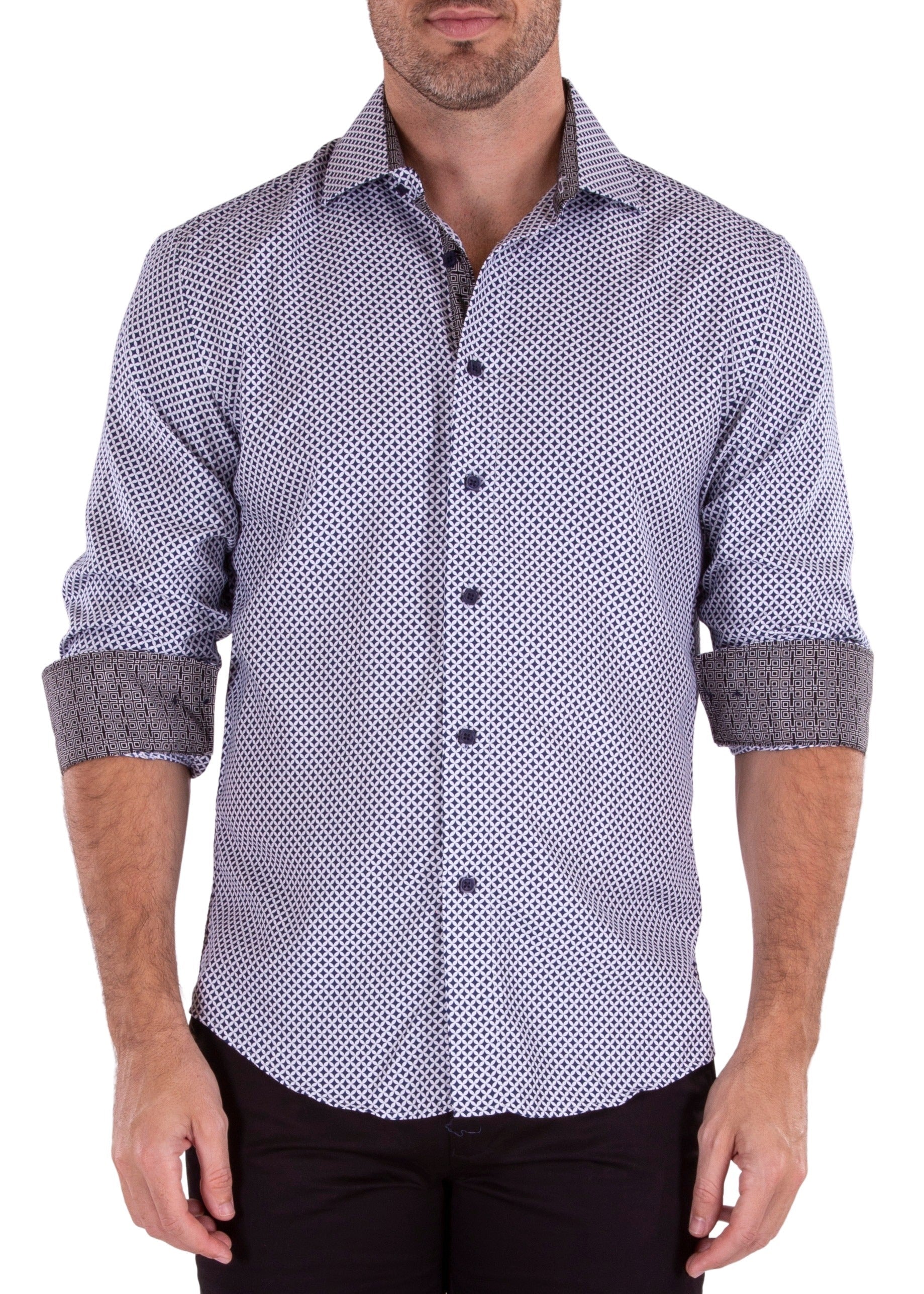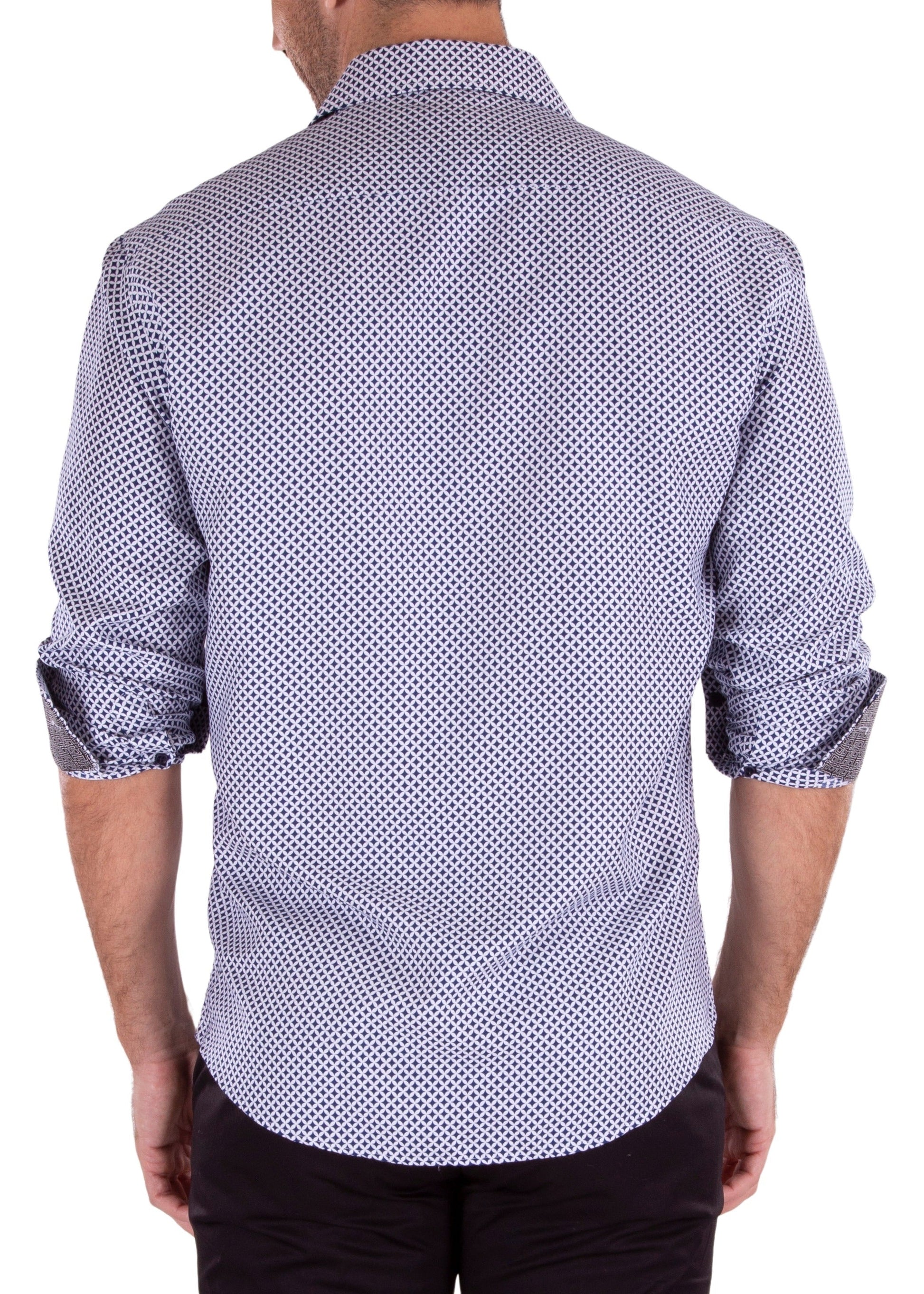 - Men’s Modern Fit Circular Diamond Button-Up Long Sleeve Dress Shirt