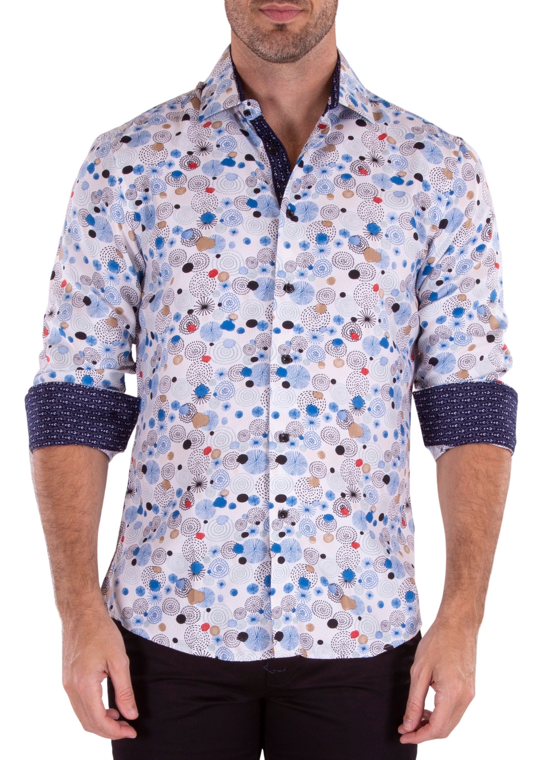 - Men’s Modern Fit Radial Patterns Button-Up Long Sleeve Dress Shirt