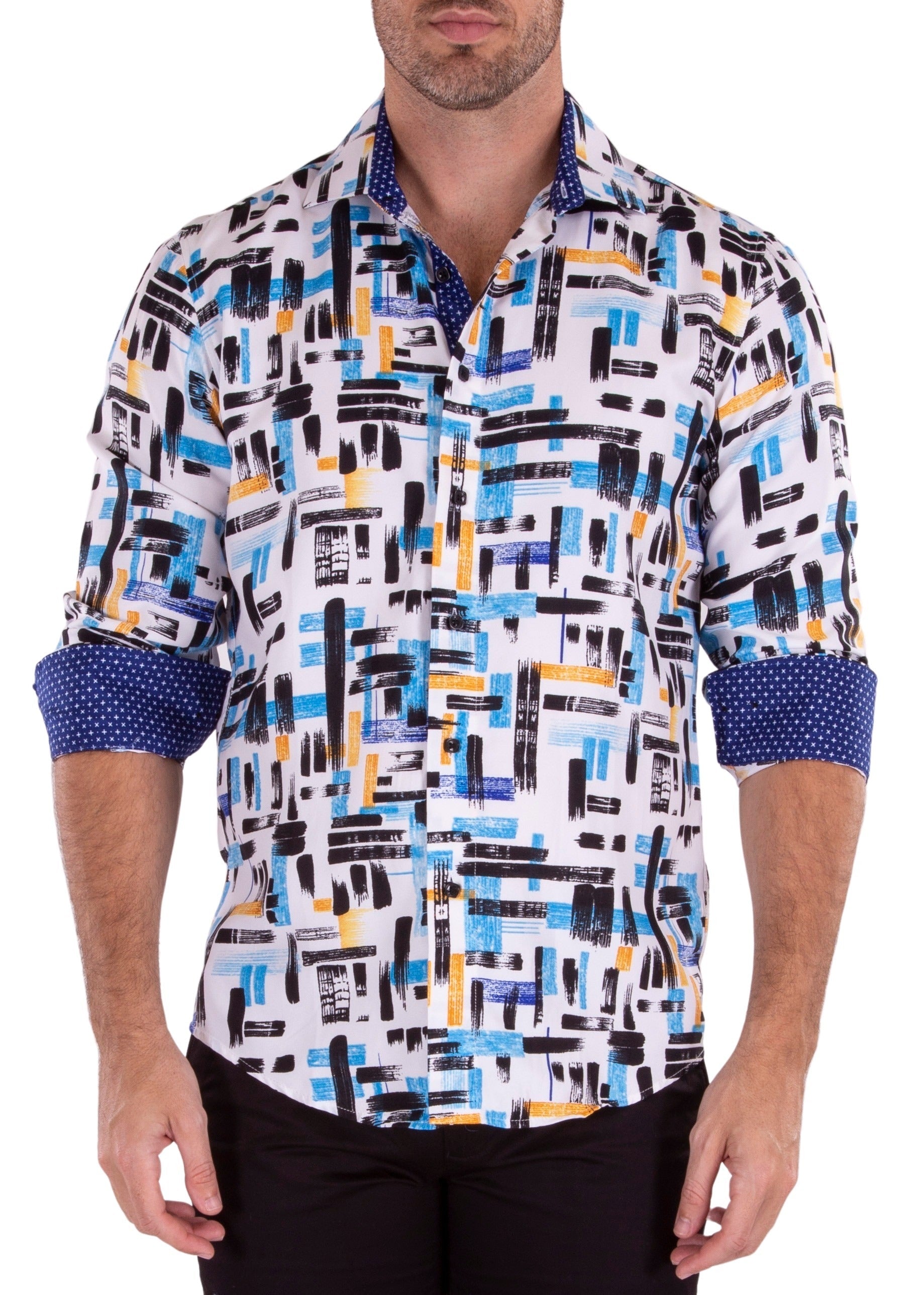 - Men’s Modern Fit Brushstroke Button-Up Long Sleeve Dress Shirt