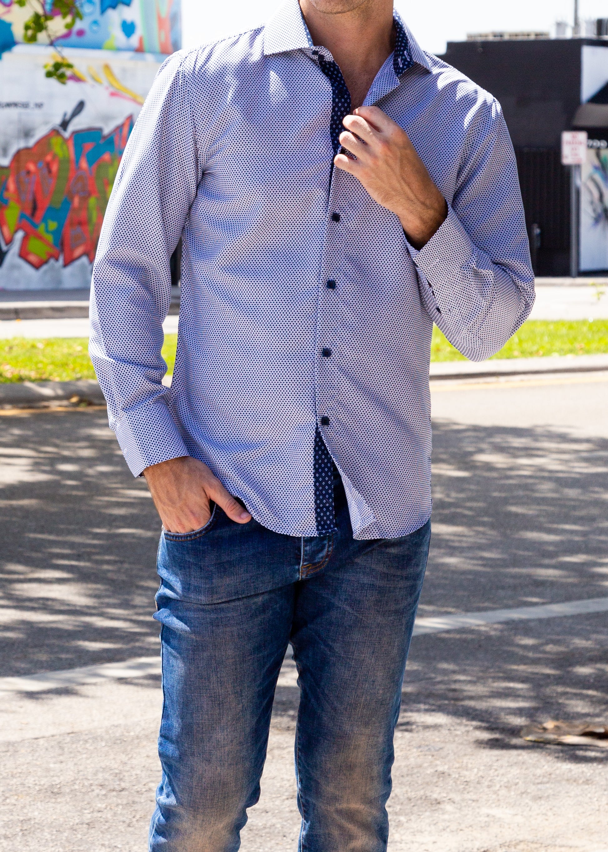 - Contrast Trim on Inner Cuff, Collar & Placket