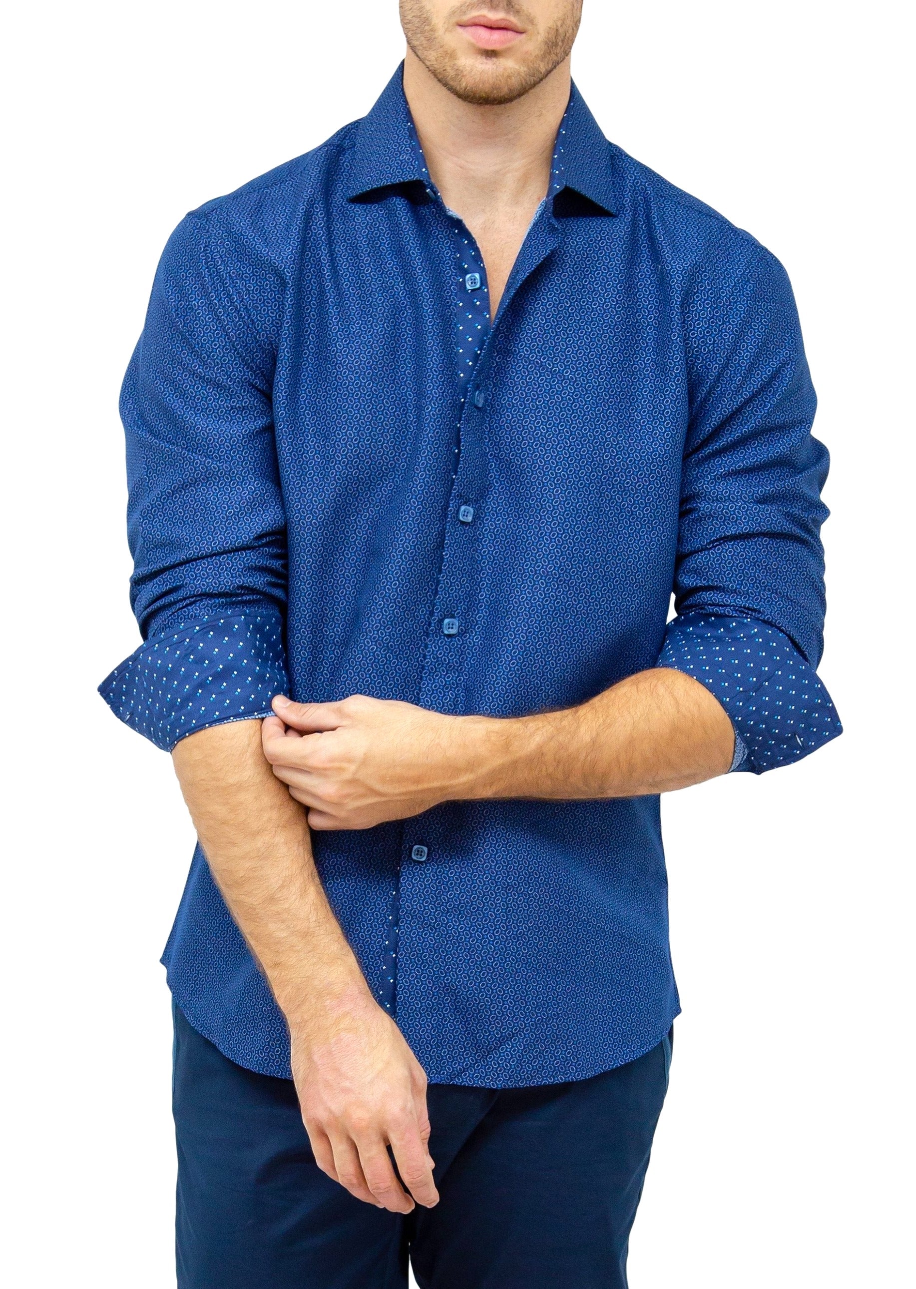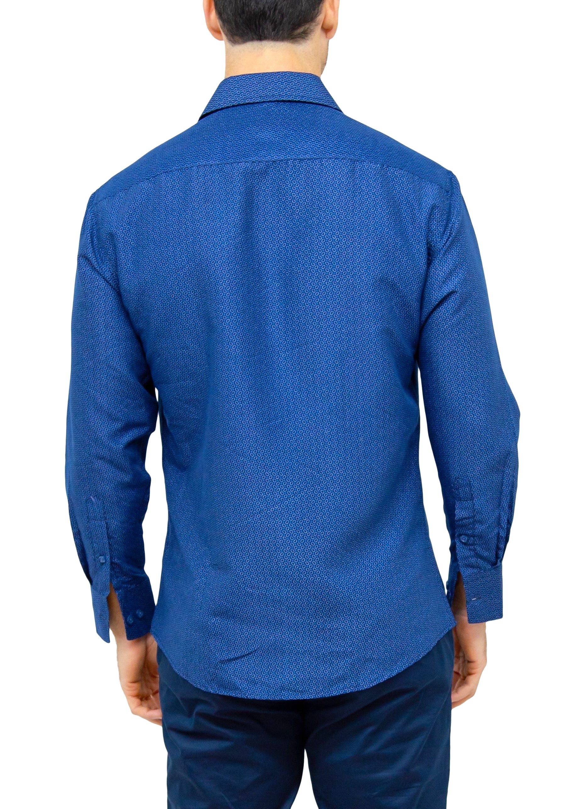 - Abstract Oval Print Navy Blue Long Sleeve Dress Shirt