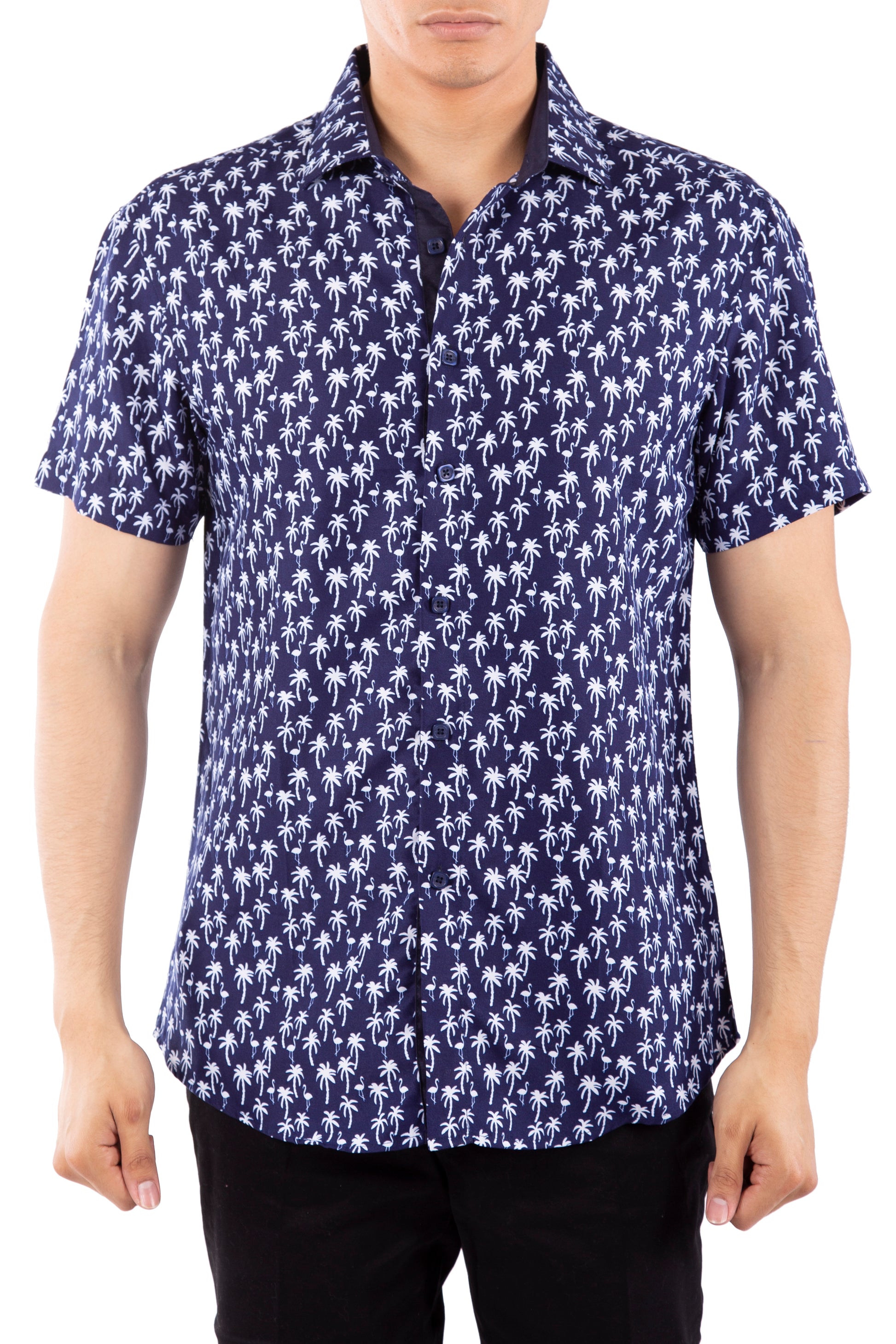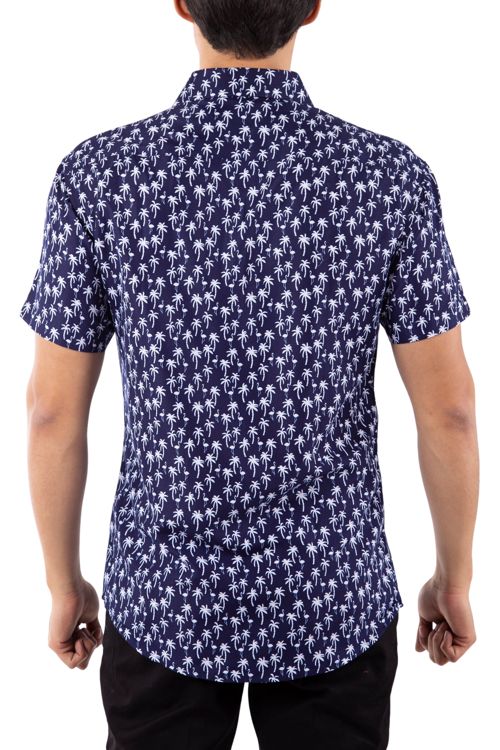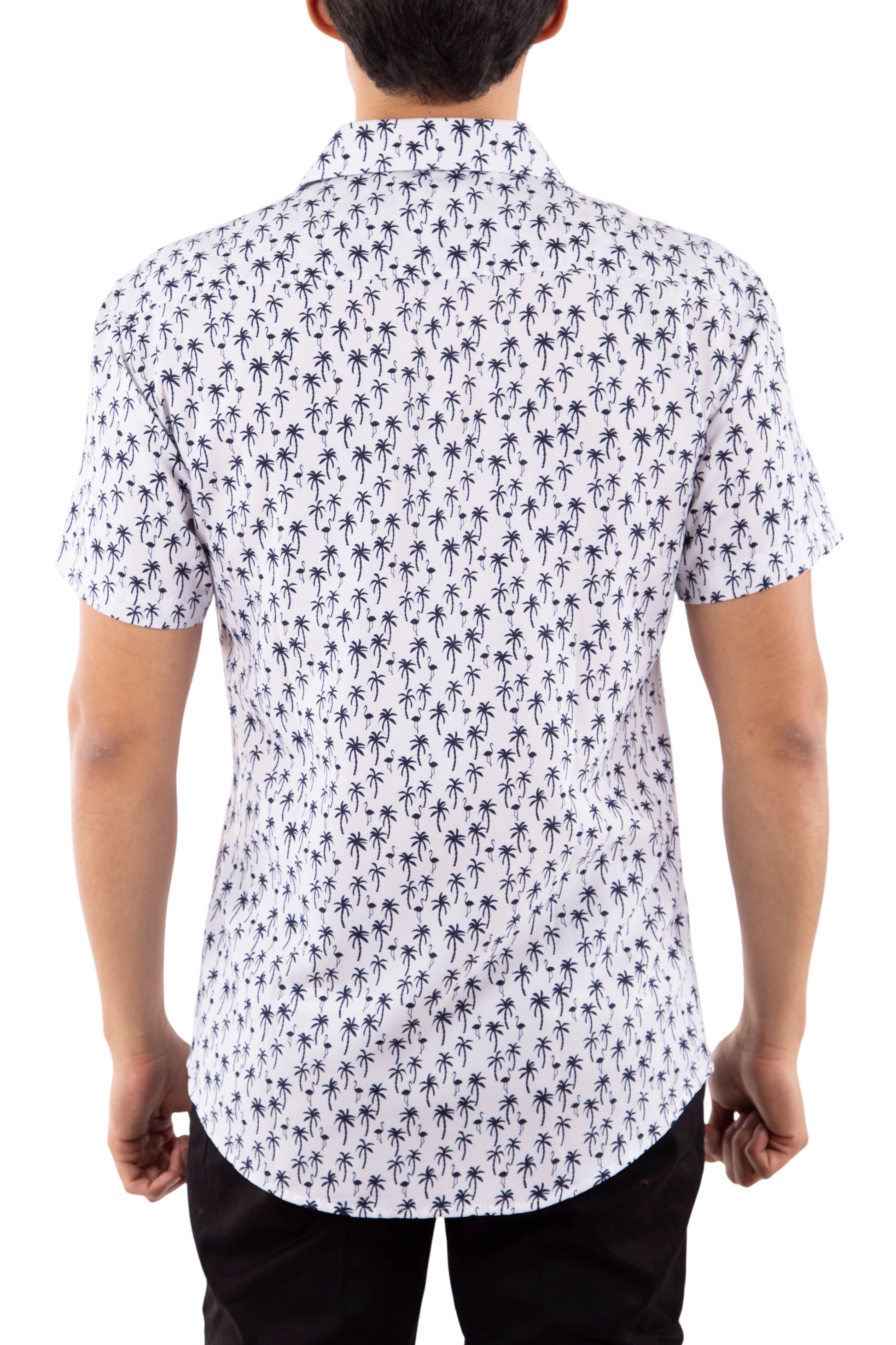 - Palm Trees and Flamingos Printed Short Sleeve
