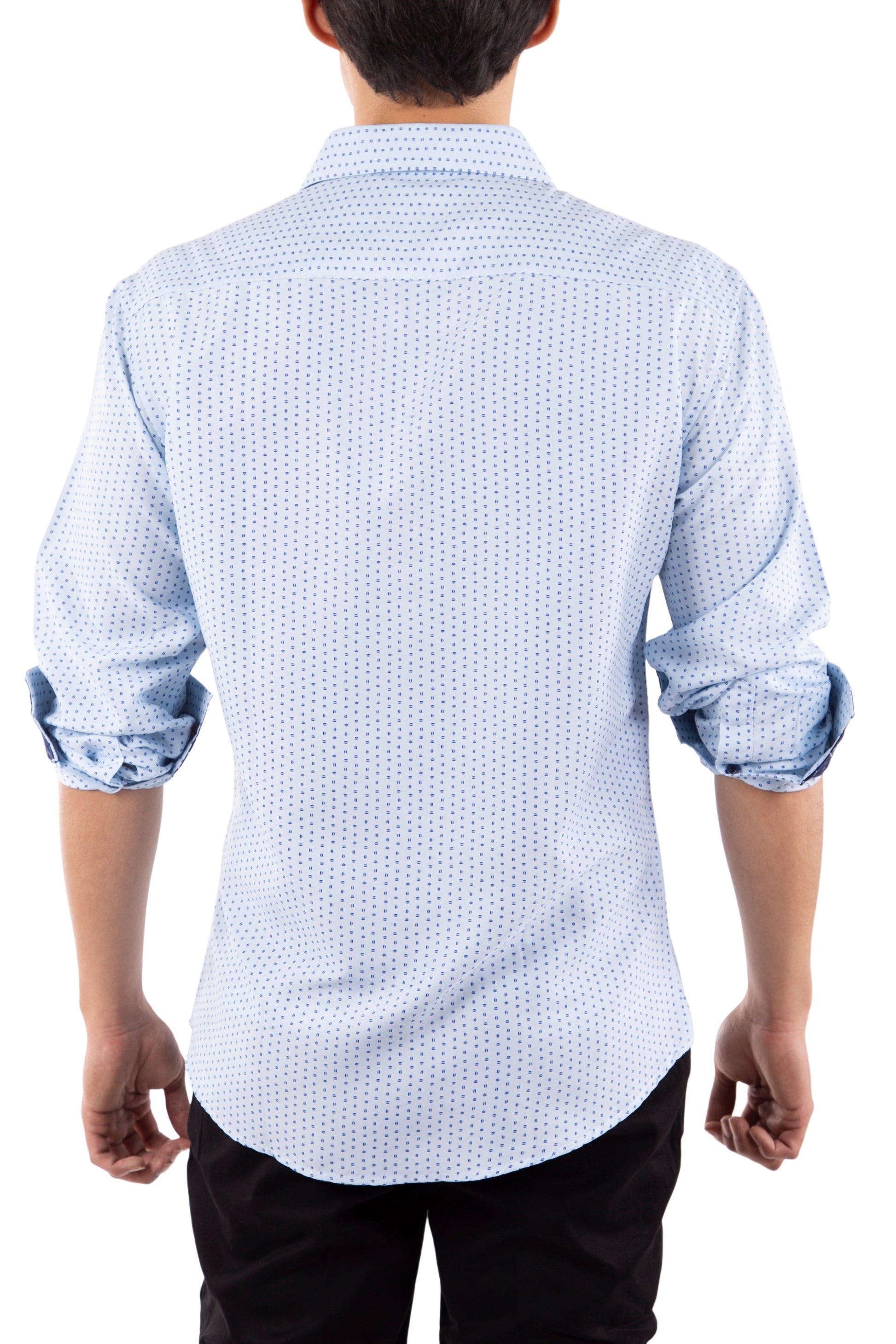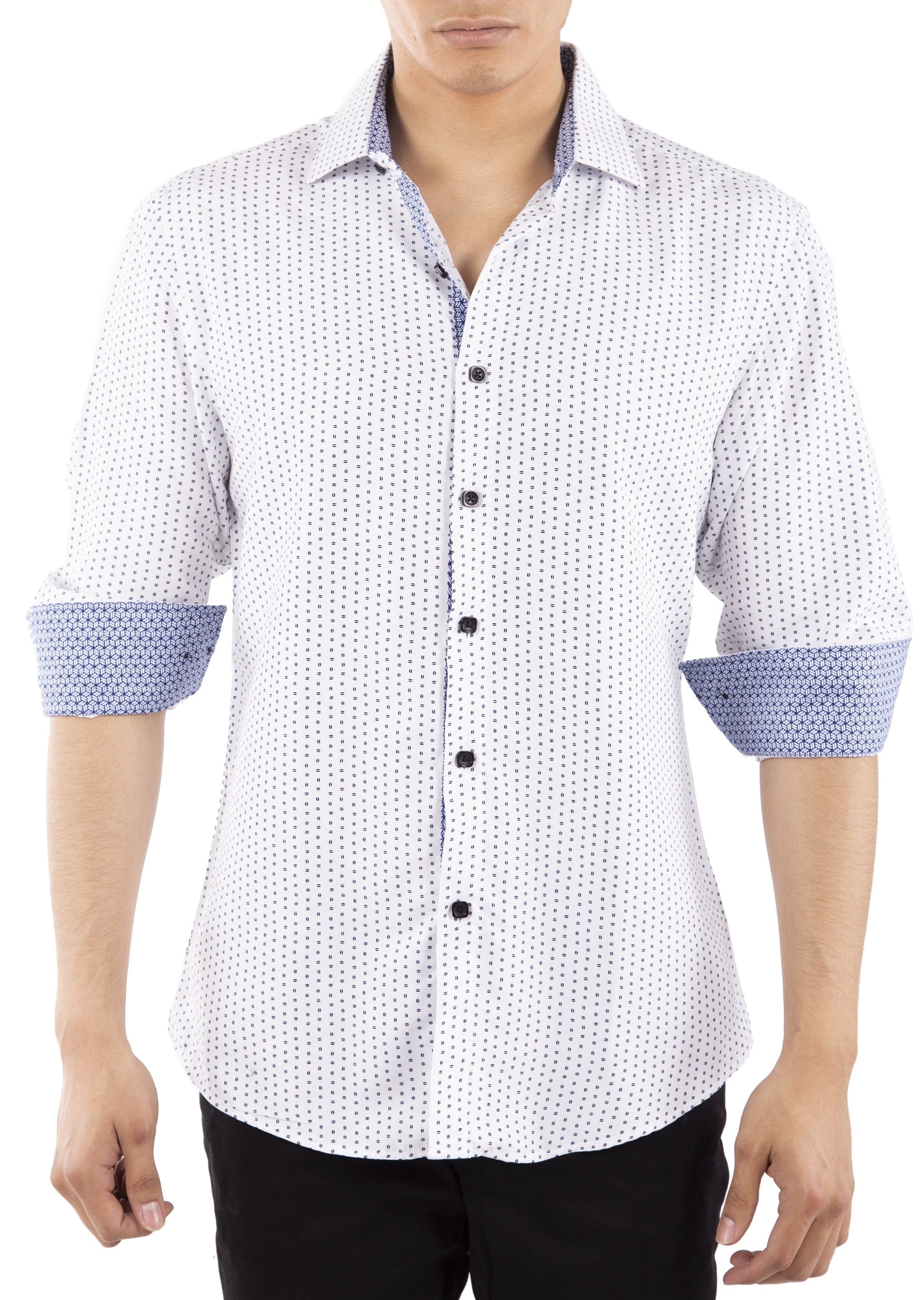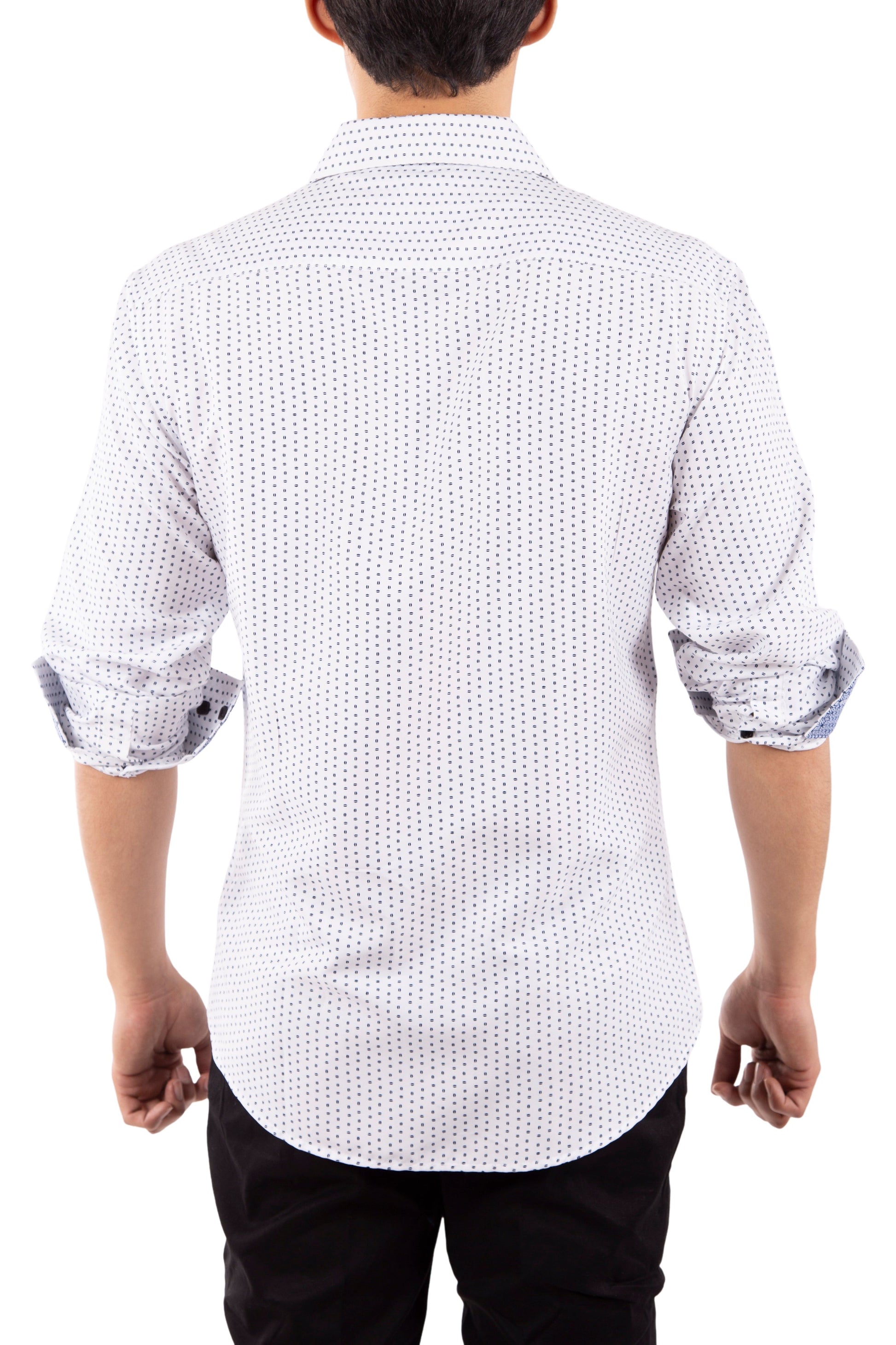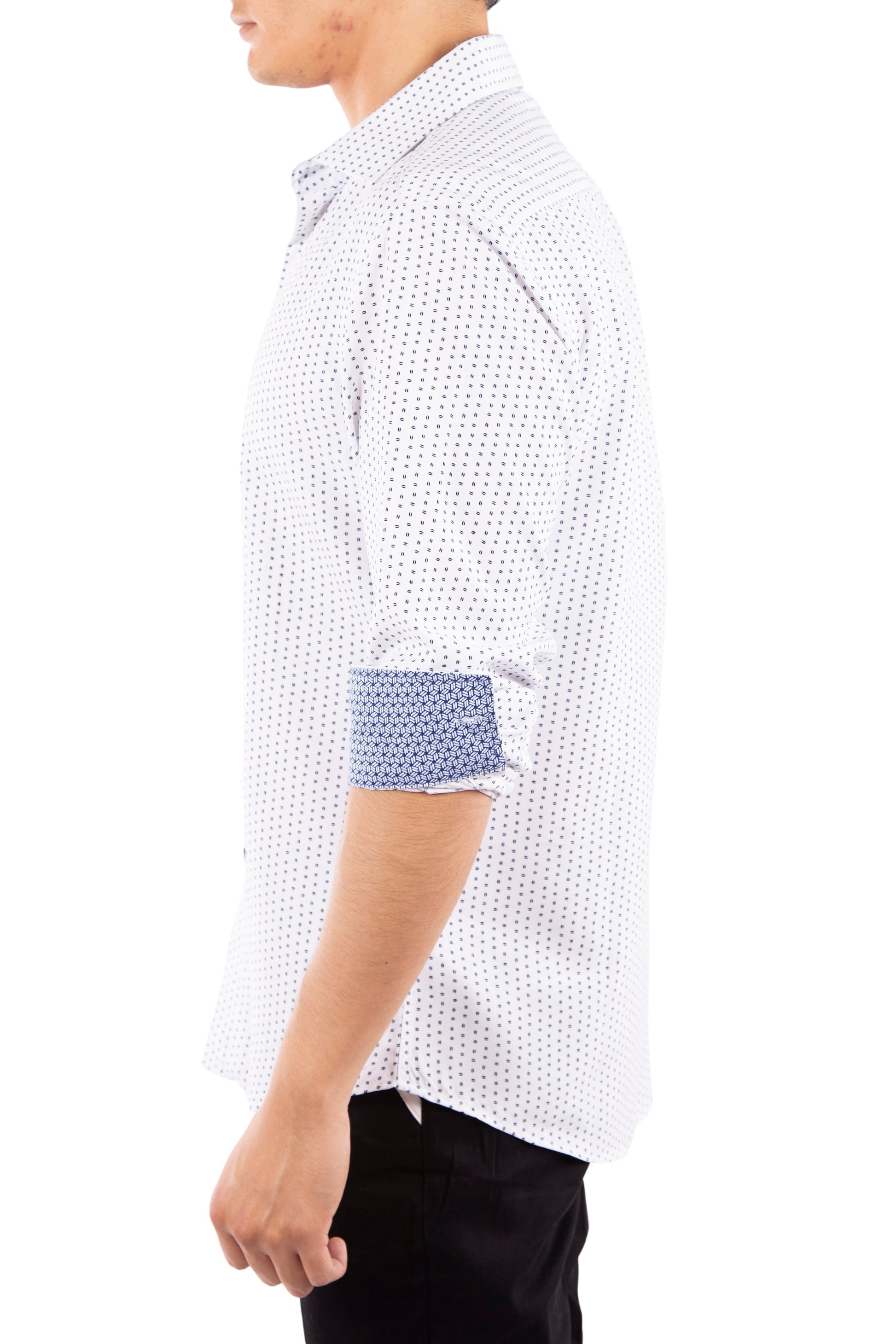- Classic Microprint Contrast Cuff Long Sleeve Dress Shirt