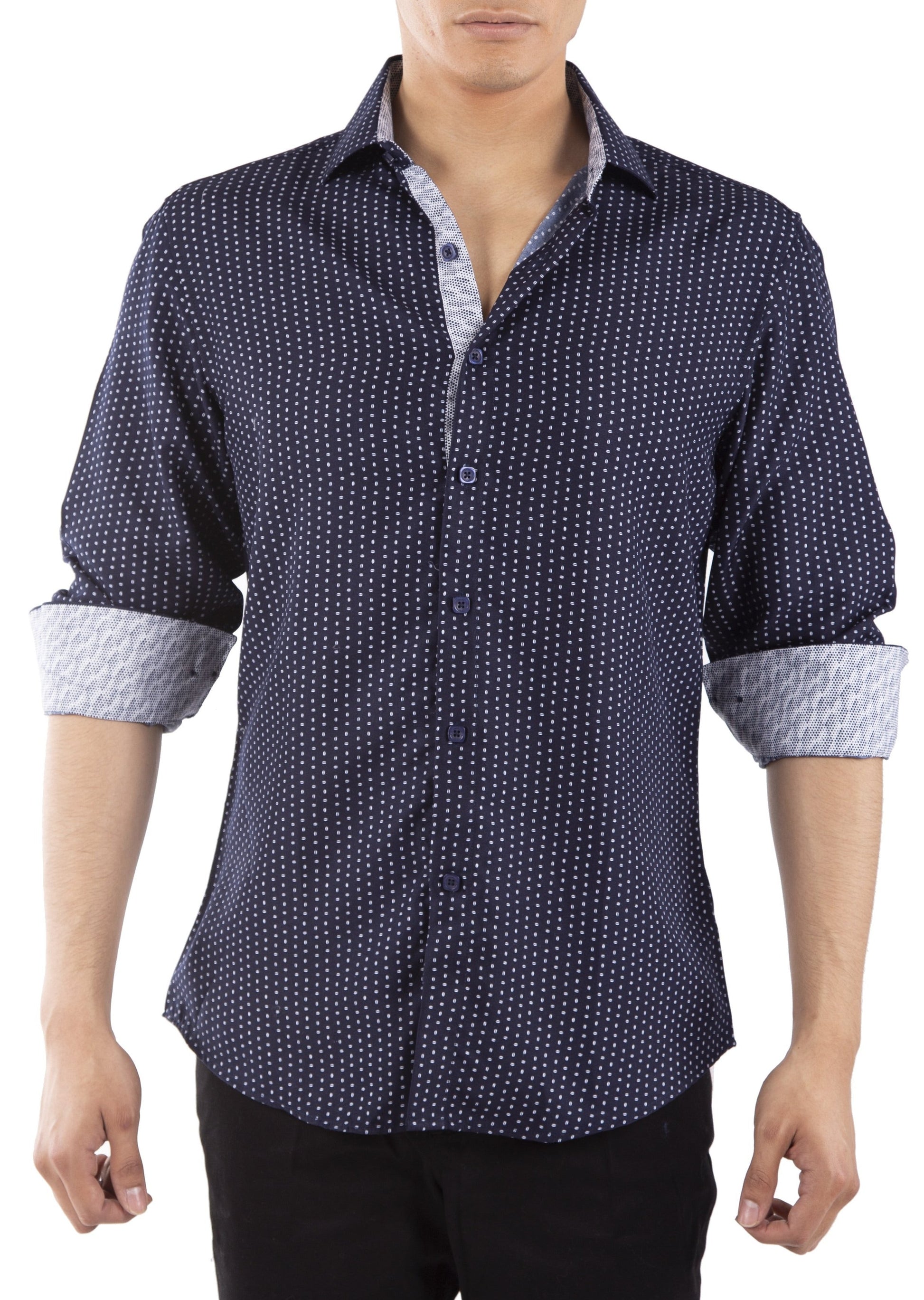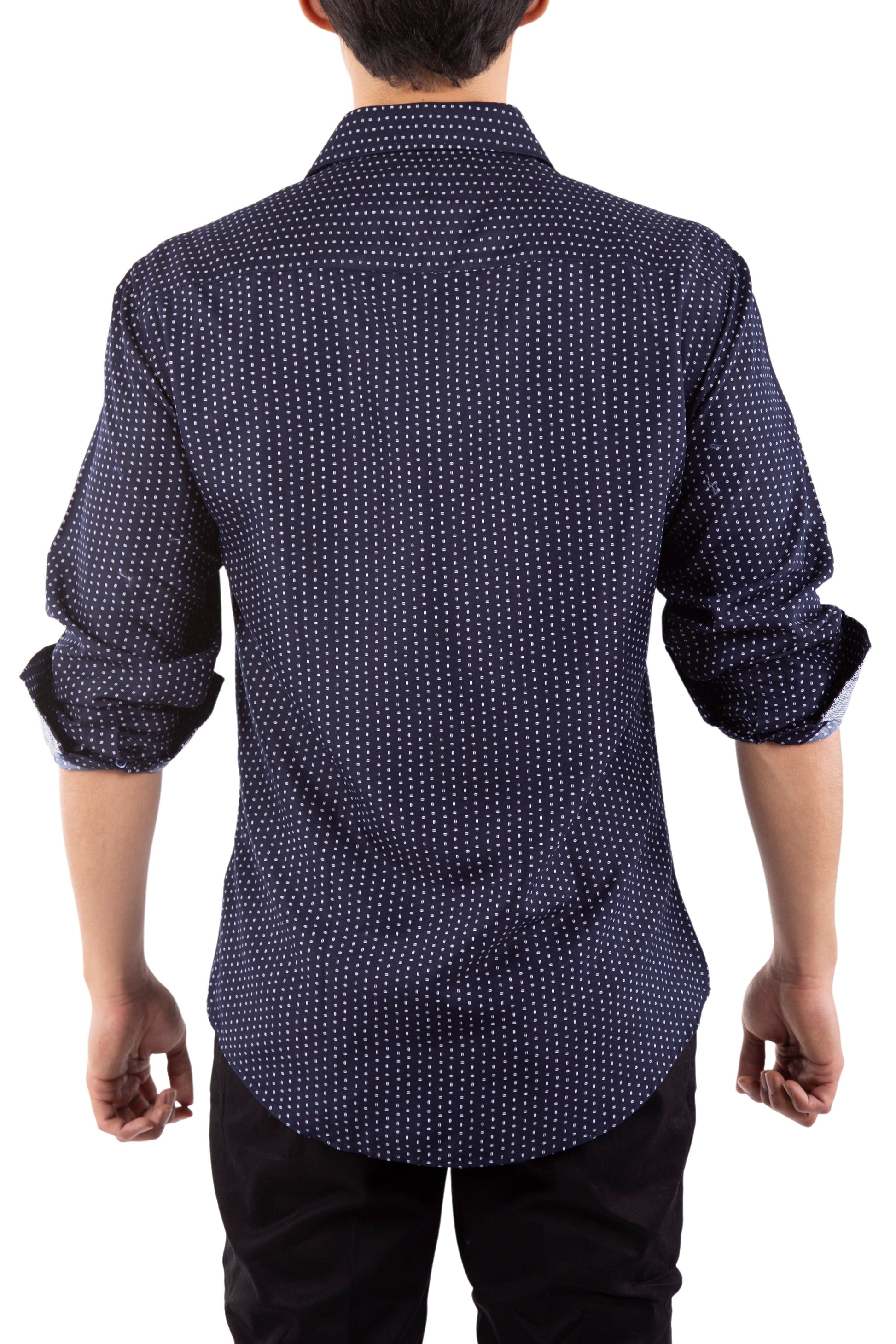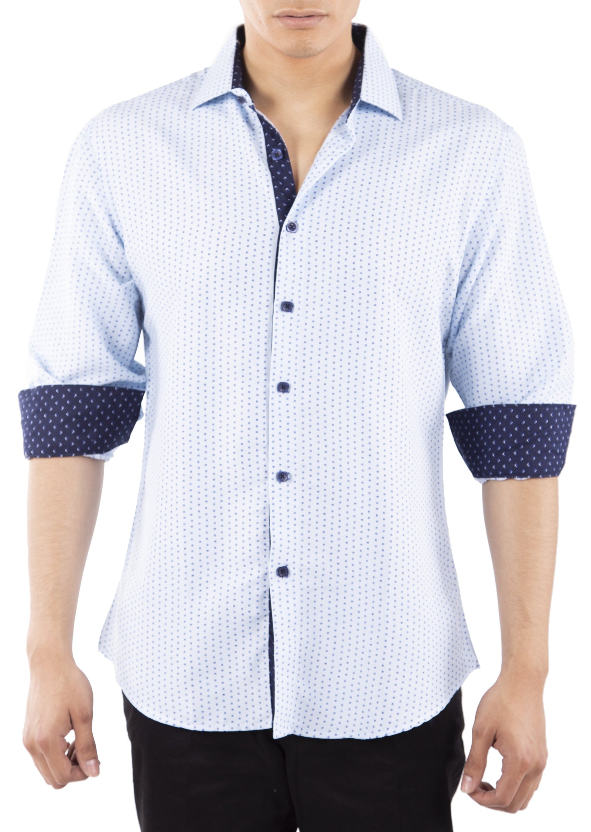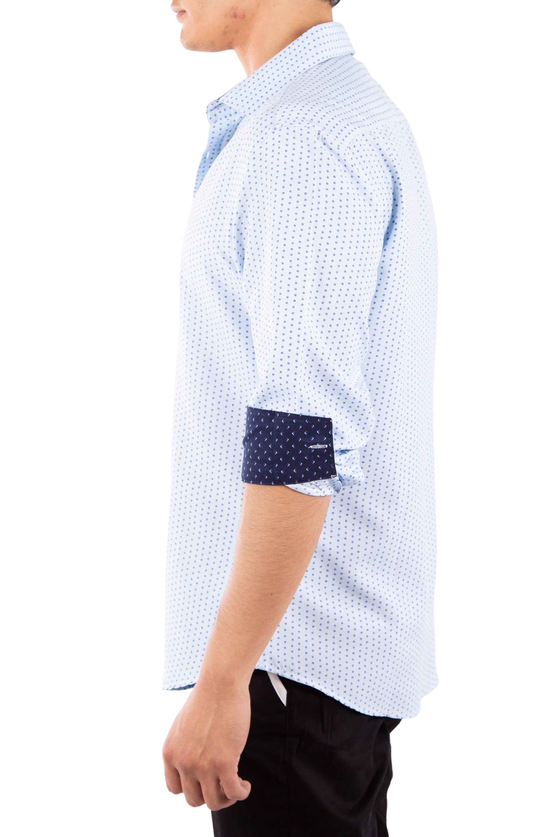 - Classic Microprint Contrast Cuff Long Sleeve Dress Shirt