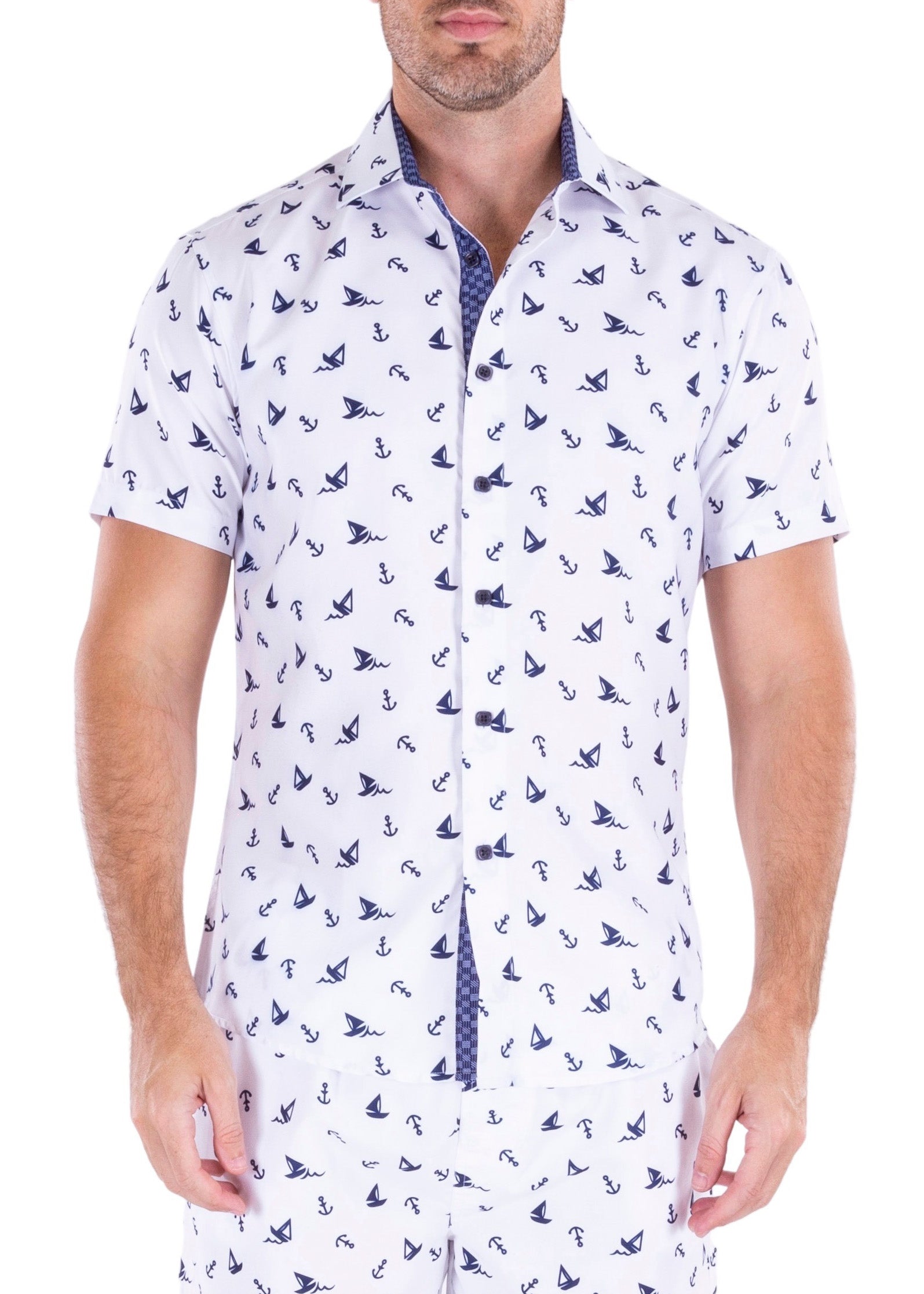 - Contrast Trim on Inner Cuff, Collar & Placket