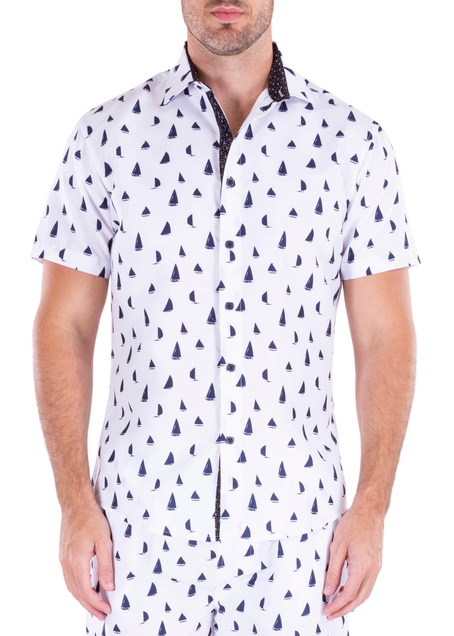 - Contrast Trim on Inner Cuff, Collar & Placket